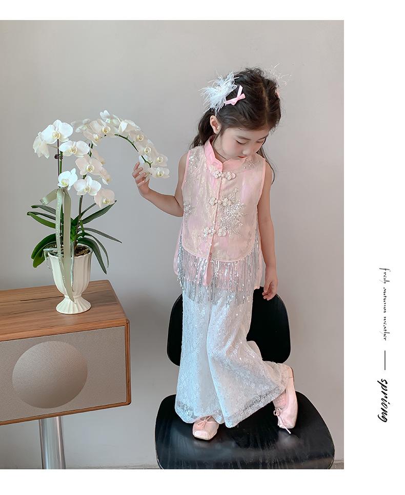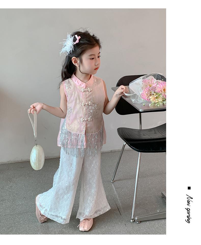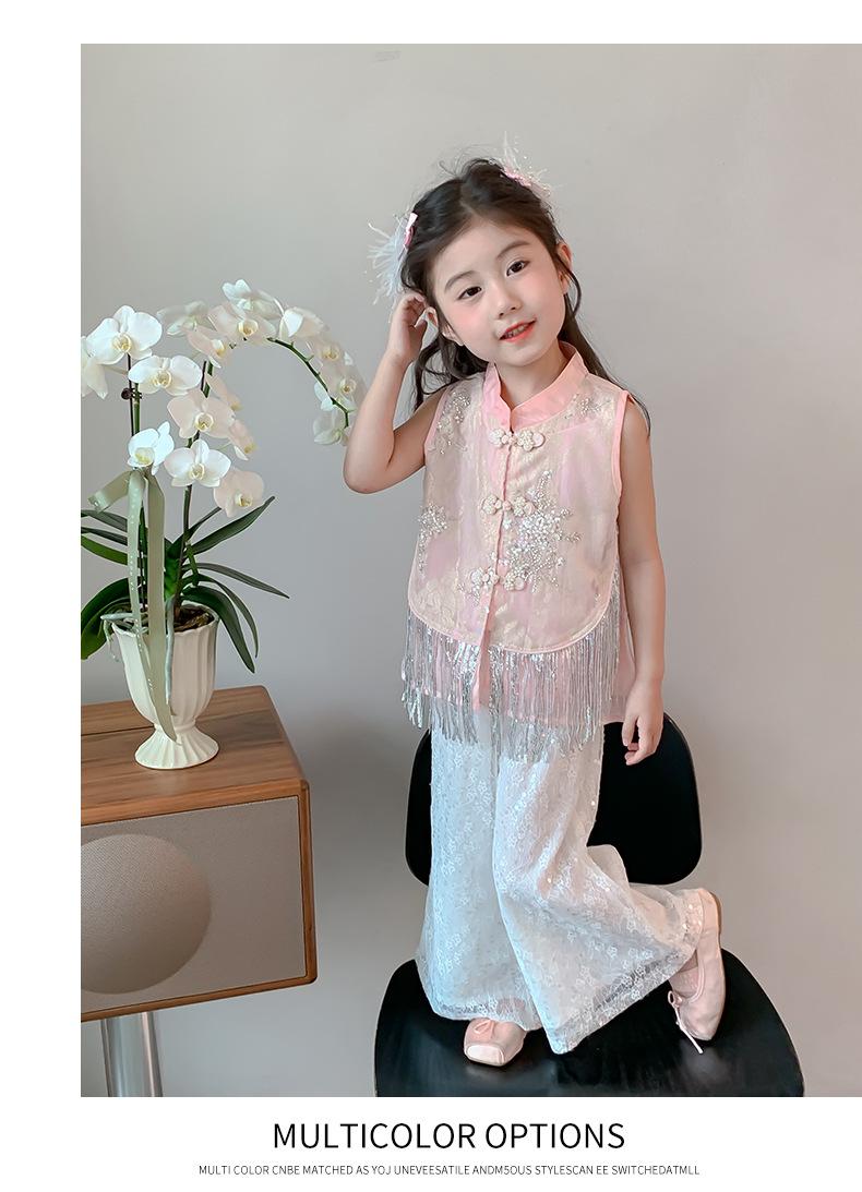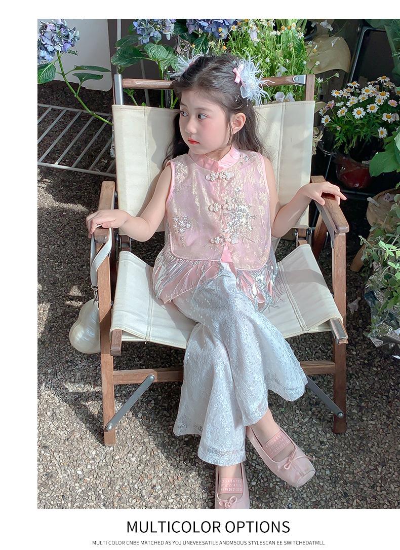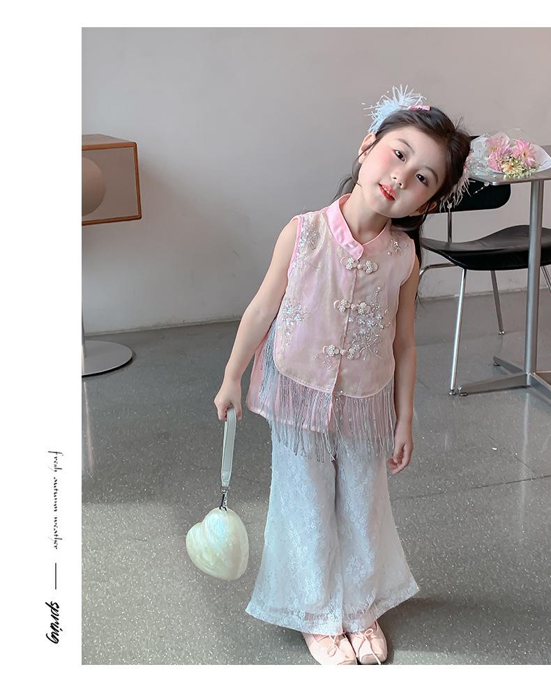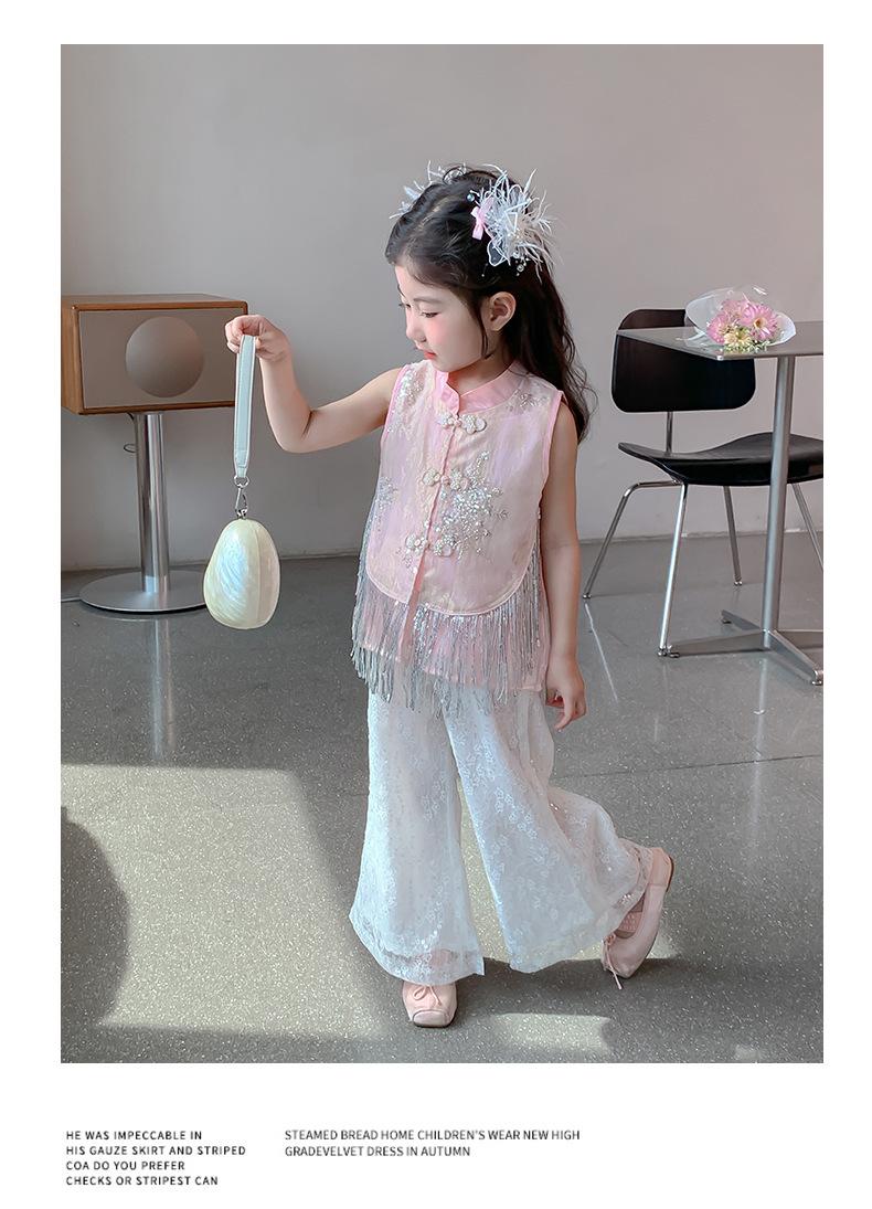 Traje para niña 2025 Nuevo estilo occidental Vestido de verano para bebé niña Estilo chino mejorado Hanfu Verano para niños Conjunto chino de dos piezas