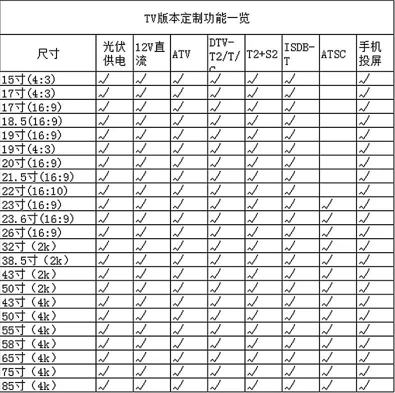 17-inch TV set, 19-inch TV set, 20-inch TV set, 22-inch TV set, 24-inch TV set, 26-inch TV set, 32-inch TV ver...