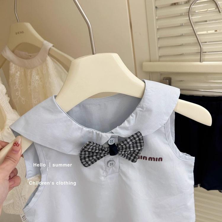 Ropa Coreana para Niños 2025 Verano Nuevo Chaleco Top sin Mangas Infantil Universitario Pantalones Dulces de Capullo para Niños Conjunto de Dos Piezas