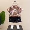 Traje para niño 2025 Verano Nuevo Estilo Coreano Manga Corta Pantalones Rayados Set de Dos Piezas