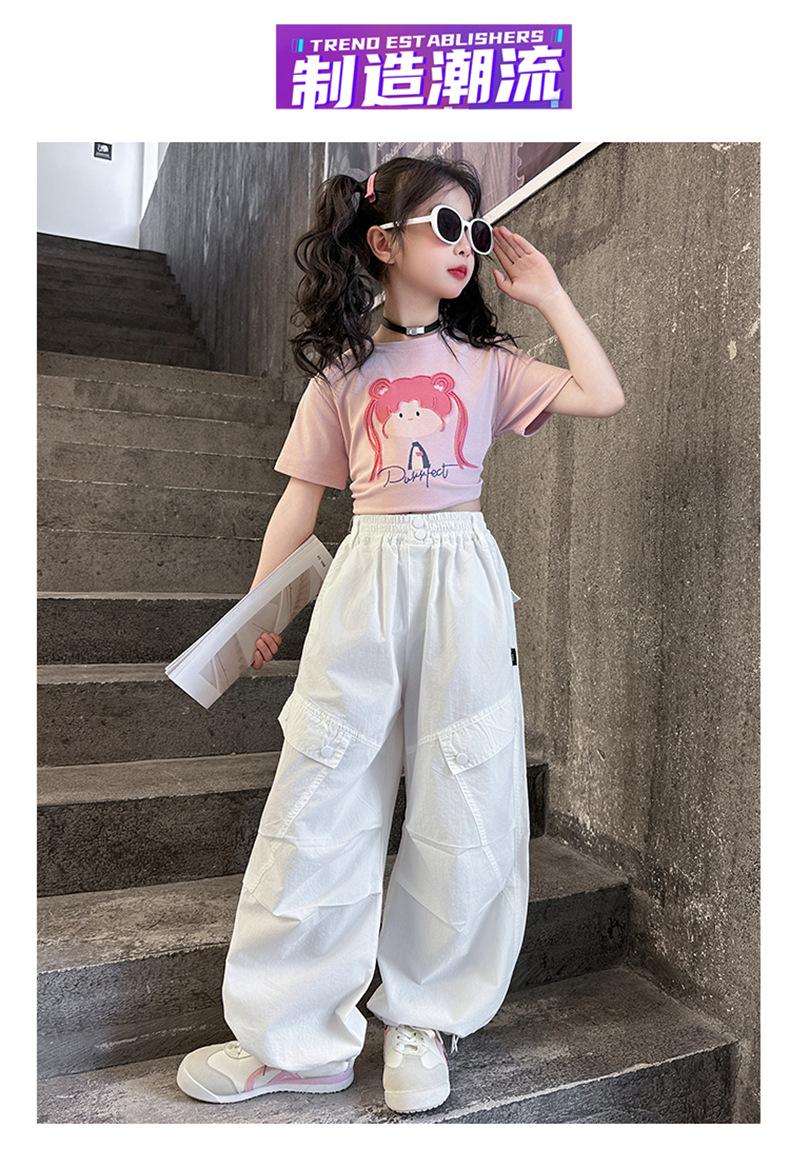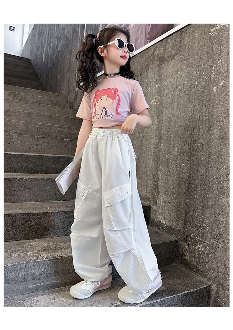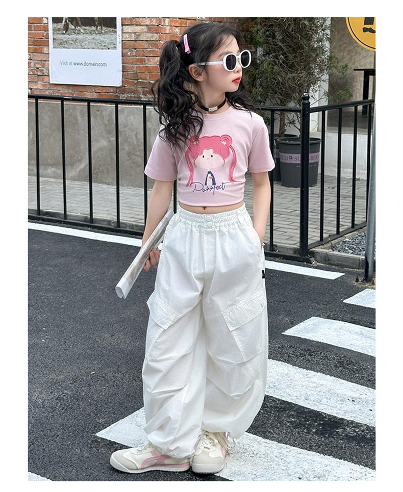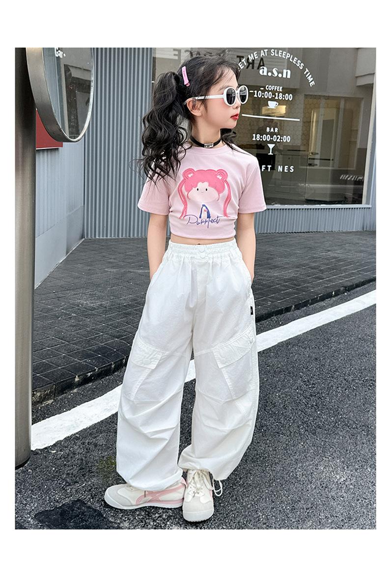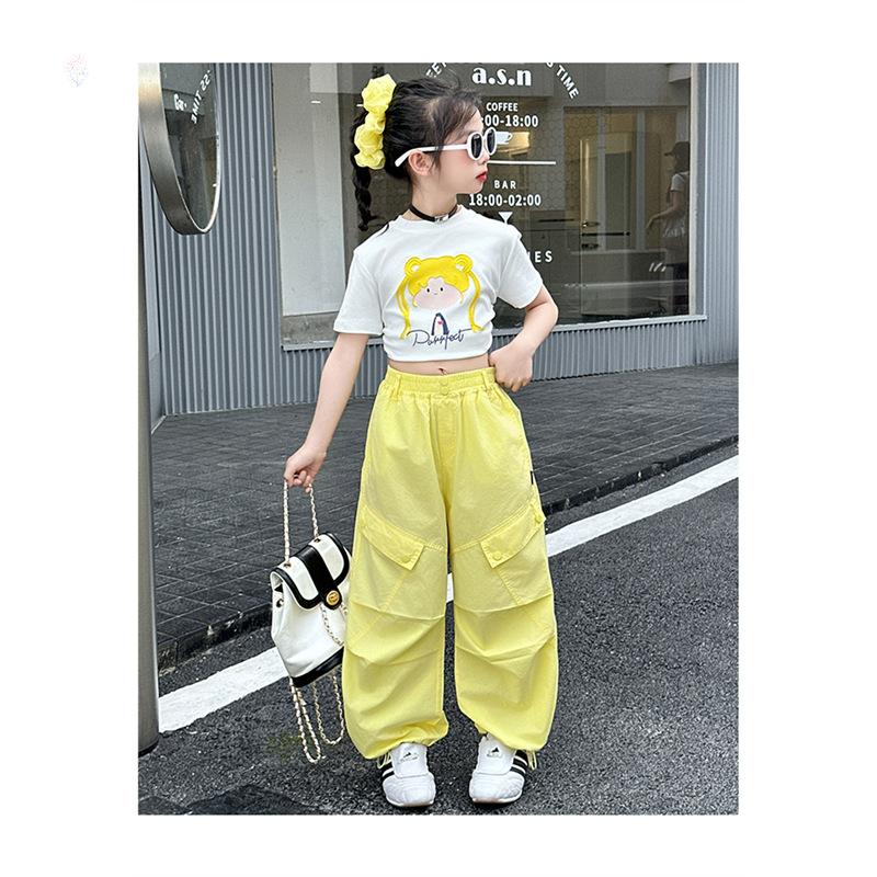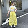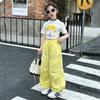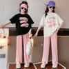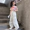 Traje casual para niña con camiseta estampada y pantalones de pierna ancha, lindo pantalón de grulla de manga corta para niños medianos y grandes, nuevo verano 2025
