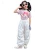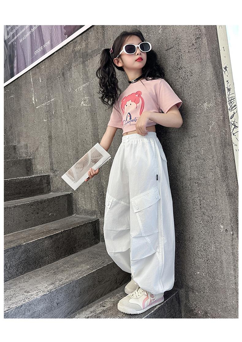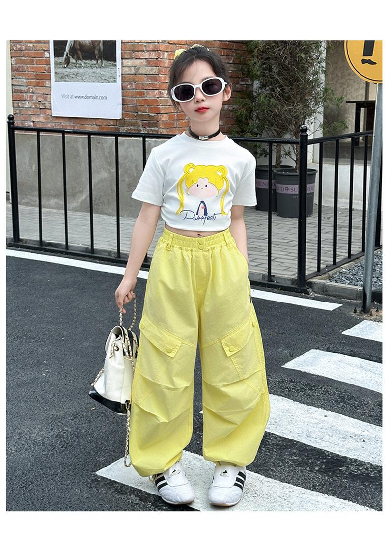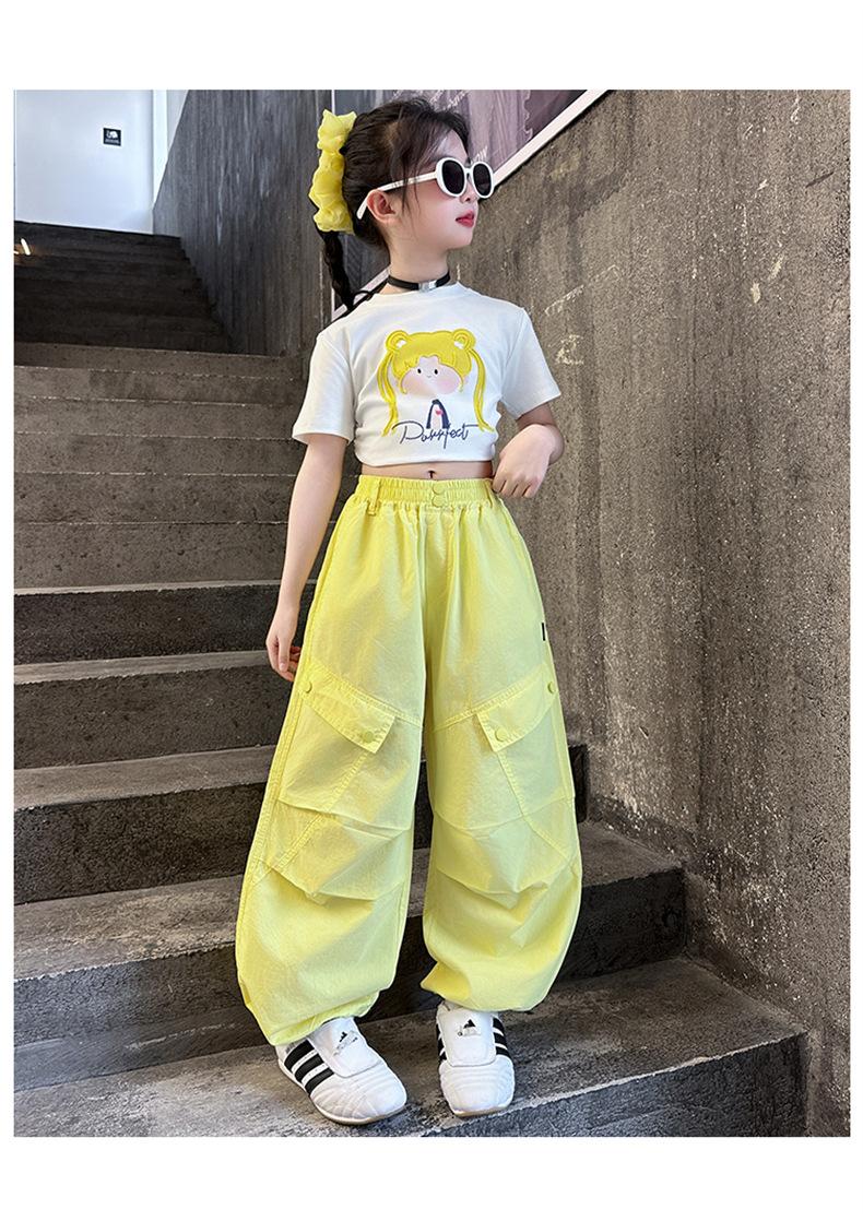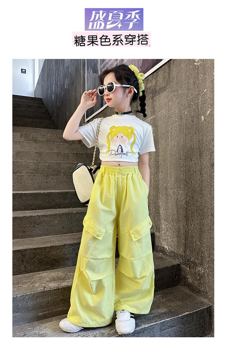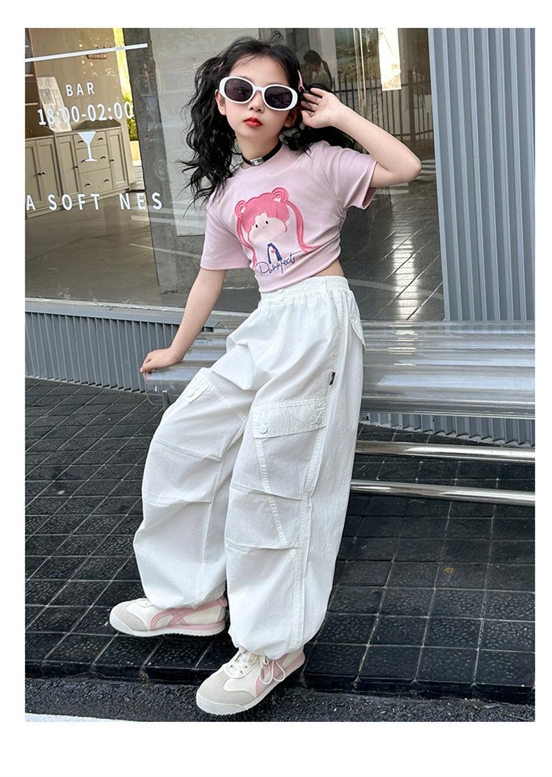Traje casual para niña con camiseta estampada y pantalones de pierna ancha, lindo pantalón de grulla de manga corta para niños medianos y grandes, nuevo verano 2025