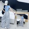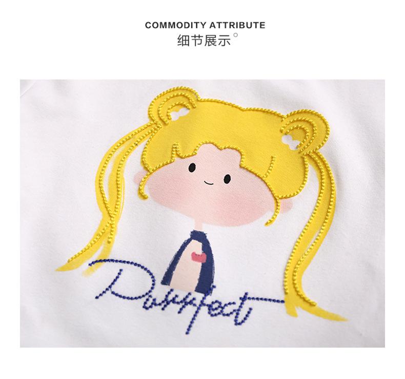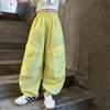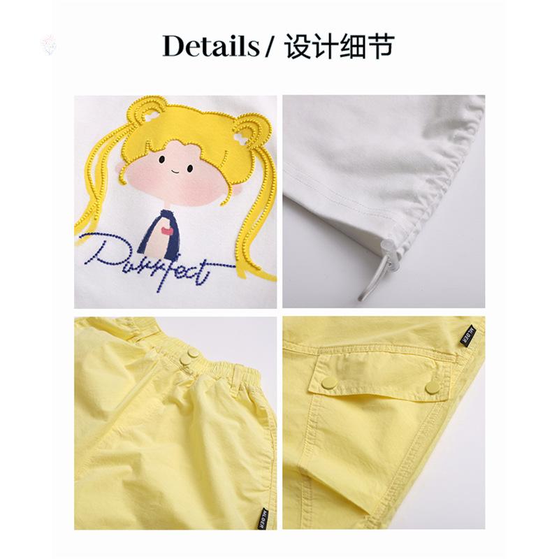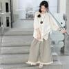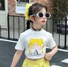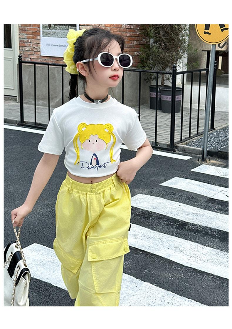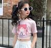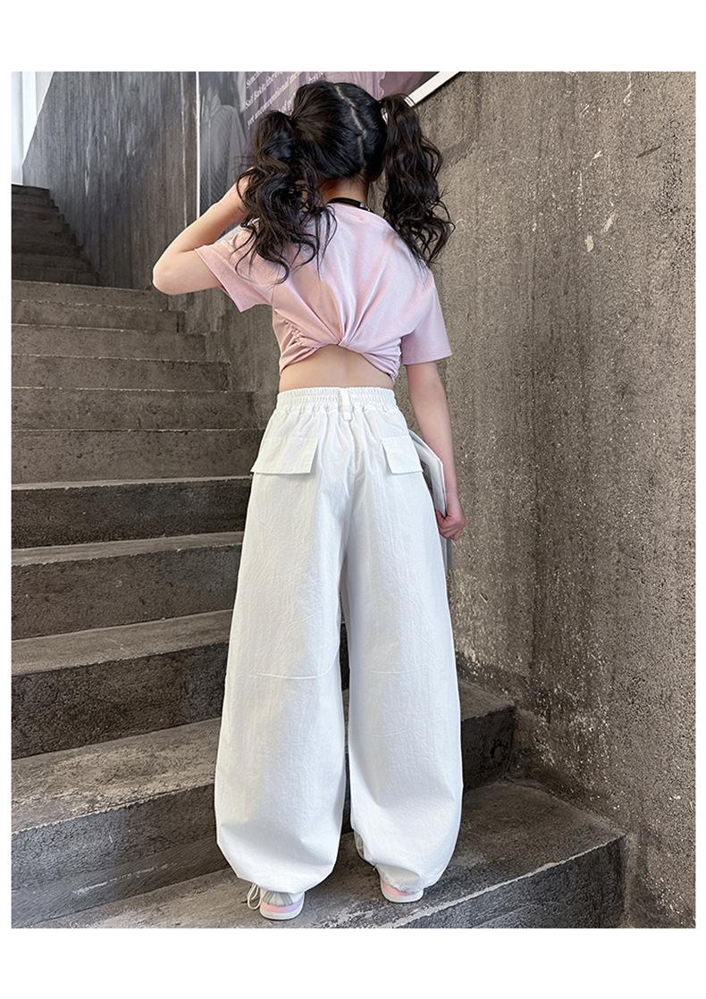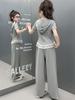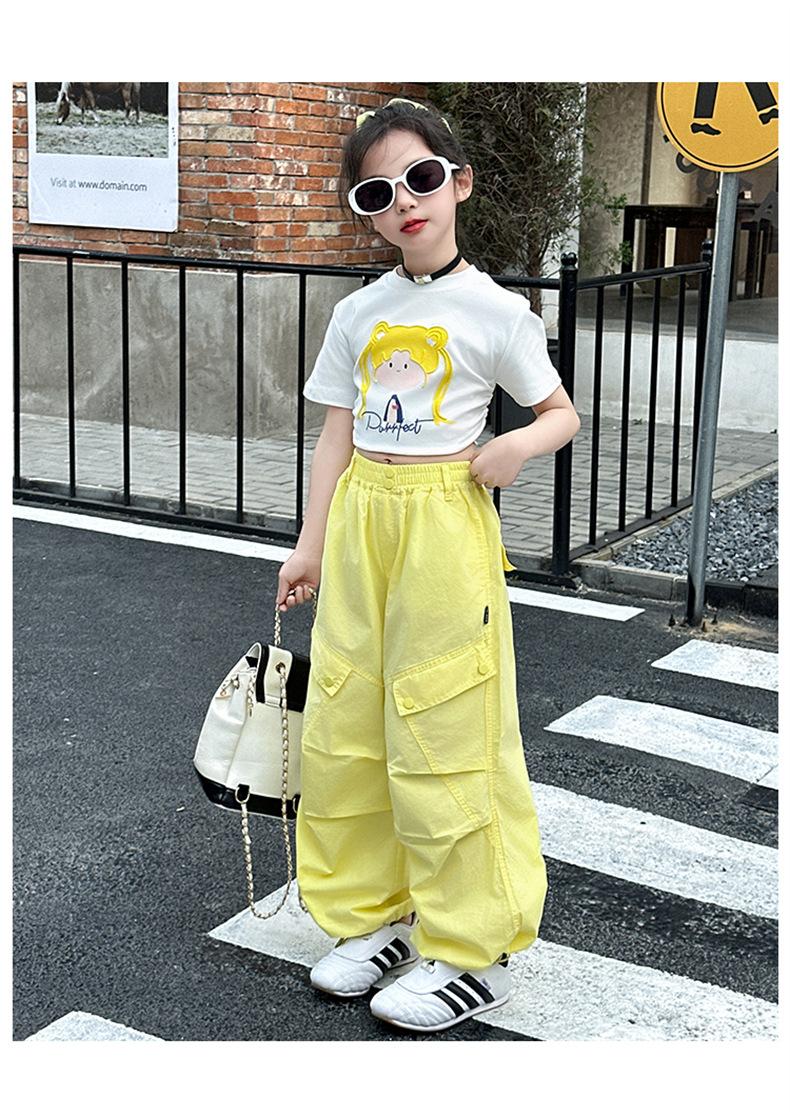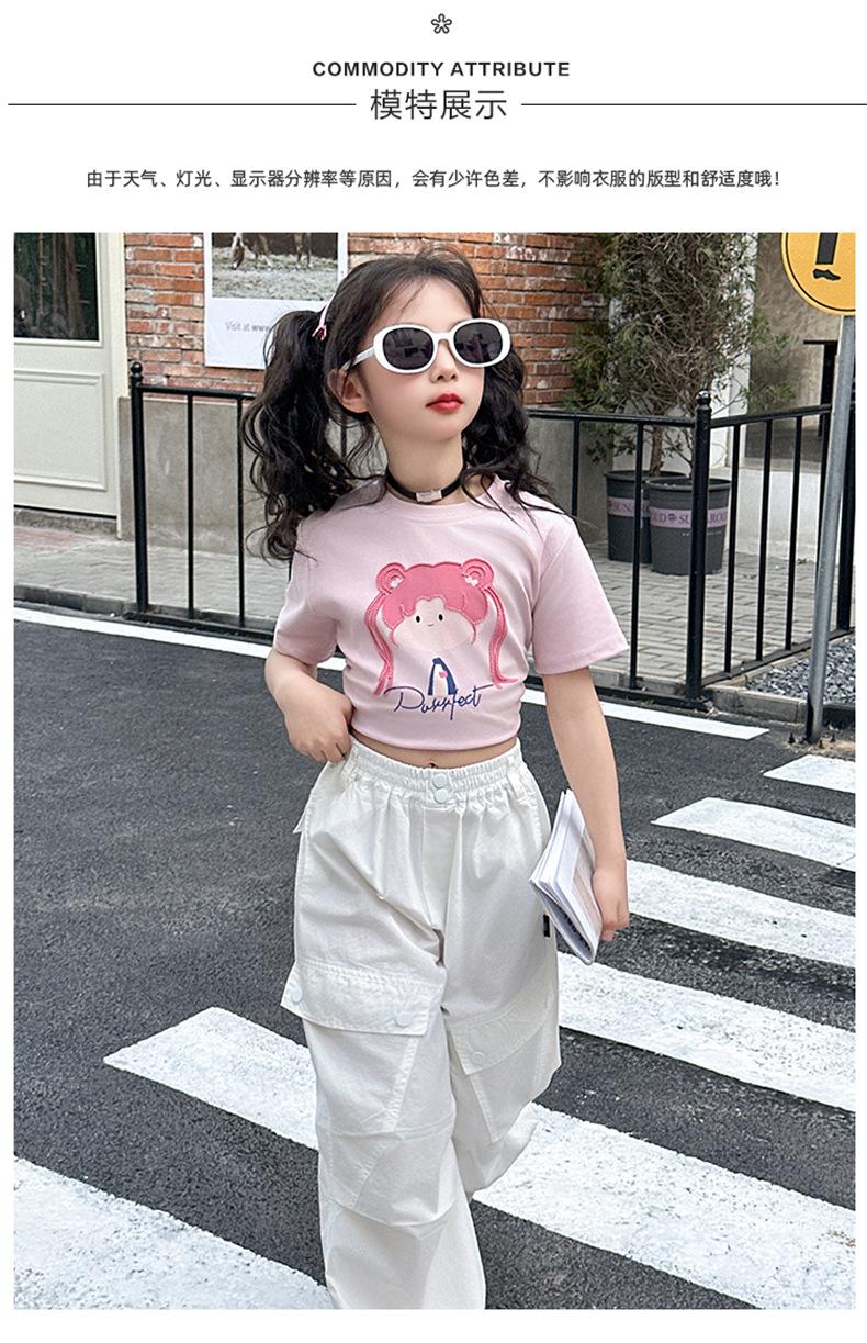 Traje casual para niña con camiseta estampada y pantalones de pierna ancha, lindo pantalón de grulla de manga corta para niños medianos y grandes, nuevo verano 2025