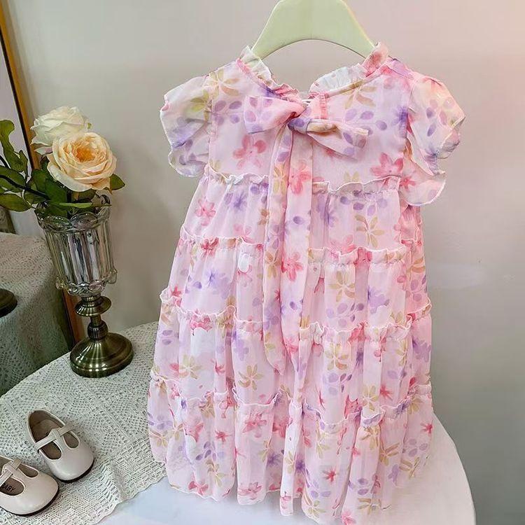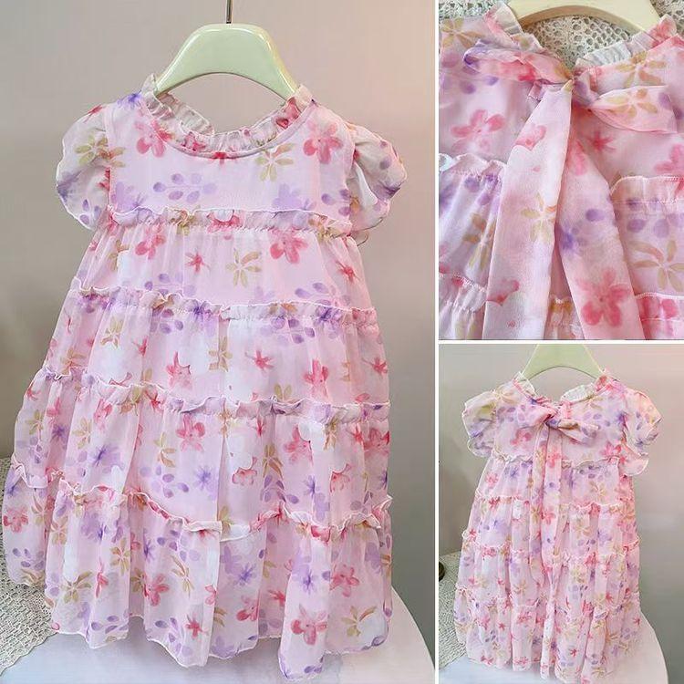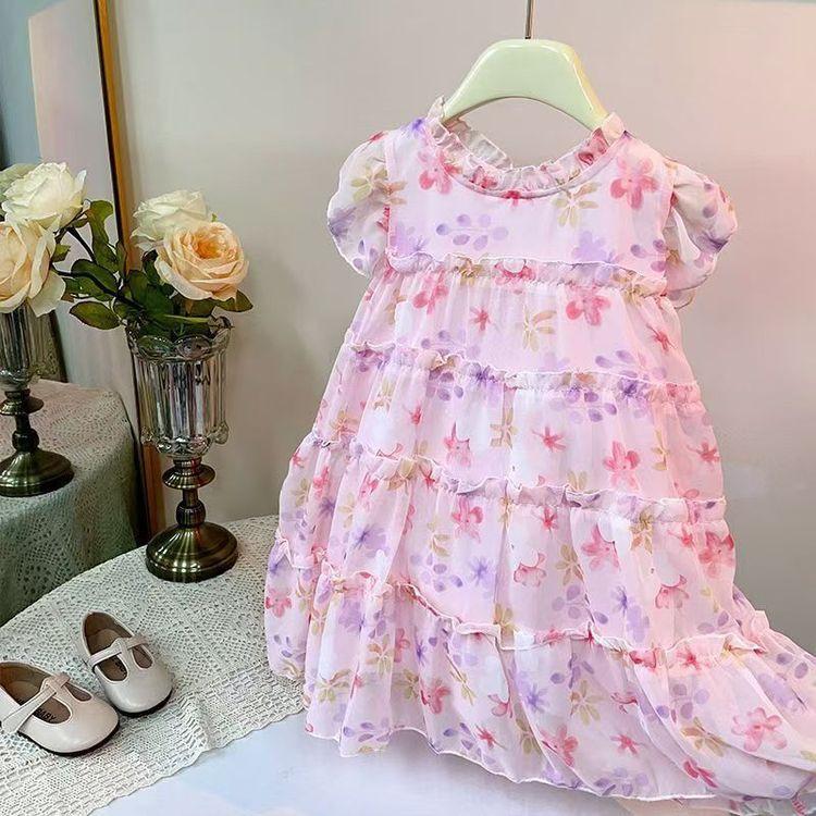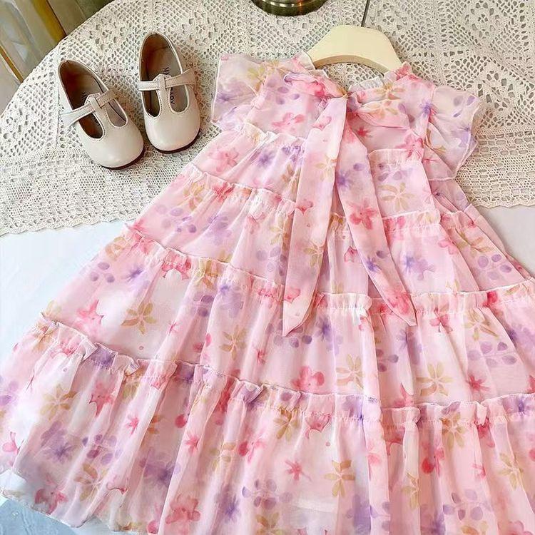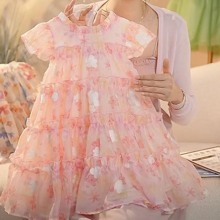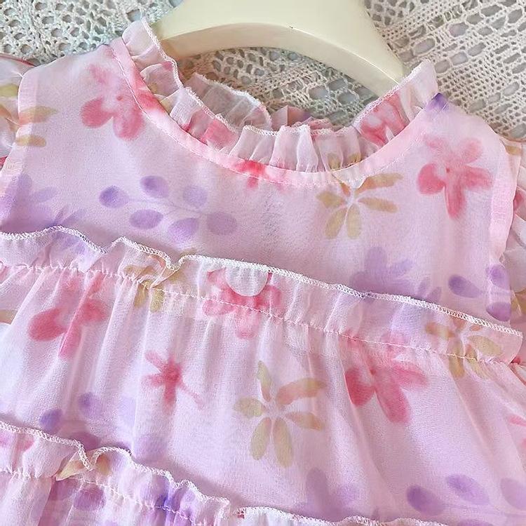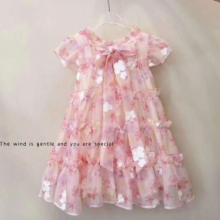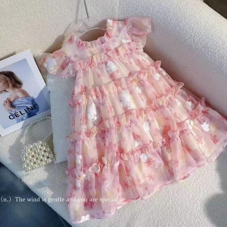 Vestido de Princesa Dulce Floral Delgado para Niñas 2025 Verano Nuevo Vestido de Malla de Encaje Super Hada para Niños Trendy