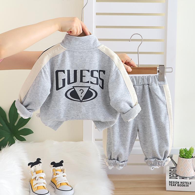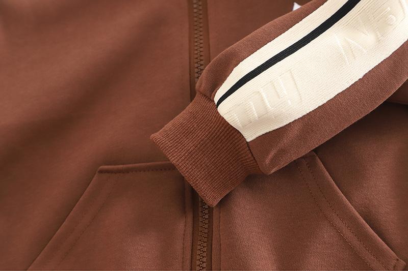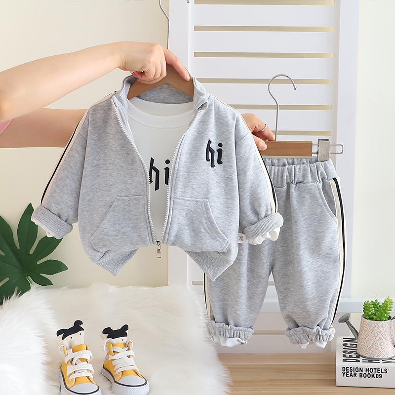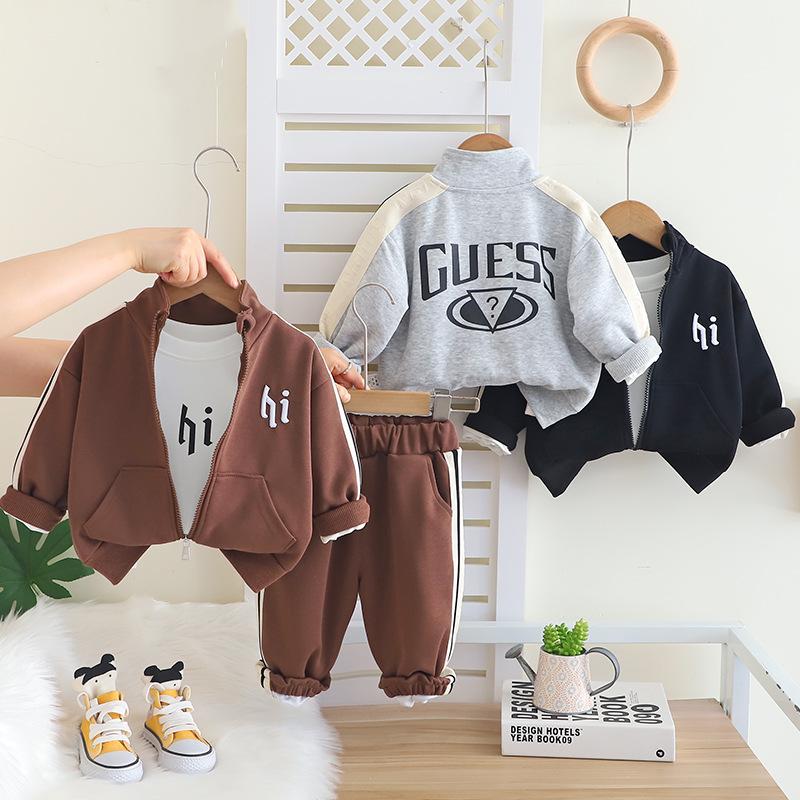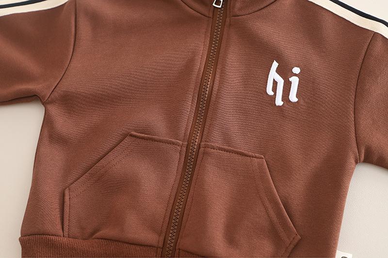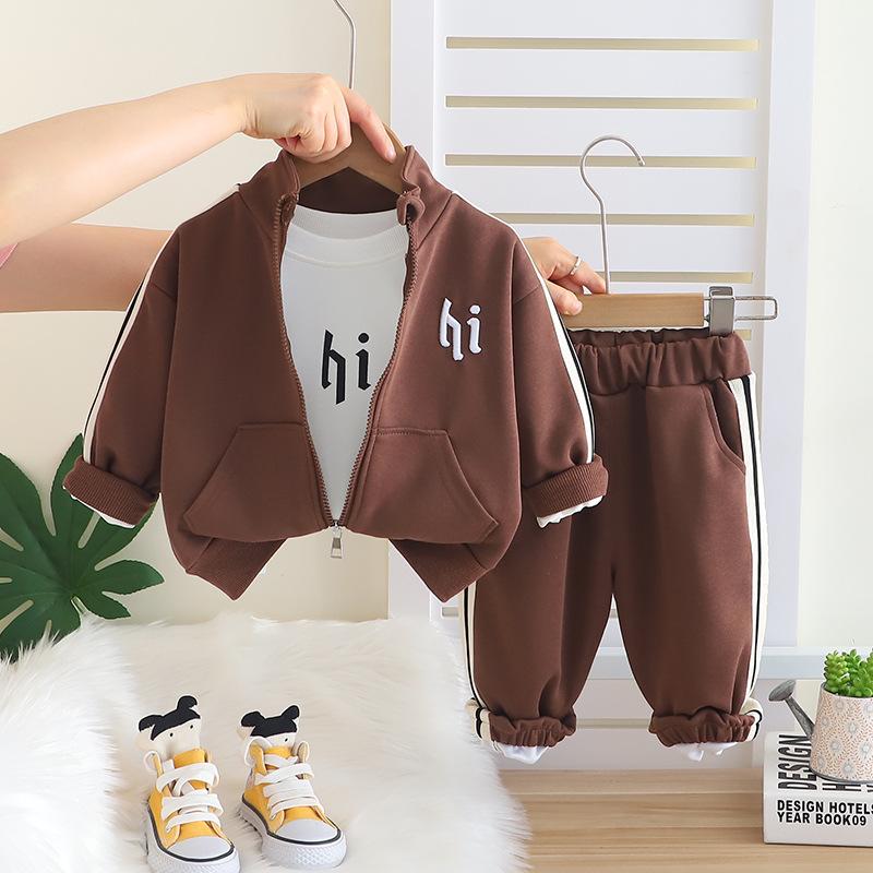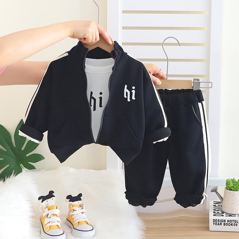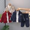 Traje de Primavera y Otoño para Niños 2025 Nuevo Deportivo Cierre Color Sólido Letra Cuello Alto Coreano de Tres Piezas Venta al por Mayor
