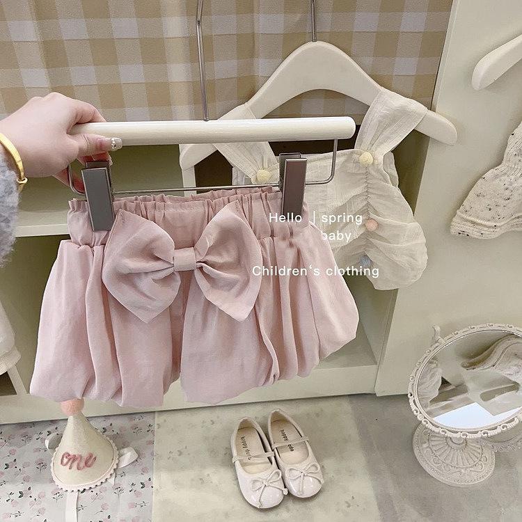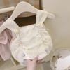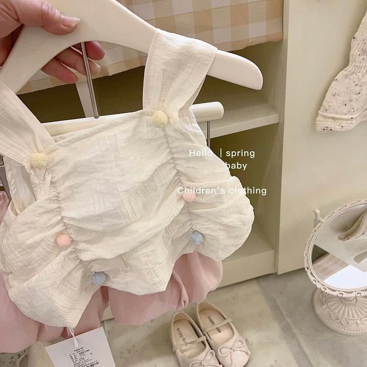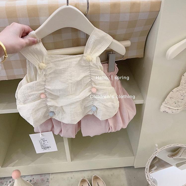 Conjunto de dos piezas dulce y elegante de verano para niñas pequeñas, lindo top tipo muñeca con tirantes + shorts de capullo de flor, conjunto de dos piezas