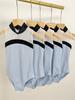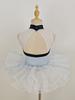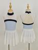 Mist blue-body suit, Mist blue + a piece of mesh skirt, Mist blue + blue sequined organza skirt, Mist blue + three-quarter pants