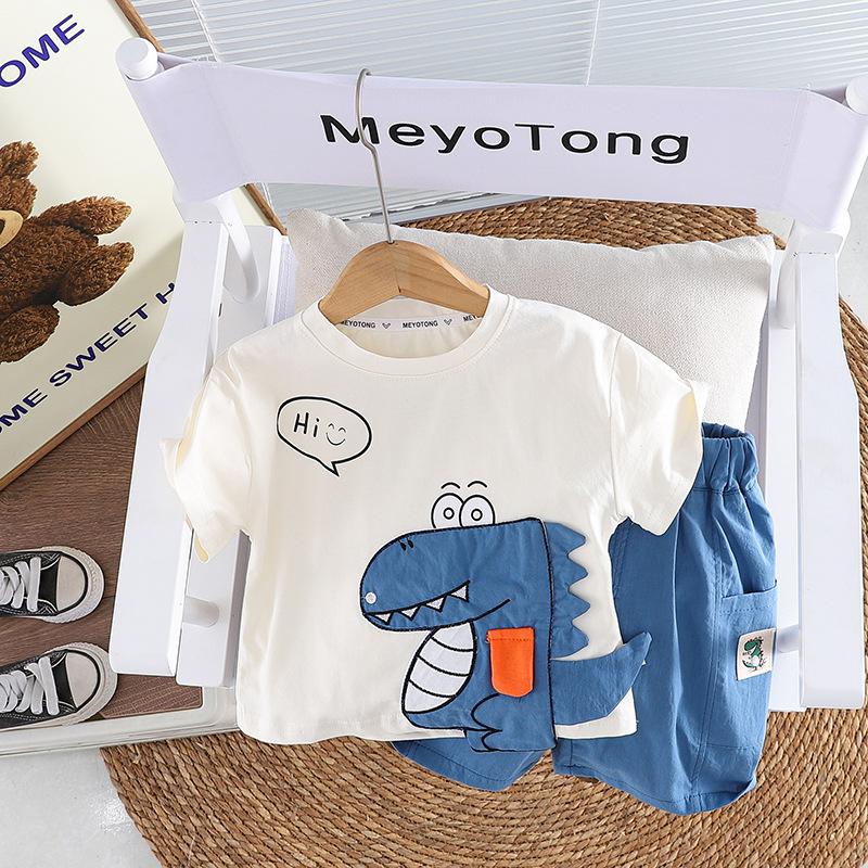 Traje de Verano de Verano para Niño Bebé 2024 Nuevo Camisa de Manga Corta Estilo Occidental para Niños Pantalones Cortos Conjunto de Dos Piezas para Bebé Niño