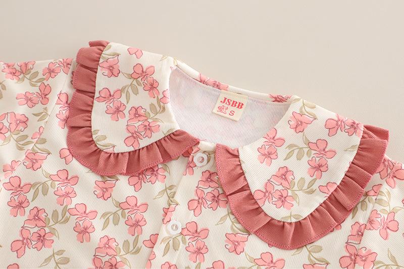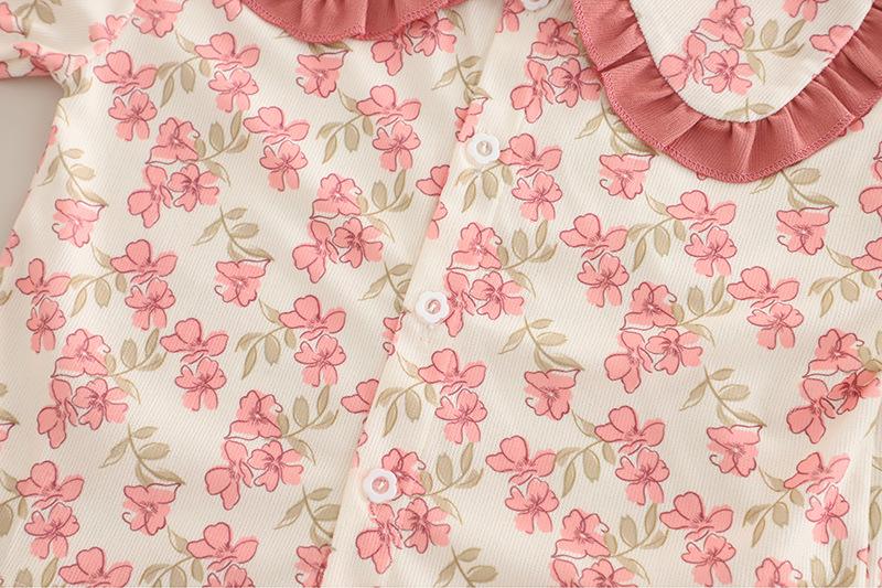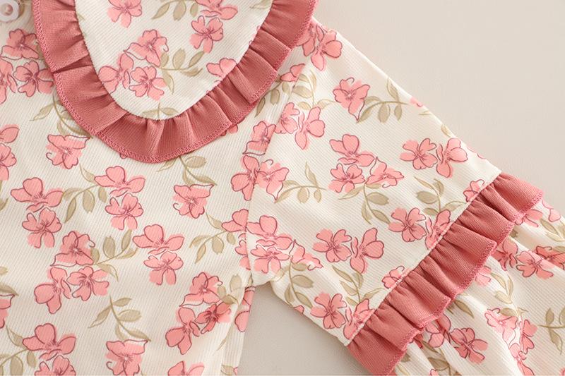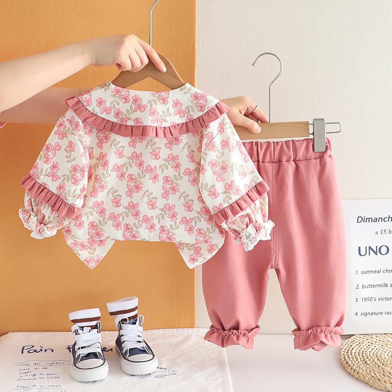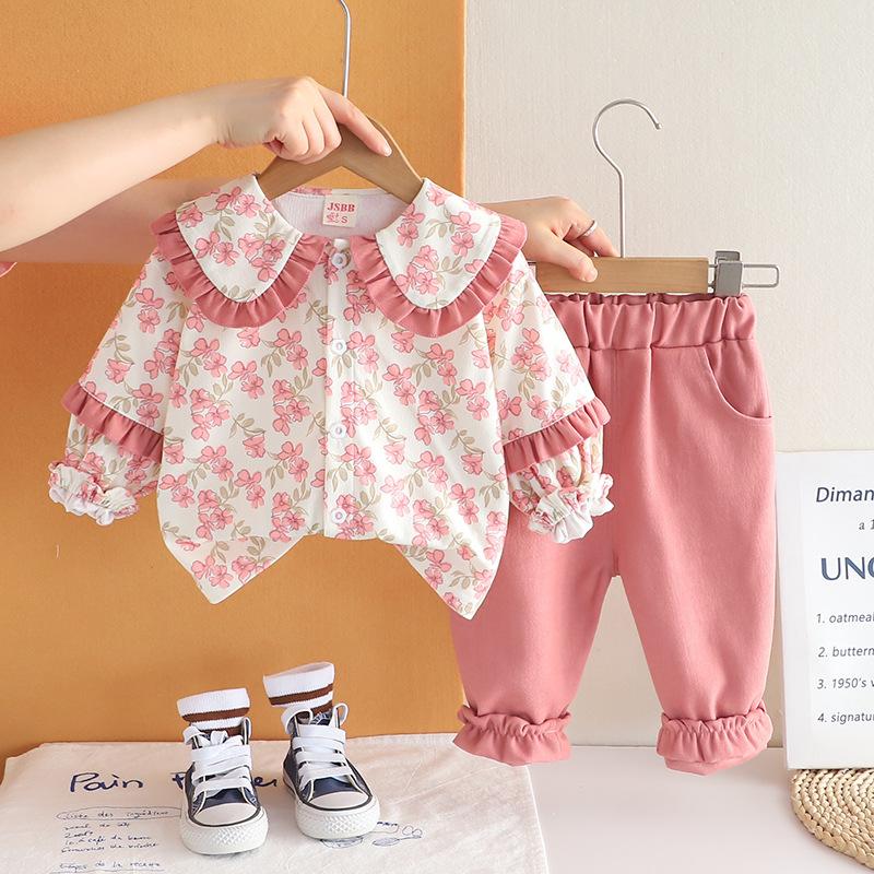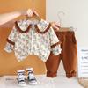 Conjunto de Top y Pantalón para Bebé con Cuello de Muñeca Floral 2025 Nuevo Primavera y Otoño Elegante Conjunto de Dos Piezas Venta al por Mayor Moderno