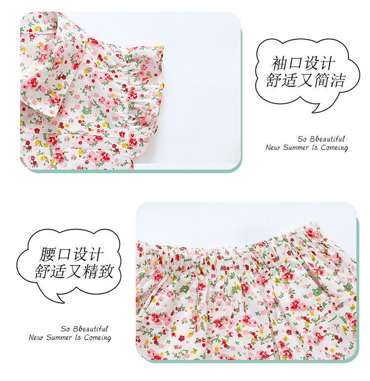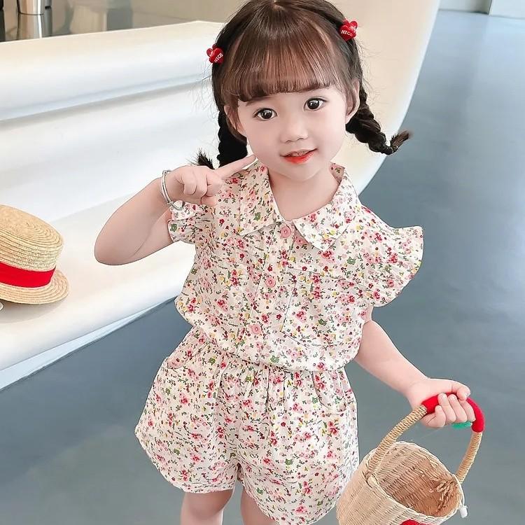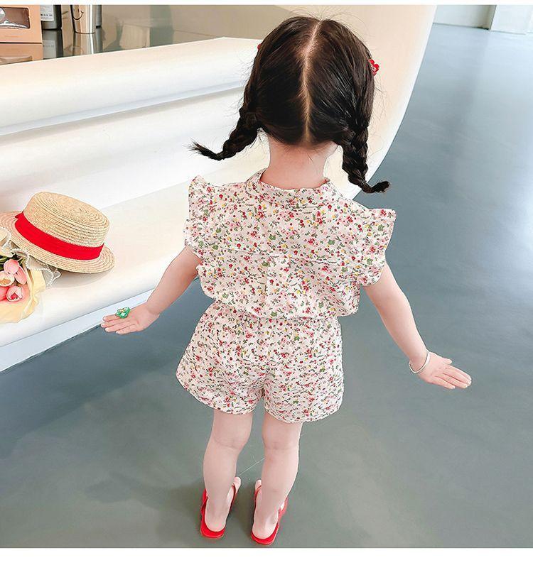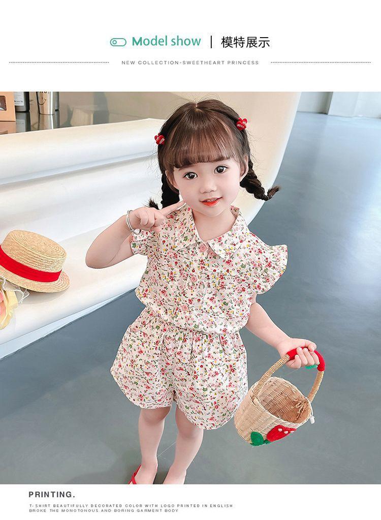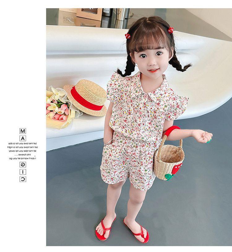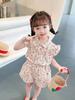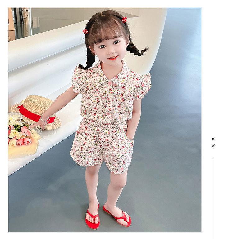 2025 Nuevo Traje de Verano para Niñas Traje de Verano Celebridad de Internet para Niños Estilo Caliente Manga Corta Shorts Estilo Floral Conjunto de Dos Piezas Moderno