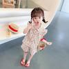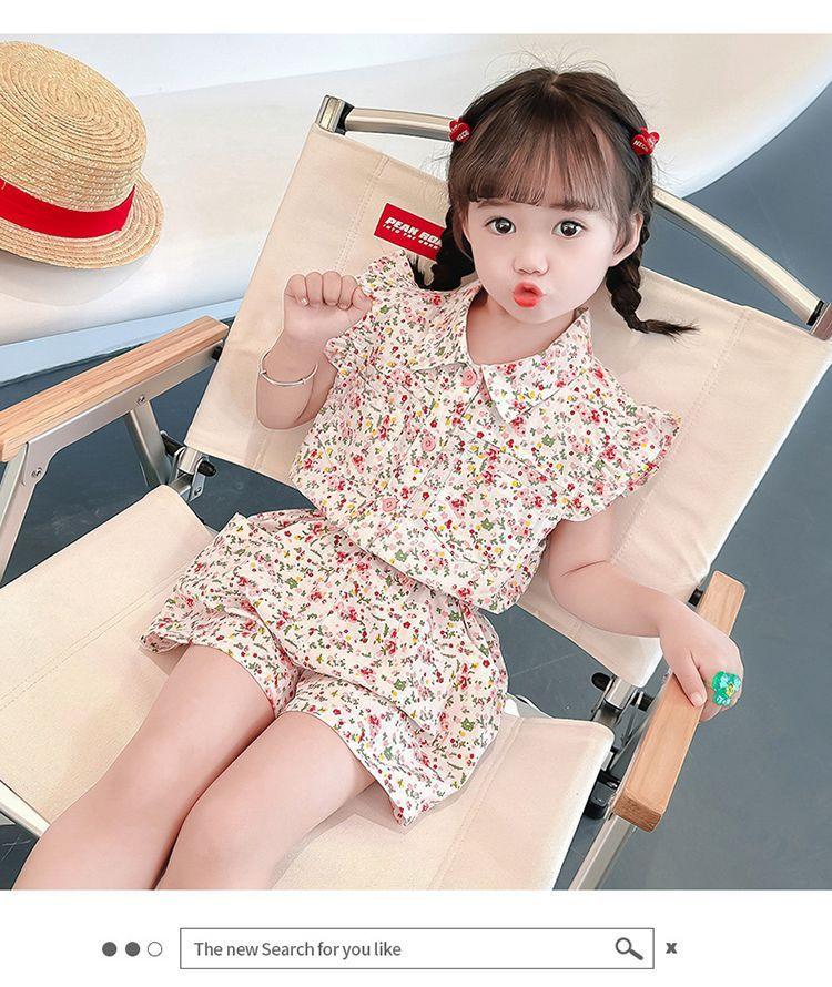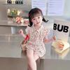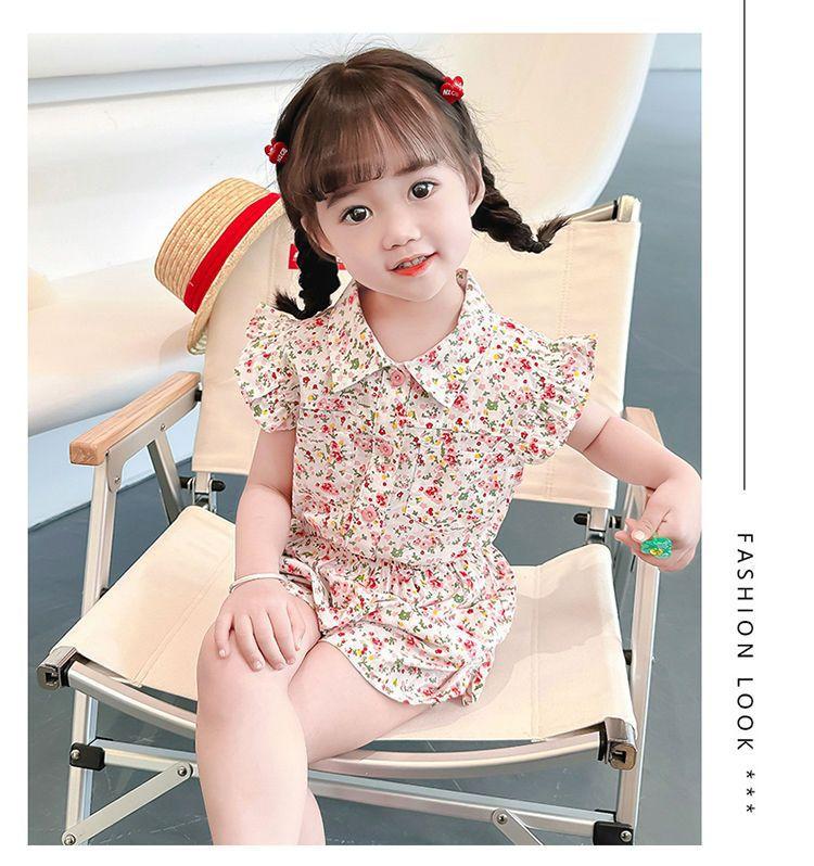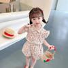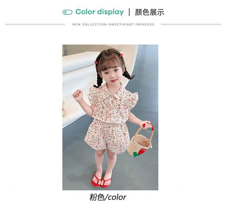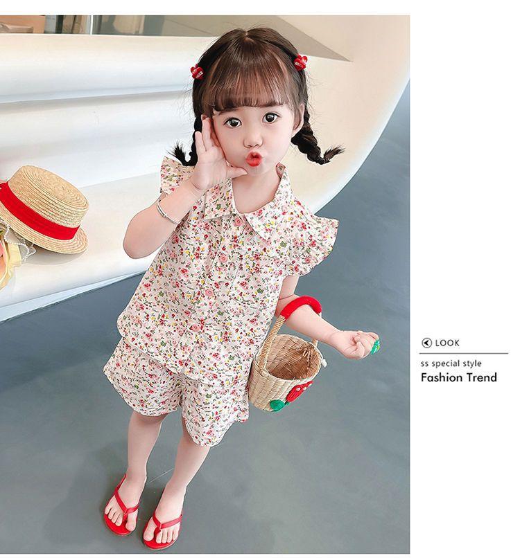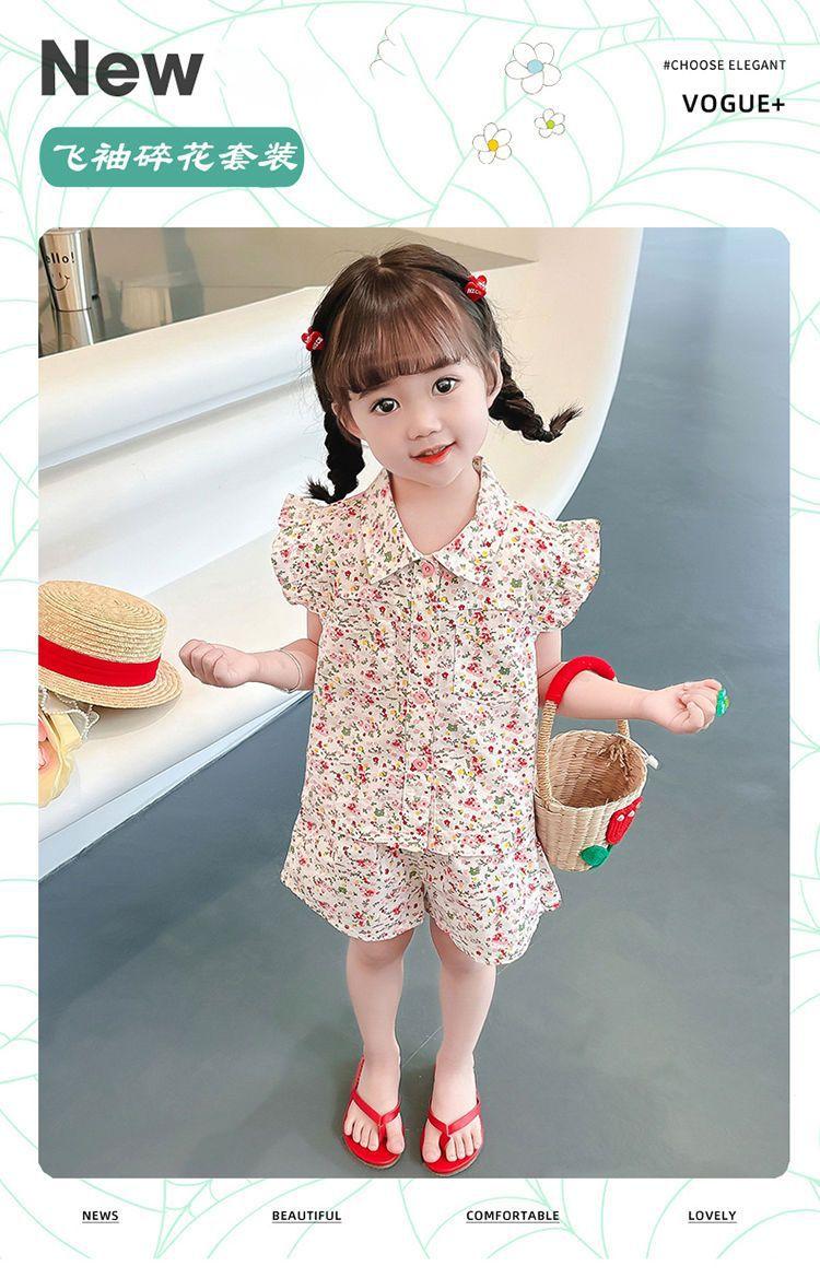 2025 Nuevo Traje de Verano para Niñas Traje de Verano Celebridad de Internet para Niños Estilo Caliente Manga Corta Shorts Estilo Floral Conjunto de Dos Piezas Moderno