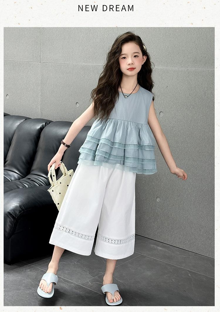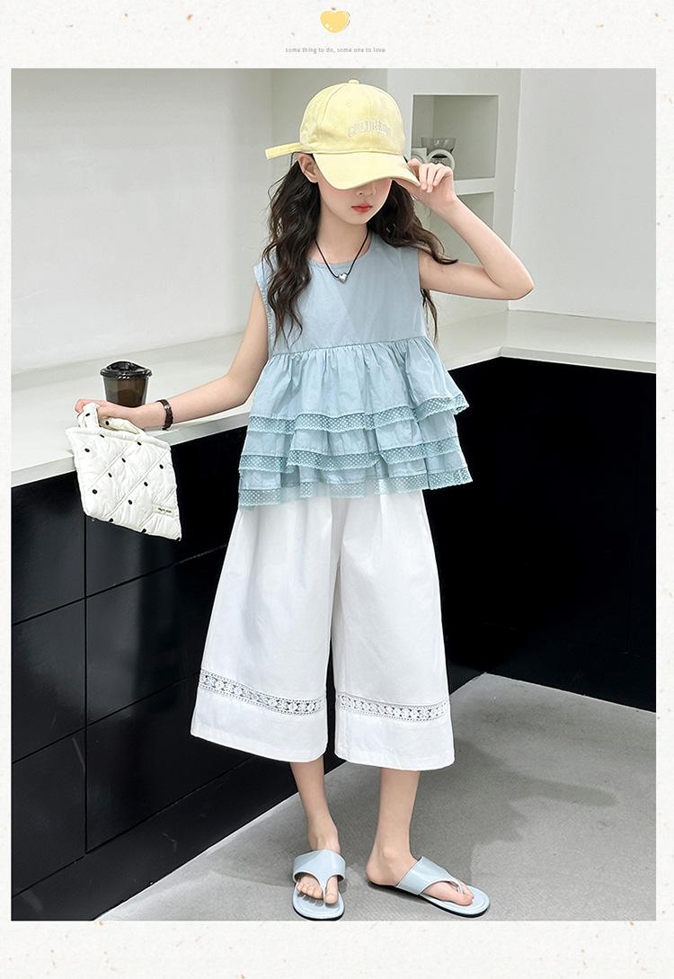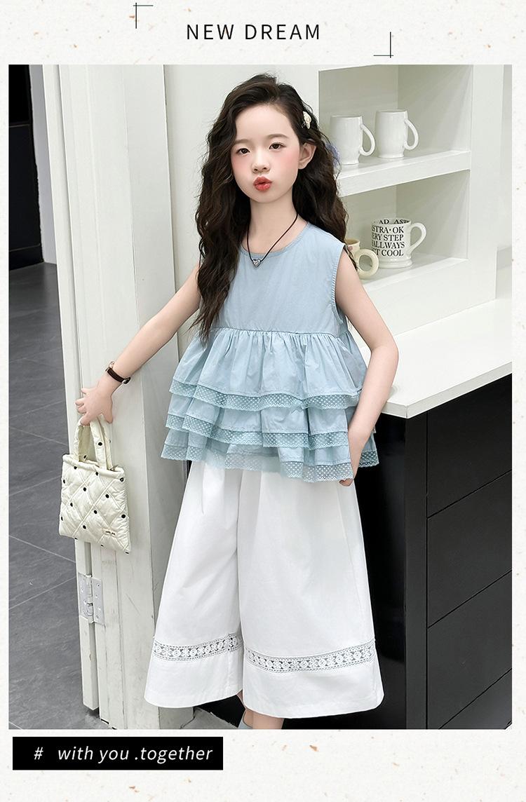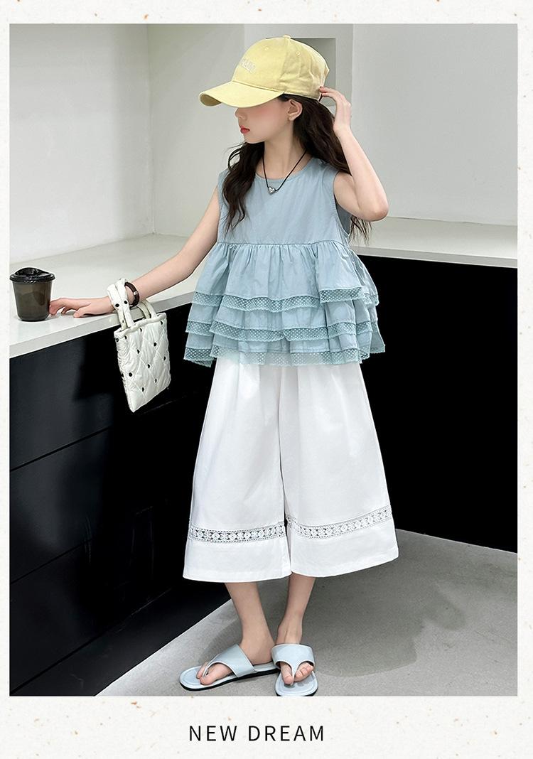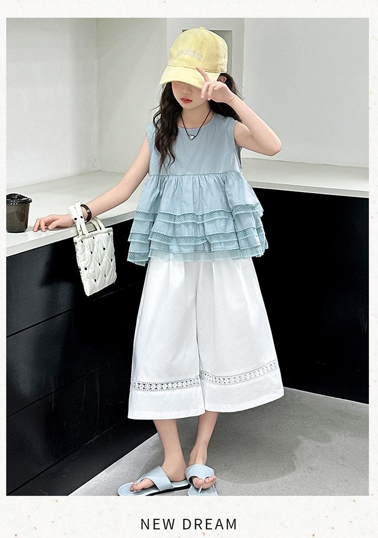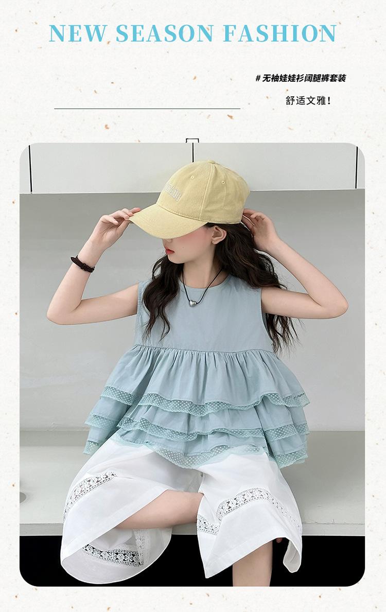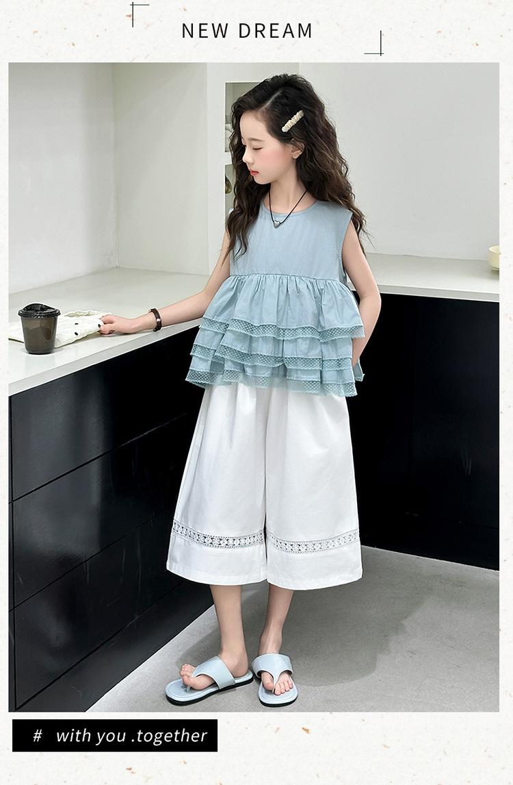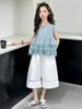 Tops para Niñas 2025 Verano Nuevo Encaje Sin Mangas Dulce Tops para Niños Trendy Pantalones Sueltos de Pierna Ancha