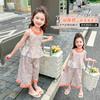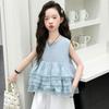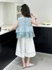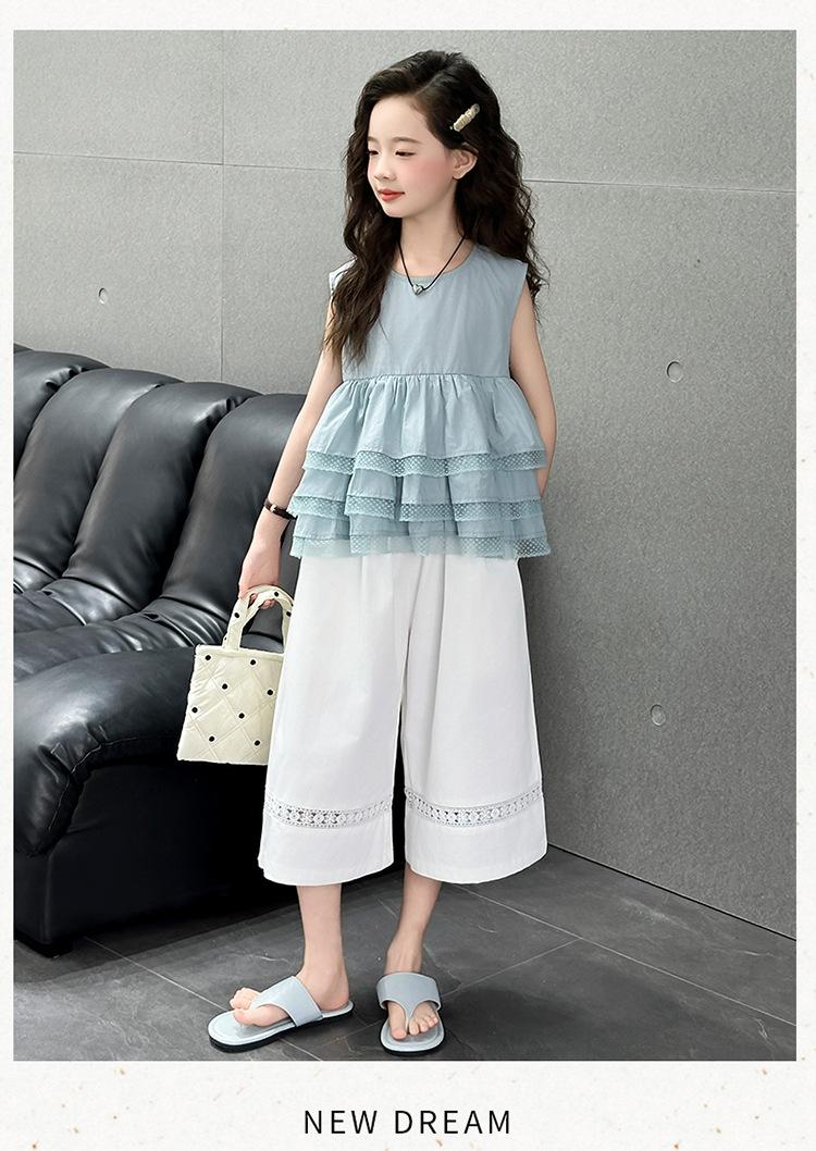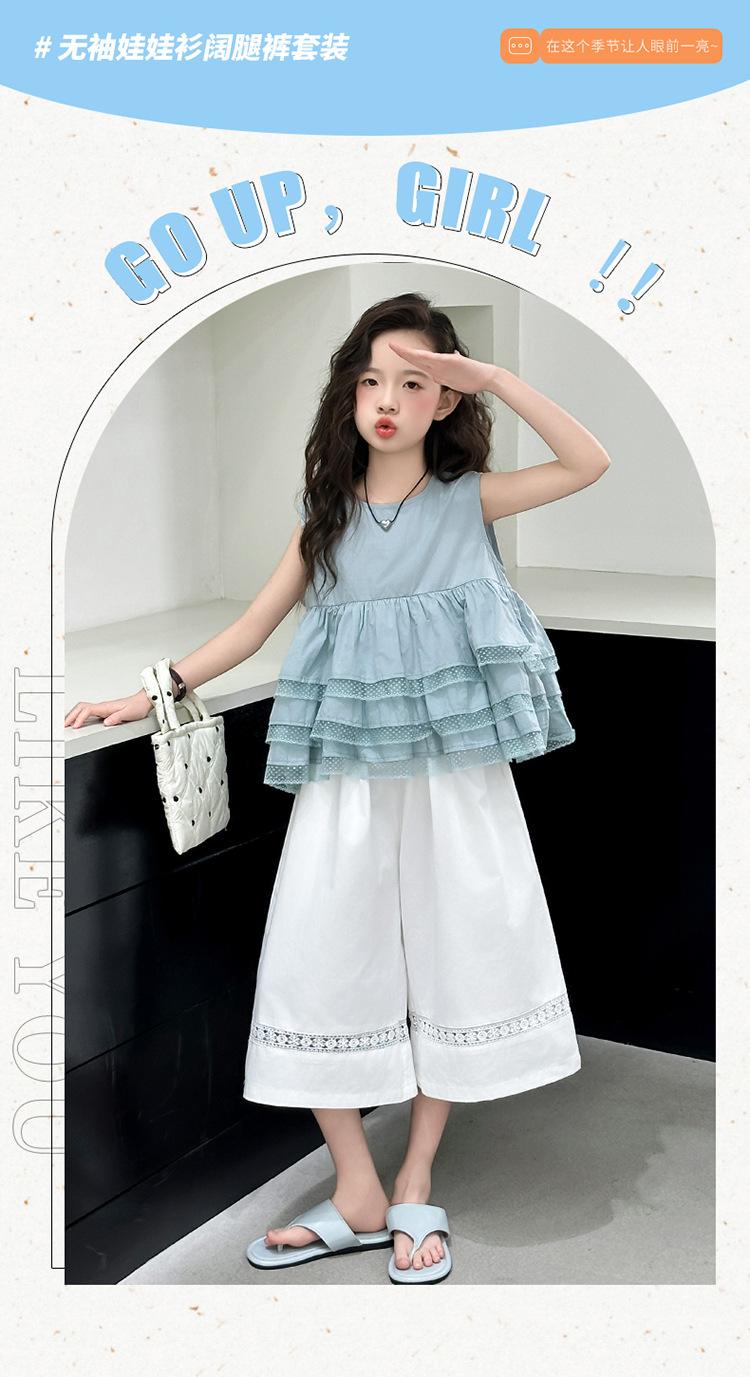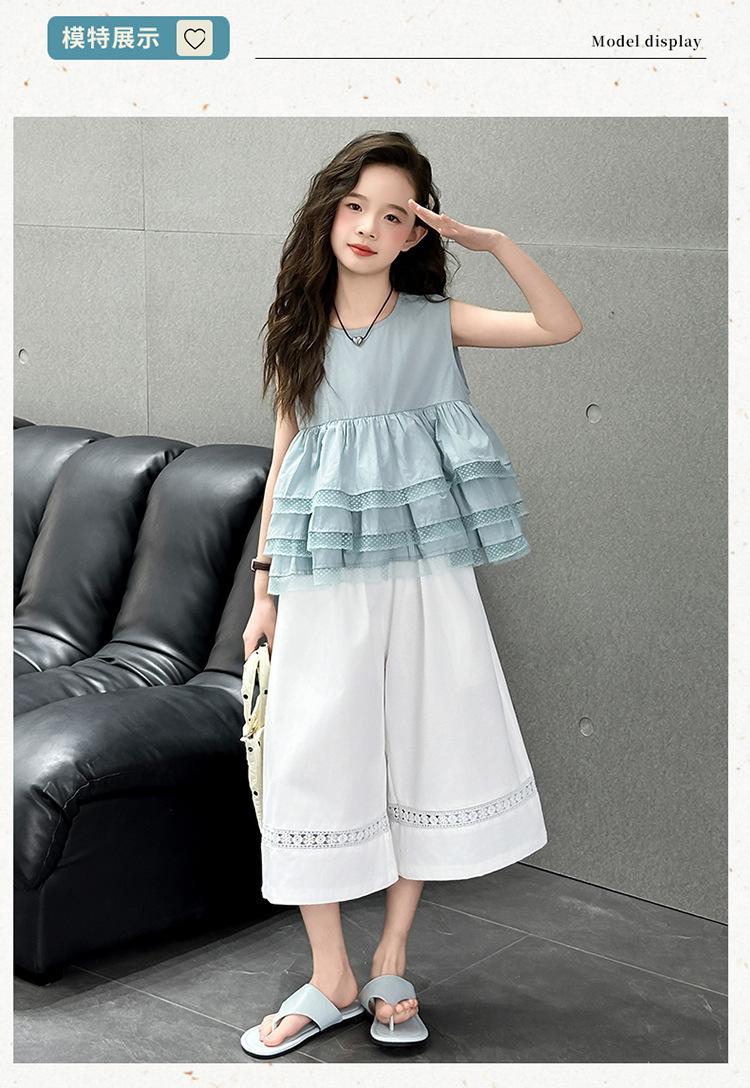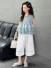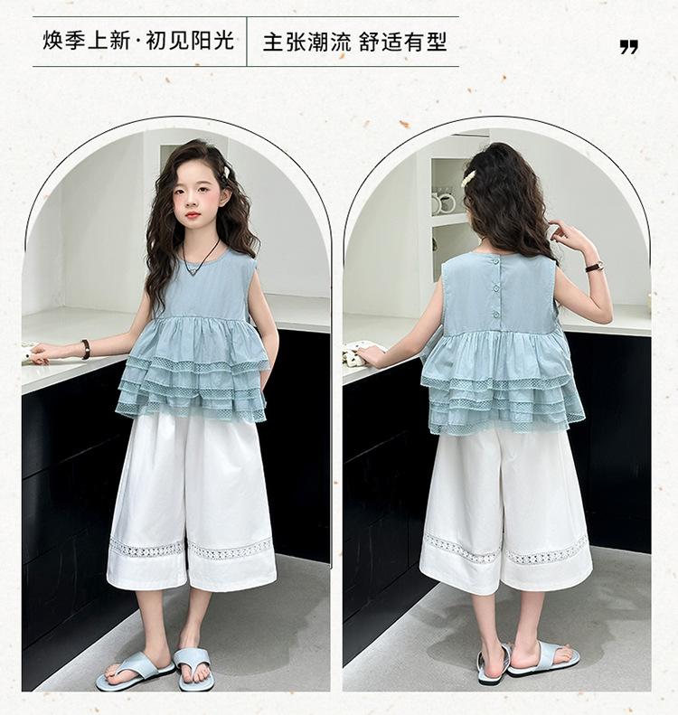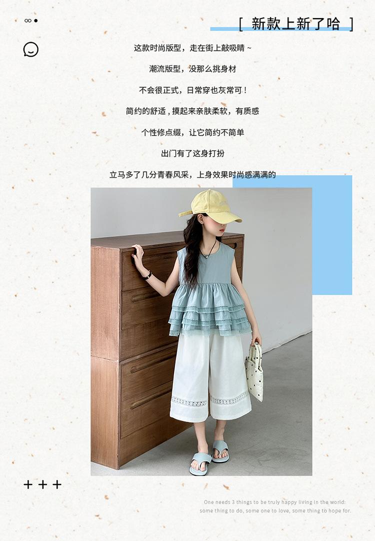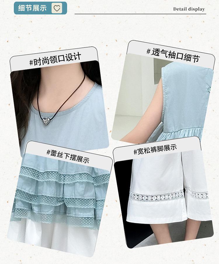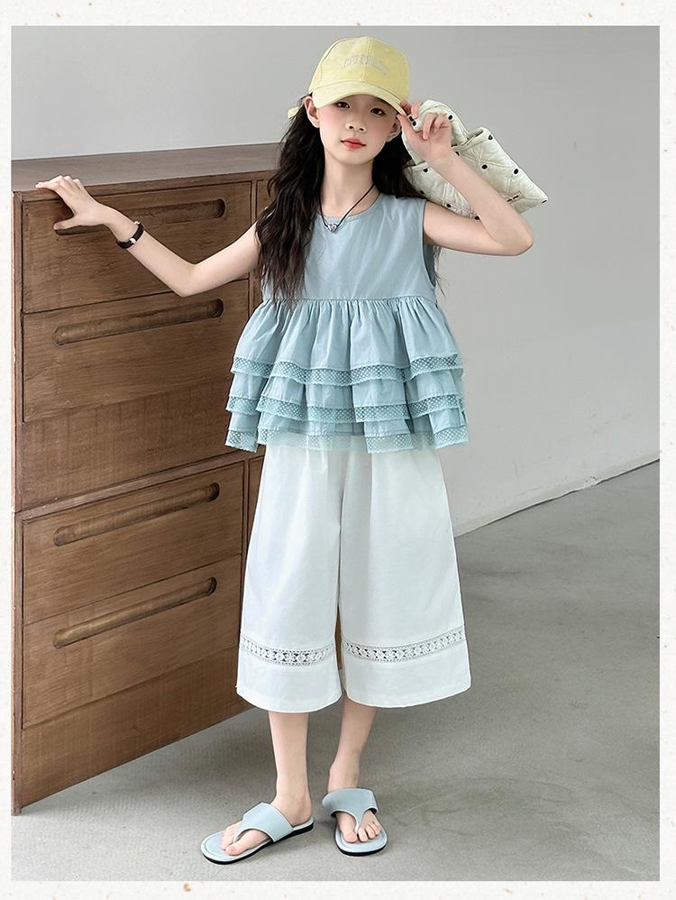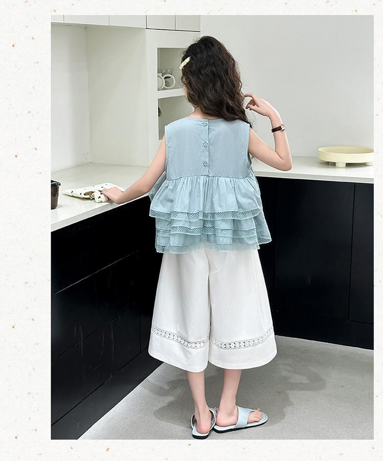 Tops para Niñas 2025 Verano Nuevo Encaje Sin Mangas Dulce Tops para Niños Trendy Pantalones Sueltos de Pierna Ancha