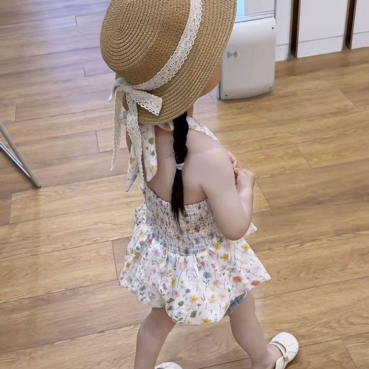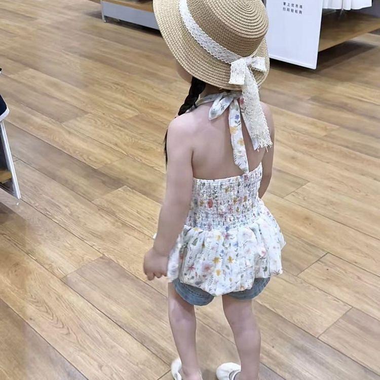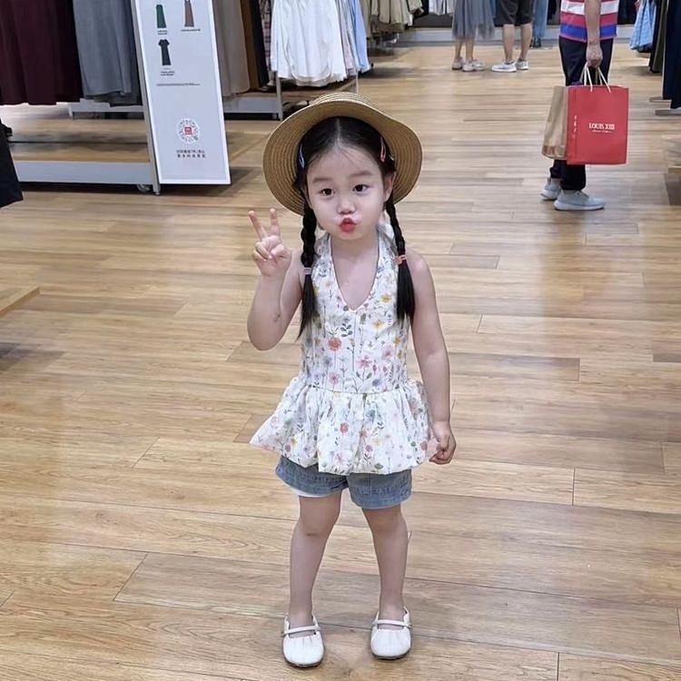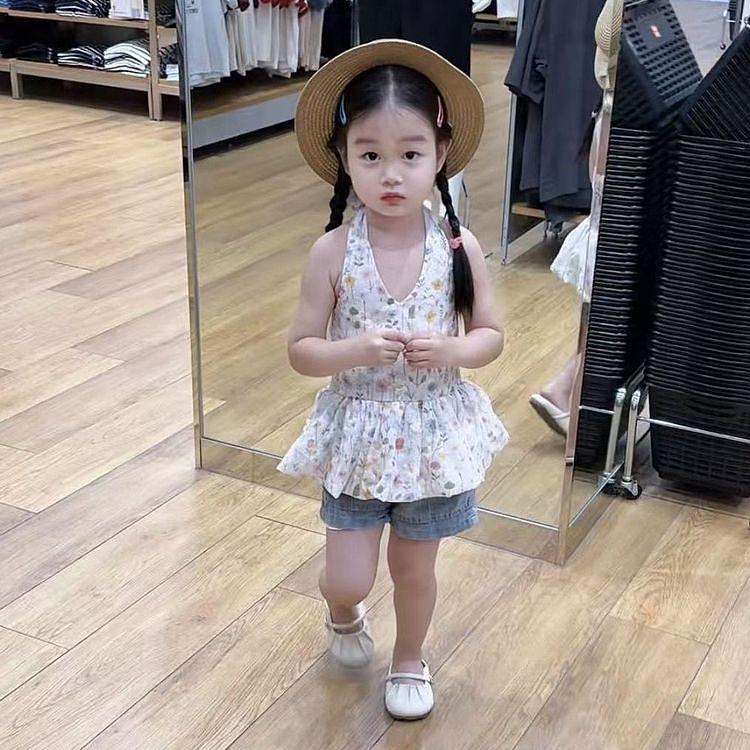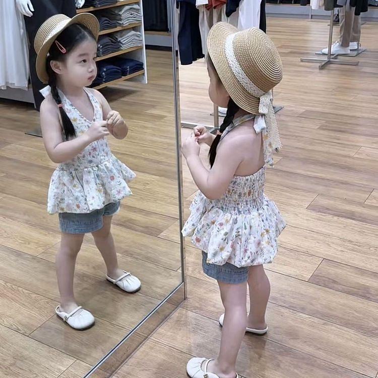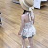 Traje de Verano para Niñas 2025 Nuevo Estilo Verano Floral Niña Pequeña Niños Medianos y Grandes Conjunto de Dos Piezas