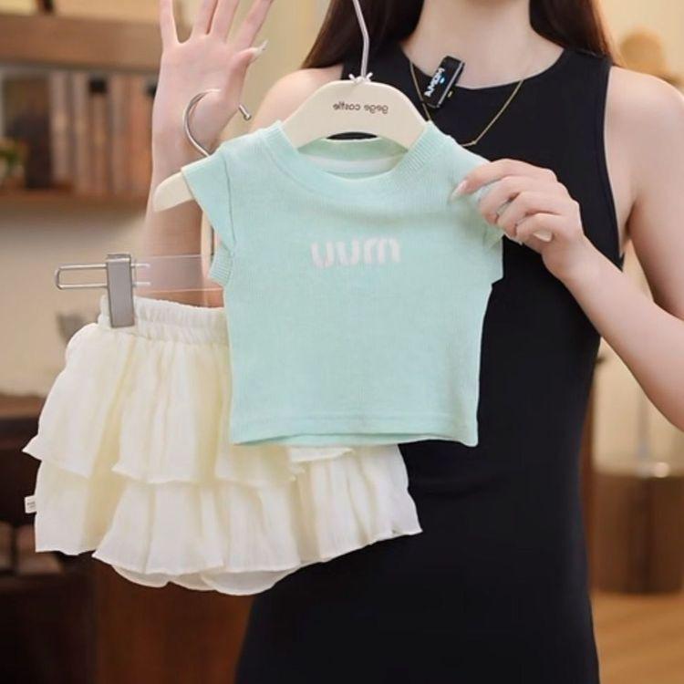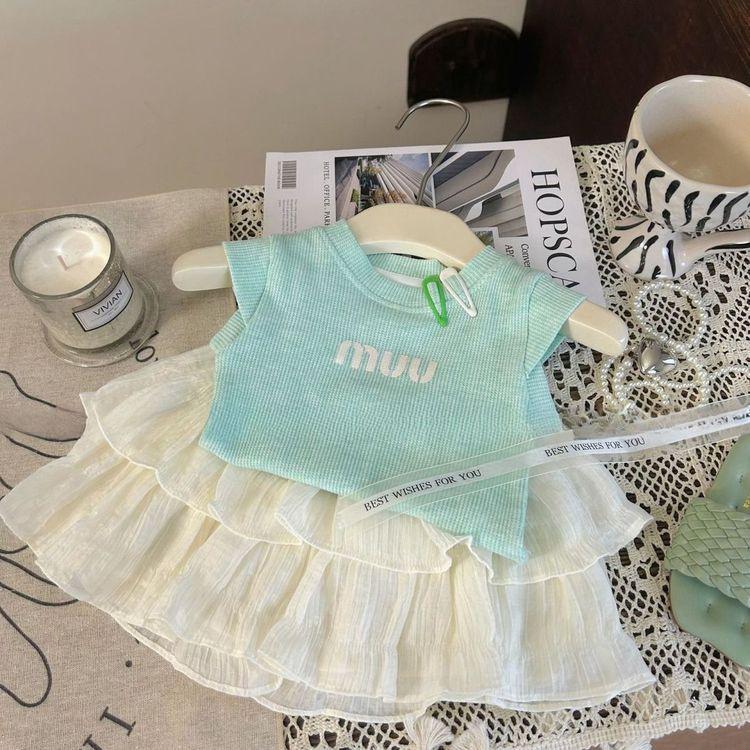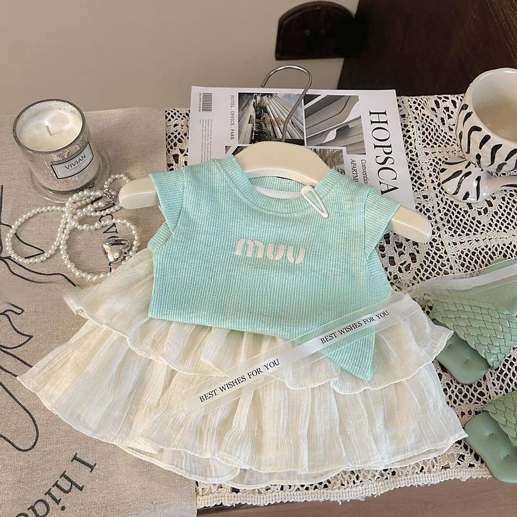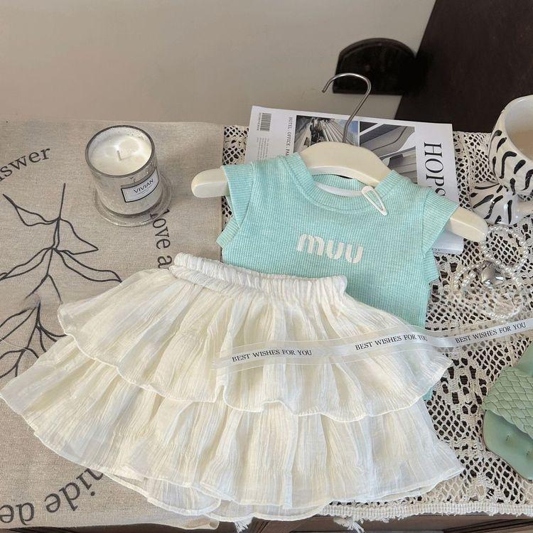 Traje de Chaleco de Verano para Niñas 2025 Nuevo Bebé Niña Estilo Coreano Dulce Camiseta sin Mangas Falda Pastel Conjunto de Dos Piezas
