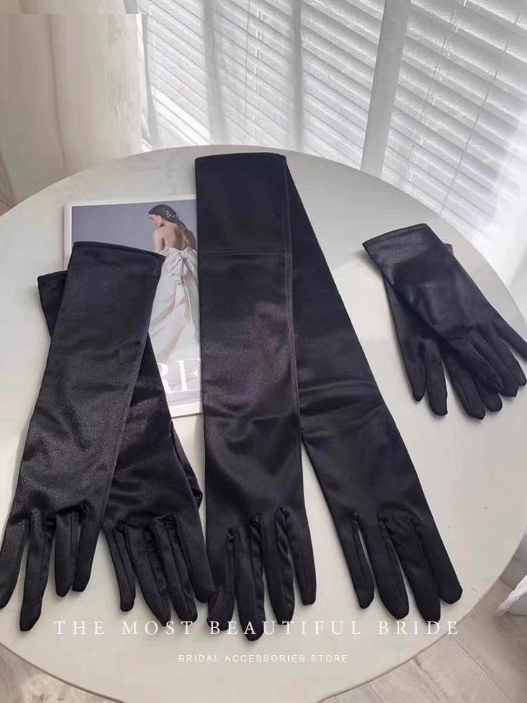 Vestido Largo de Cena de Boda Guantes de Satén Boda Actuación Baile de Graduación Accesorios de Disfraz Guantes de Baile