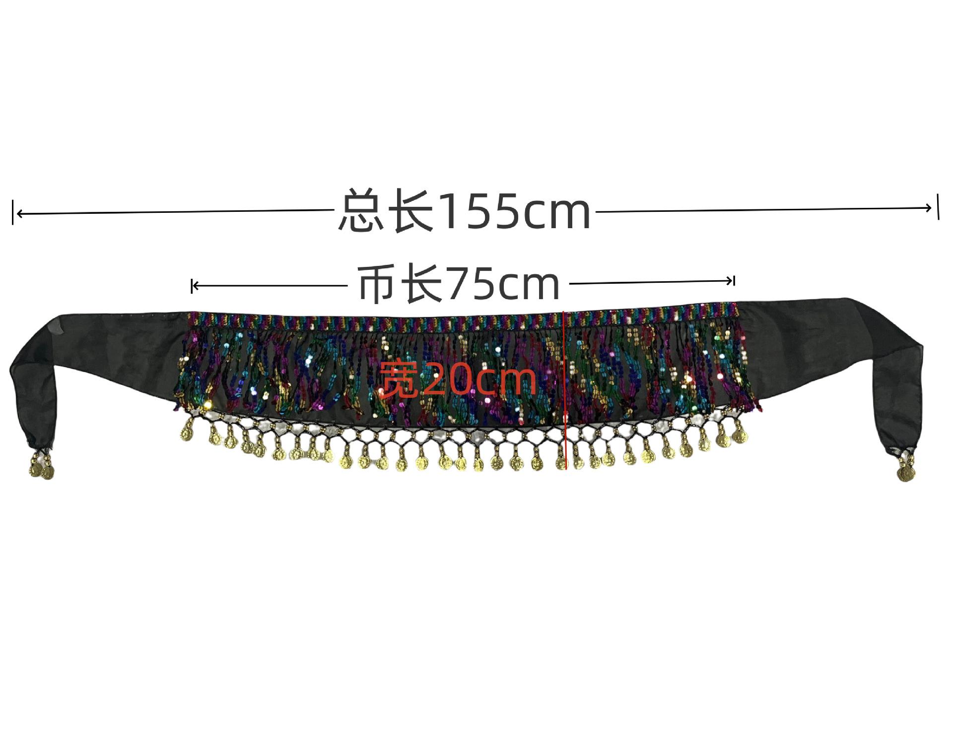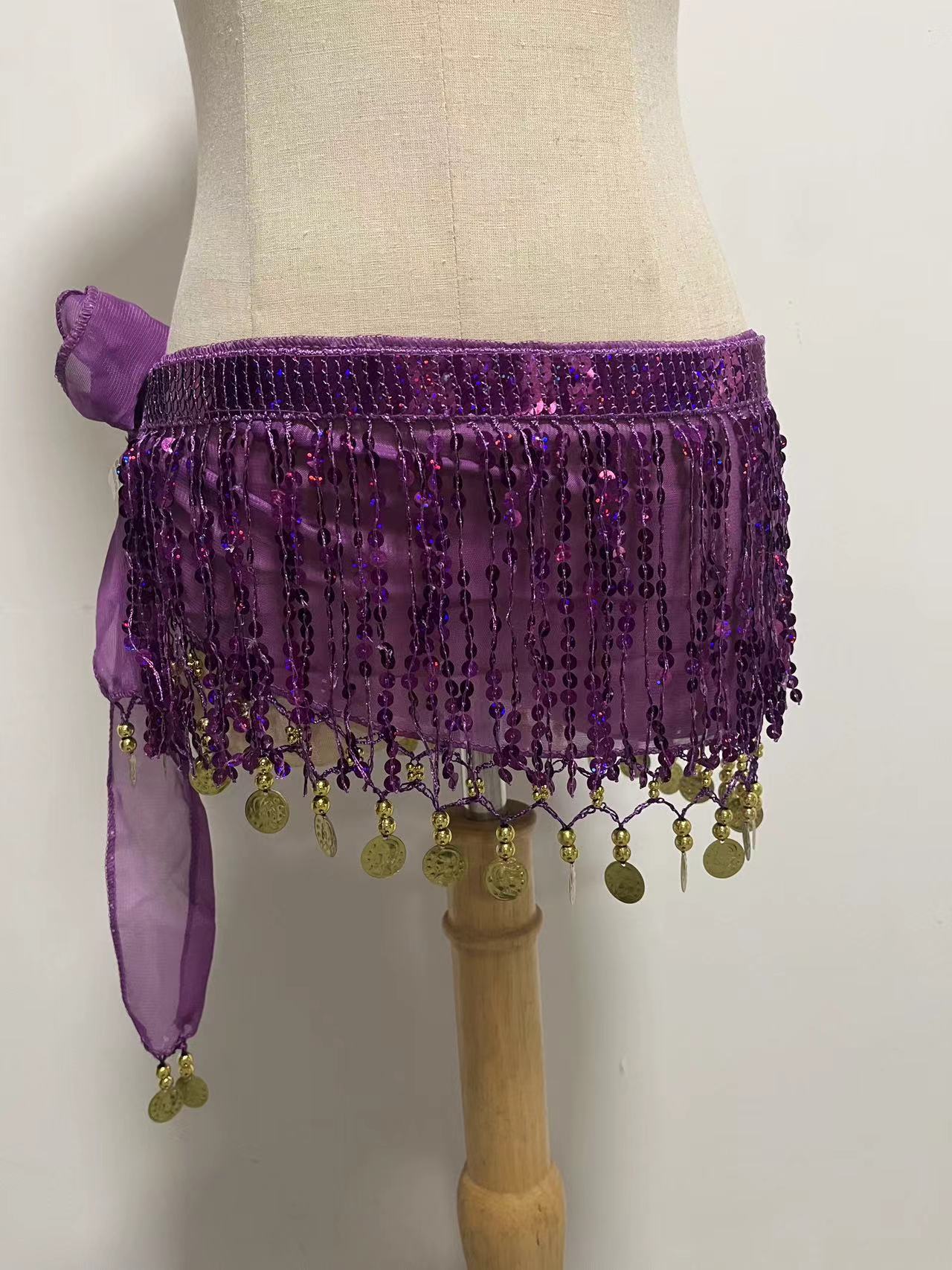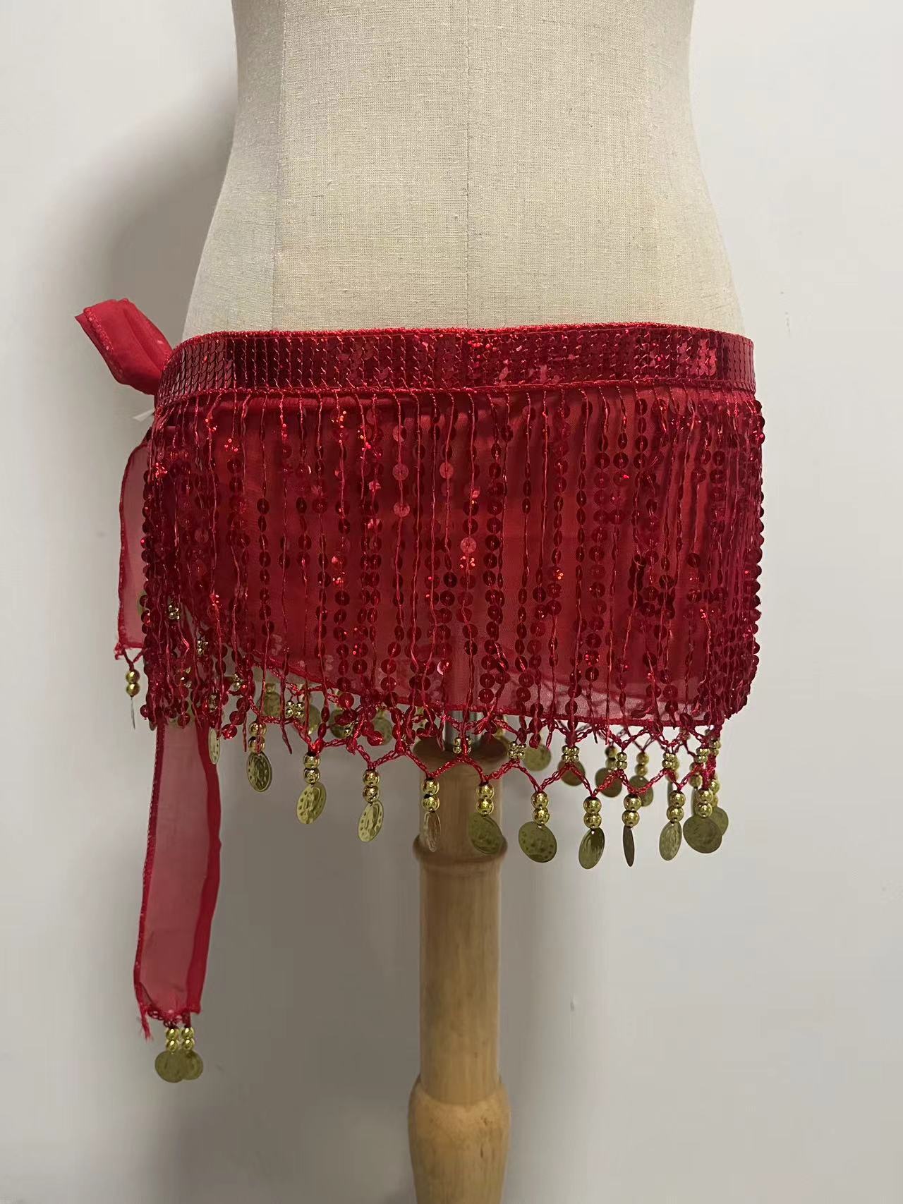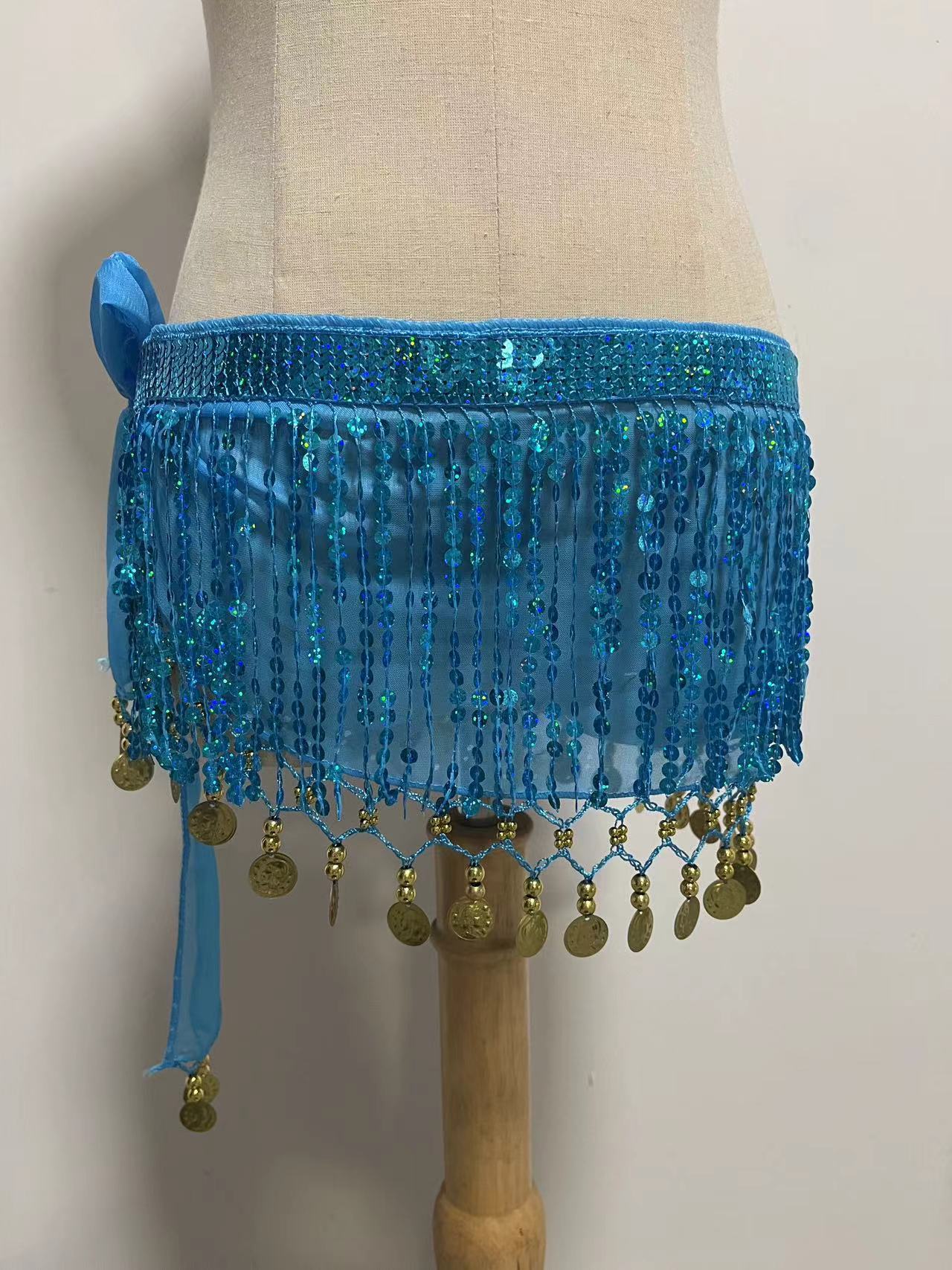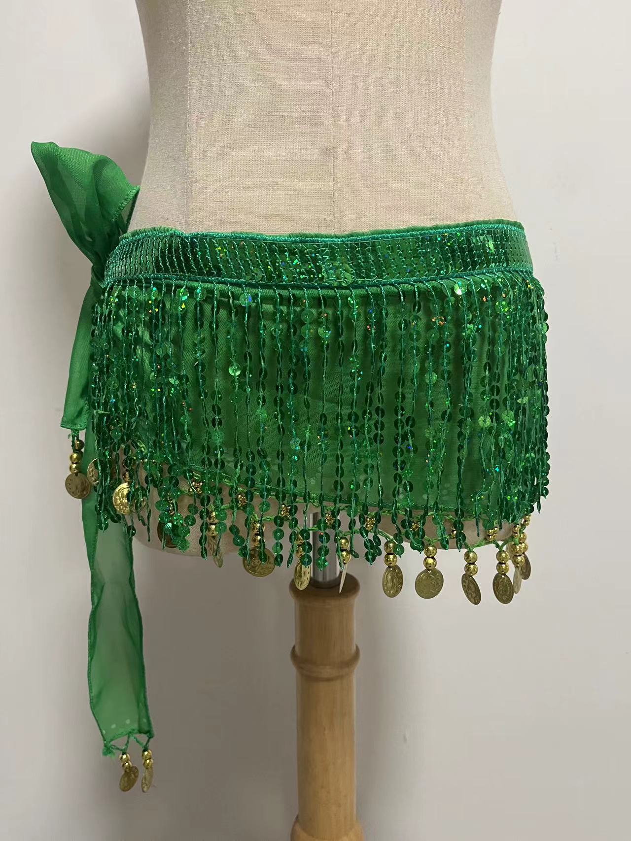 Halloween danza del vientre lentejuelas borla cadera toalla actuación escénica cuentas colgantes cinturón de monedas danza india cadena de cintura al por mayor