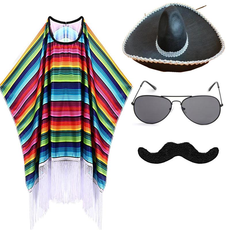 Capa mexicana Halloween chal adulto capa infantil fiesta barba Sombrero mexicano suministros para fiesta