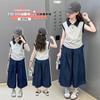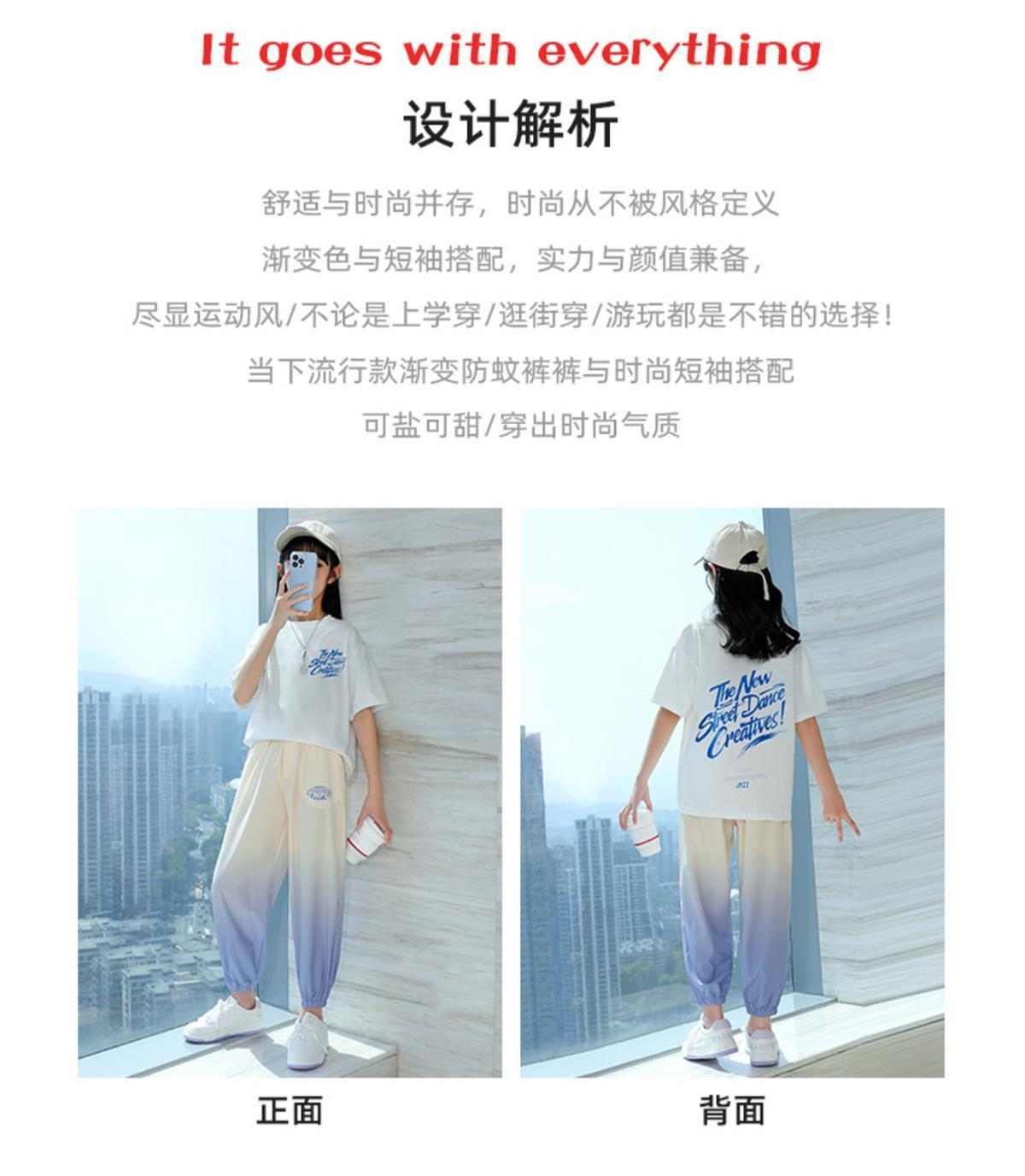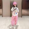 Traje deportivo para niñas ropa nueva de verano ropa de moda para niños medianos y grandes ropa infantil de verano calle frita de dos piezas manga corta pantalones a prueba de mosquitos