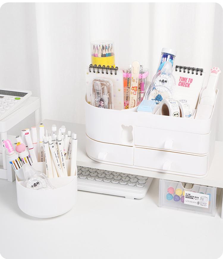 Caja de Almacenamiento para Brochas de Maquillaje Tipo Cajón Tocador Cosméticos Lápiz Labial Sombra de Ojos Estante de Almacenamiento para Productos para el Cuidado de la Piel Tubo de Almacenamiento de Escritorio