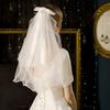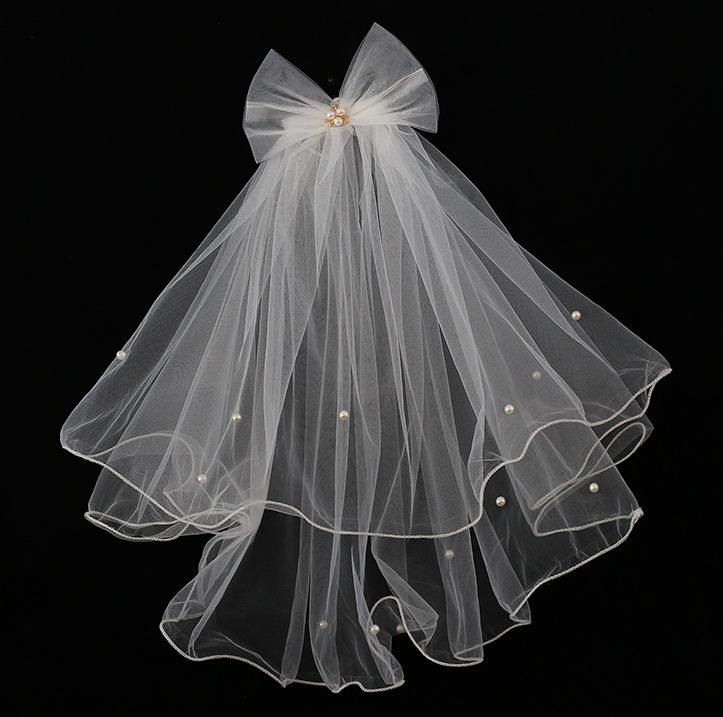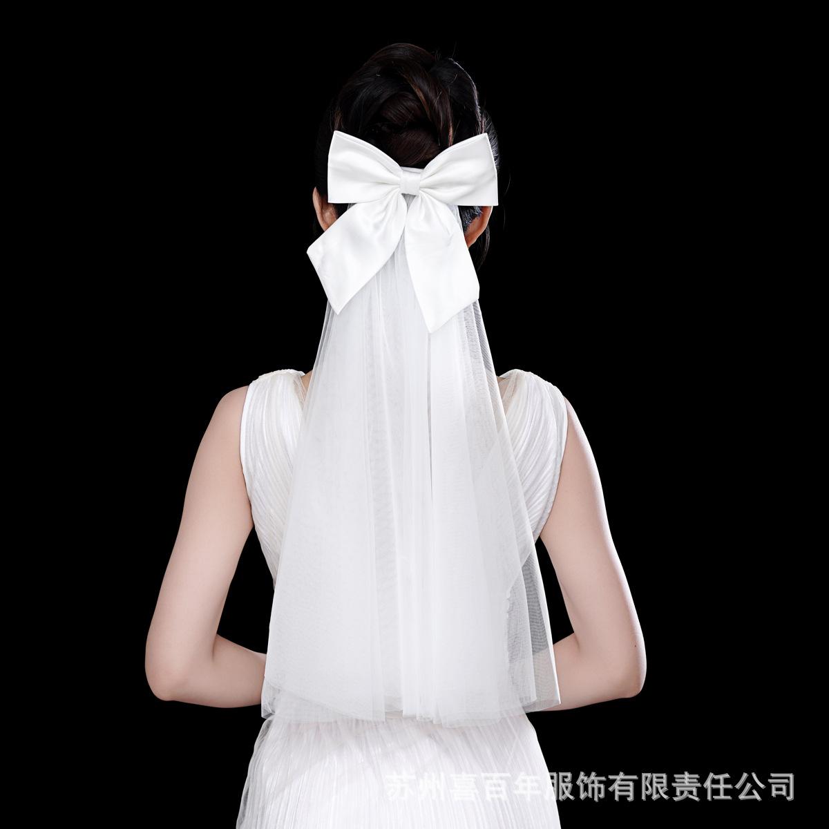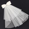 Boda Velo Blanco Corto de Doble Capa Liso Satén Lazo Tocado Boda Novia Foto Certificado Registro