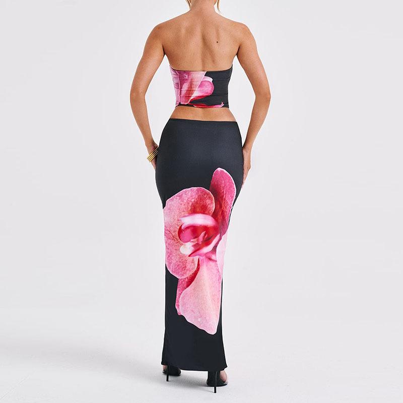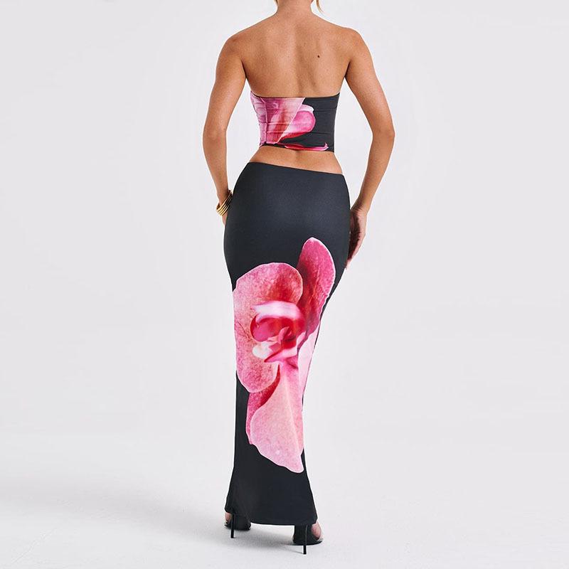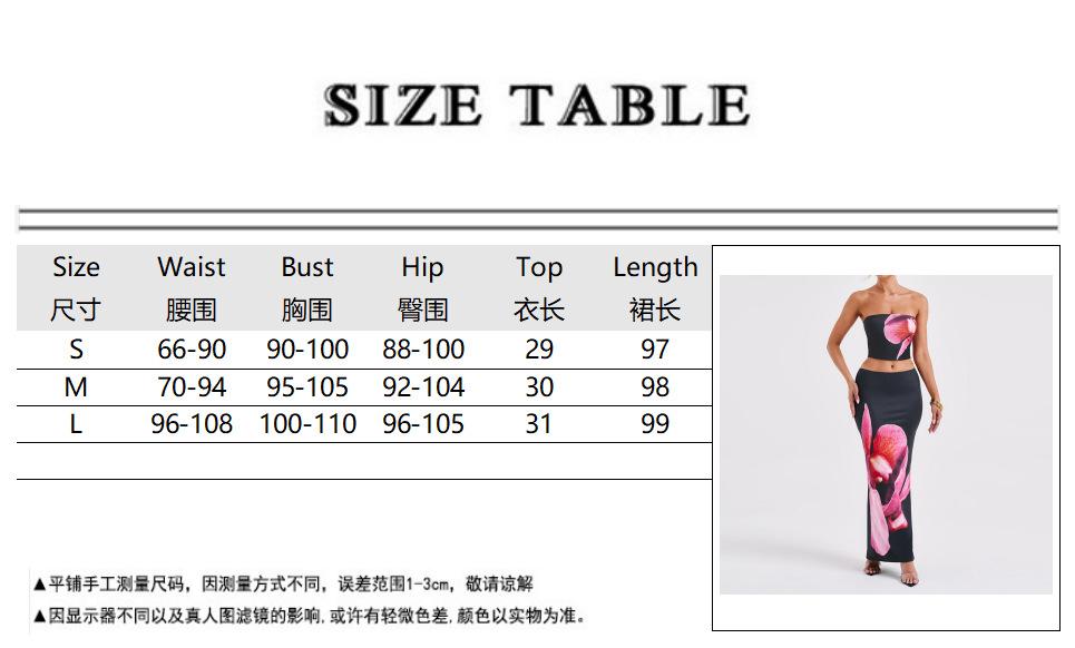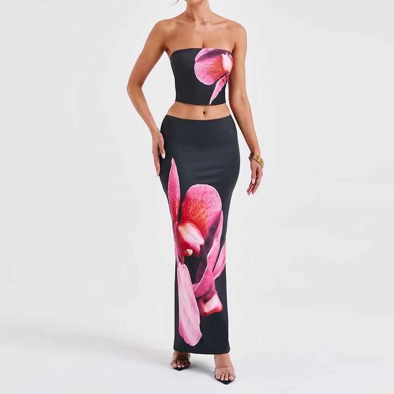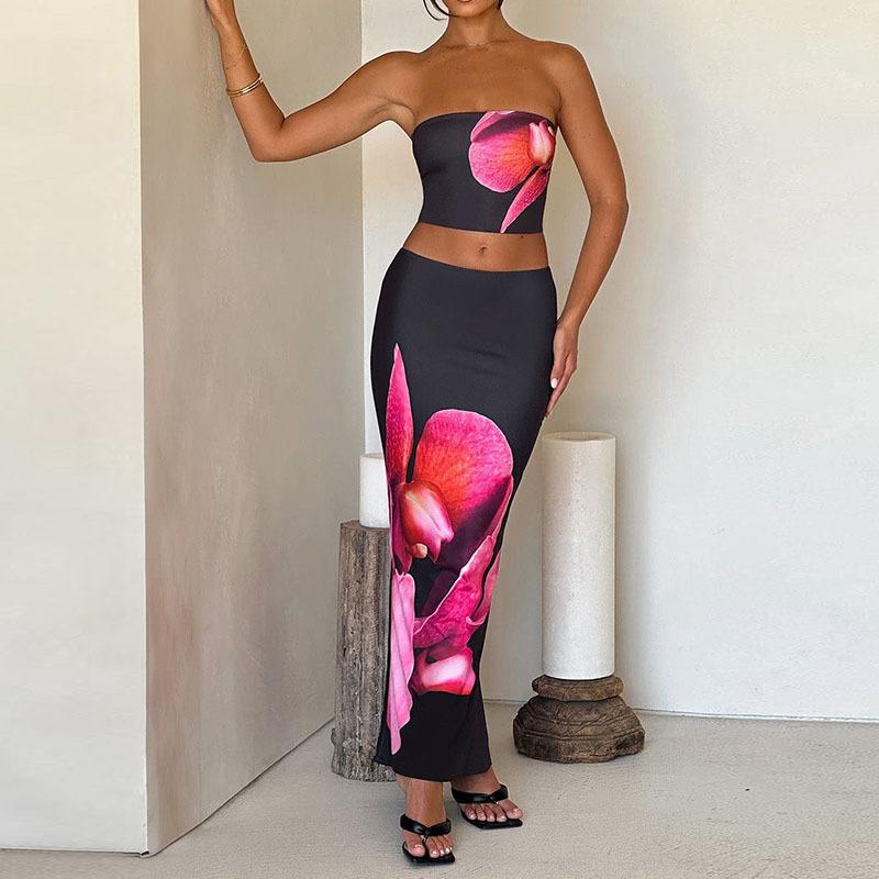 Ropa Nueva de Primavera y Verano para Mujer Transfronteriza Europea y Americana Estilo Ins Moda Top de Tubo Chaleco Estampado Traje de Falda Ajustada a la Cadera