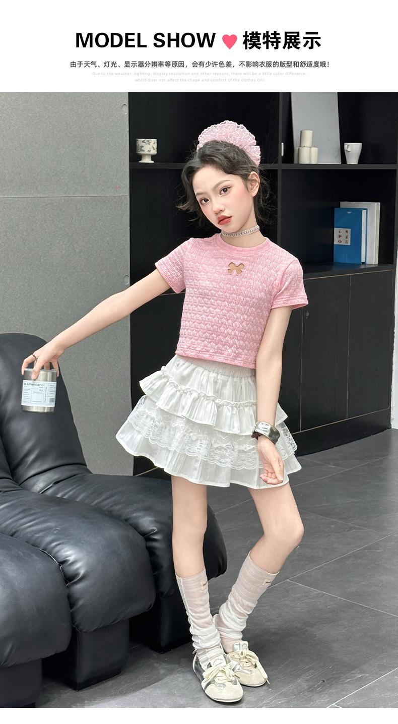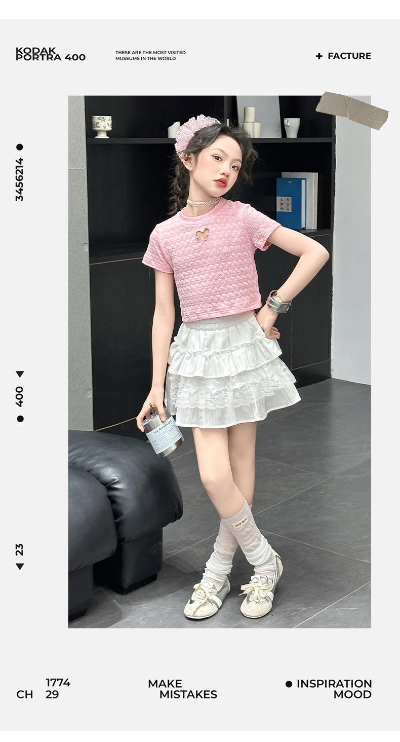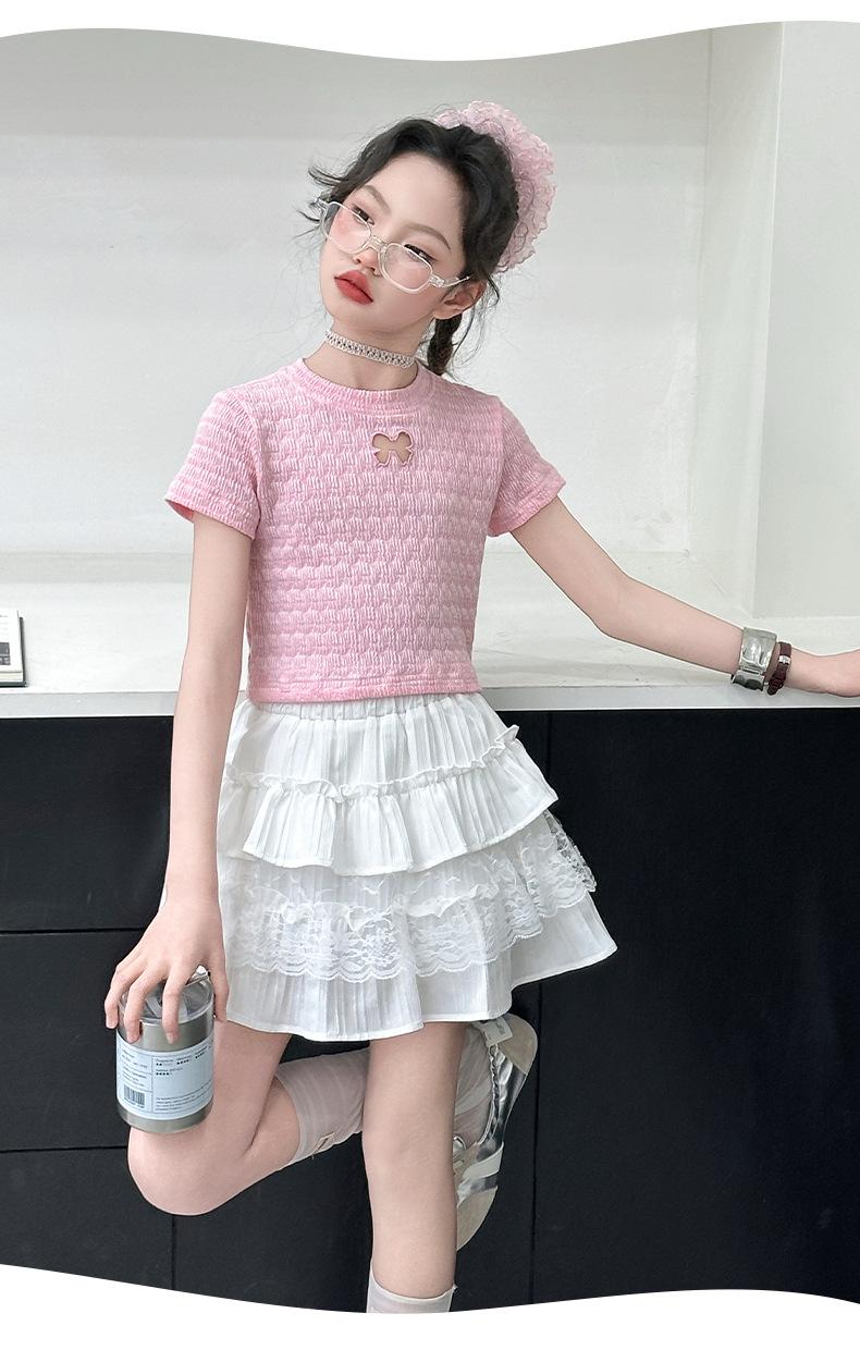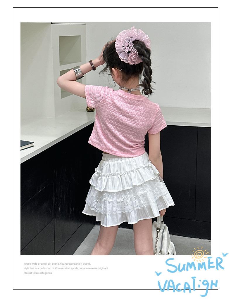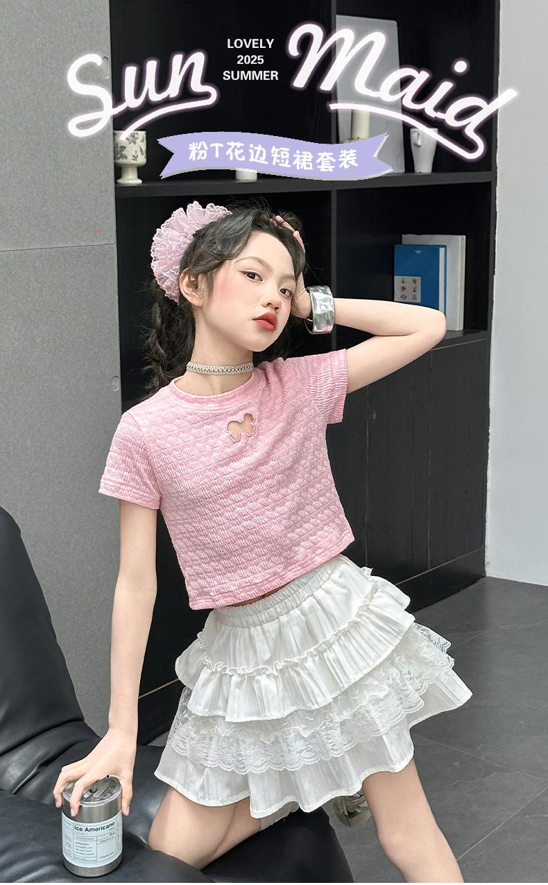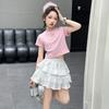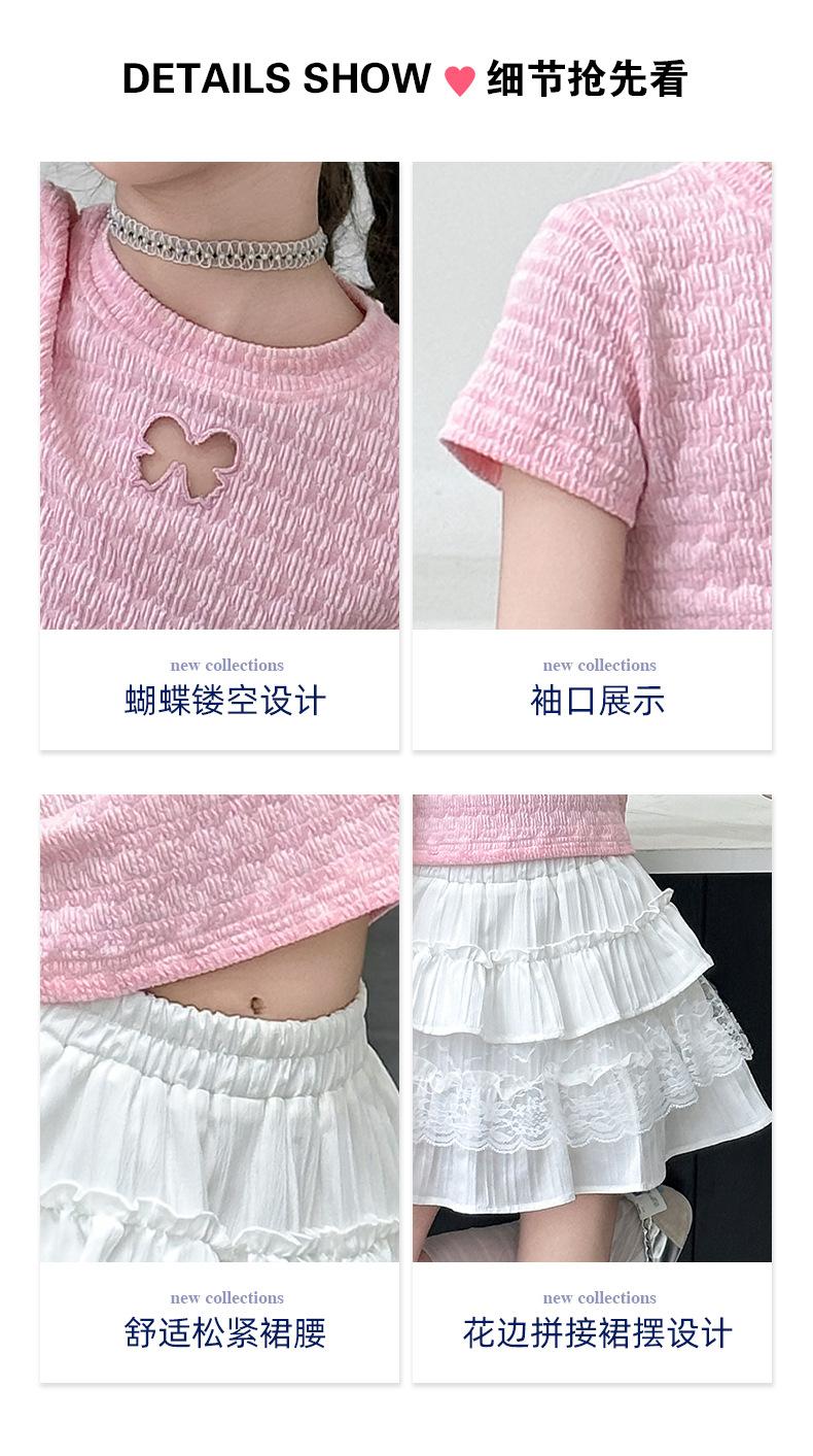 Traje de Verano para Niñas 2025 Nueva Moda Niña Estilo Coreano Estilo Infantil Mediano y Grande Traje de Falda de Encaje Tendencia Transfronteriza