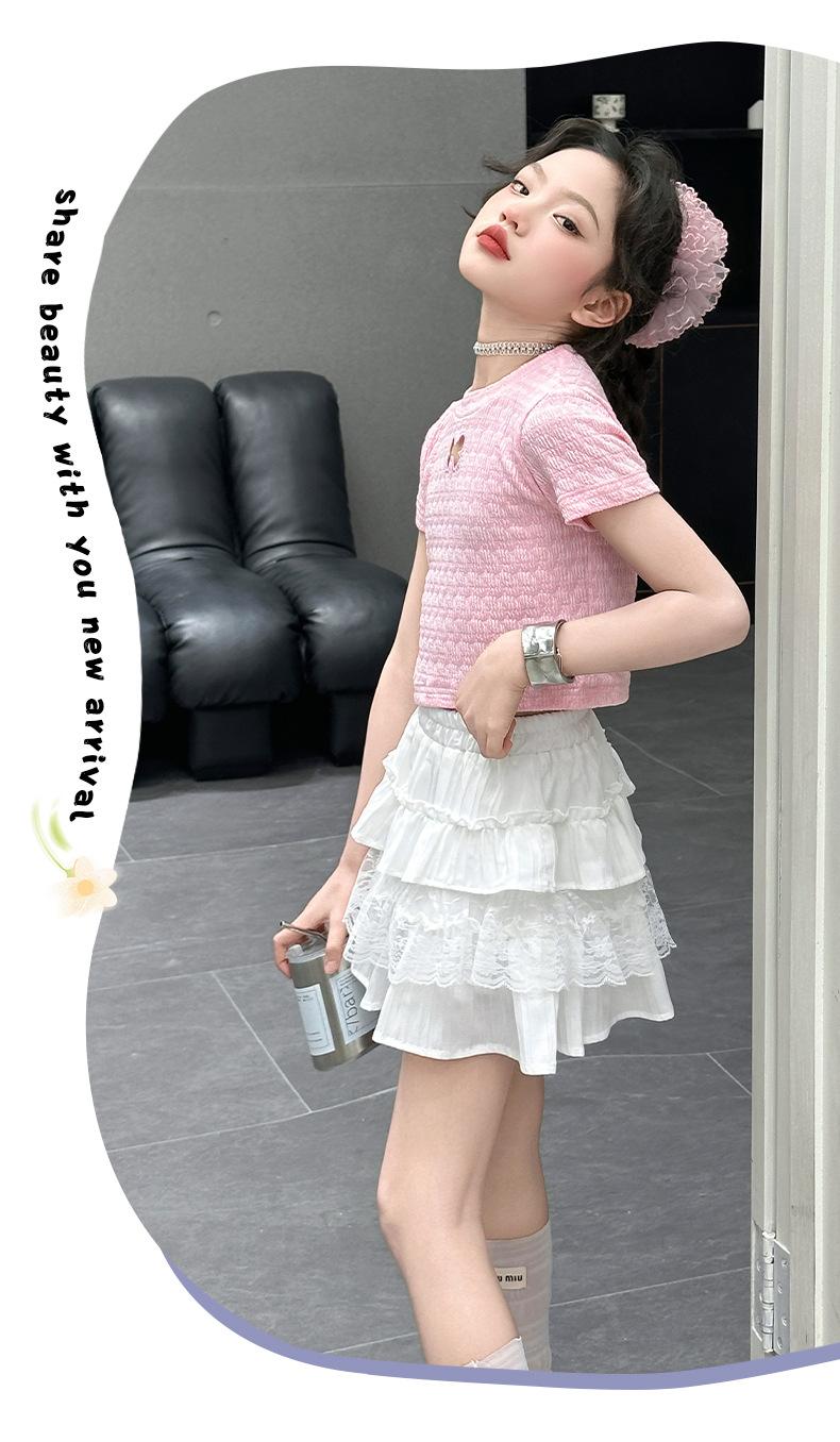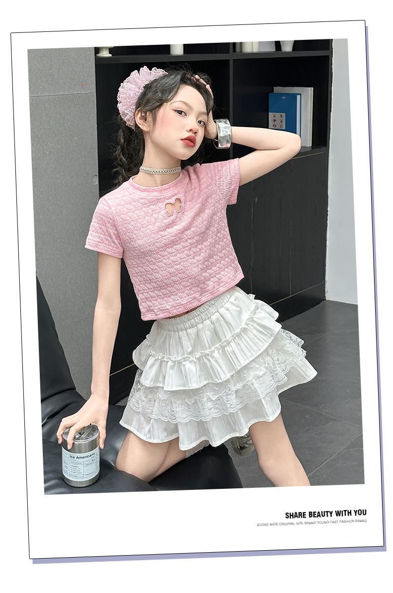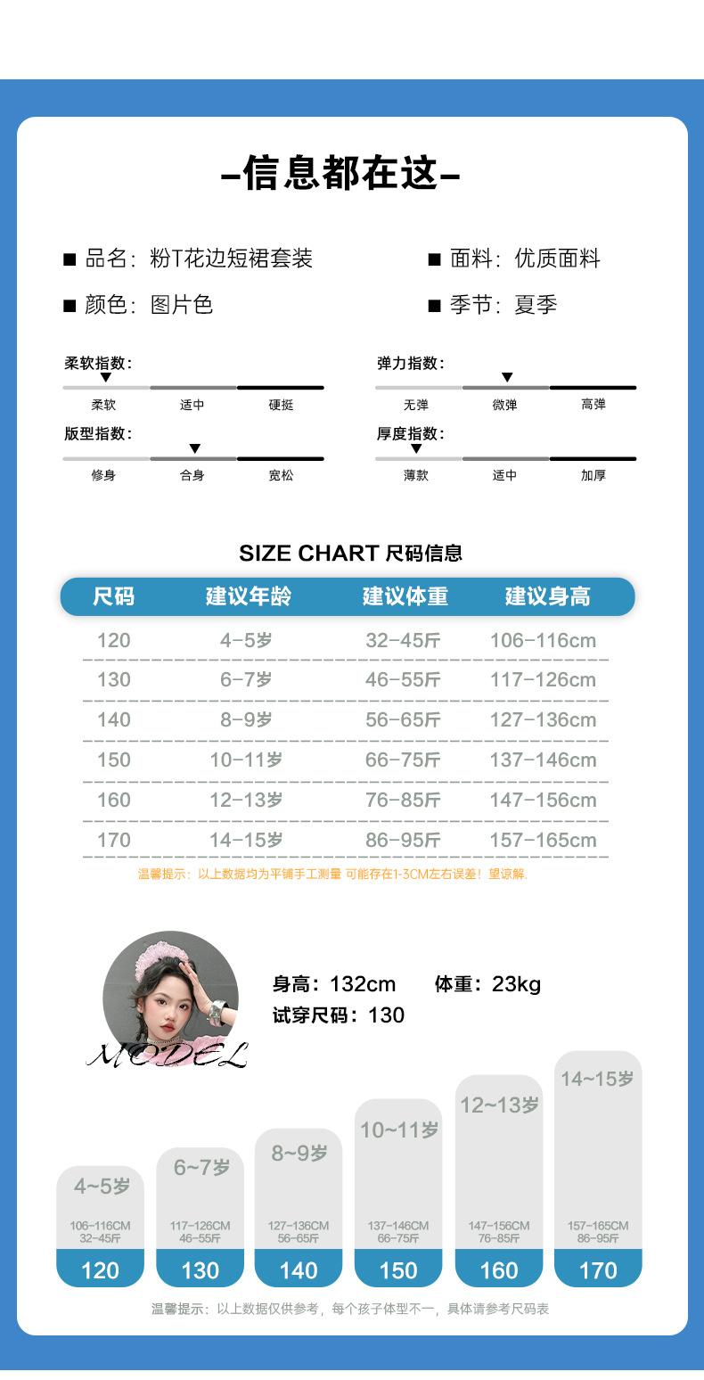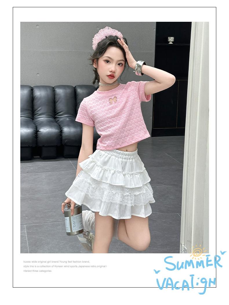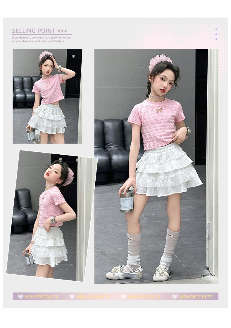 Traje de Verano para Niñas 2025 Nueva Moda Niña Estilo Coreano Estilo Infantil Mediano y Grande Traje de Falda de Encaje Tendencia Transfronteriza