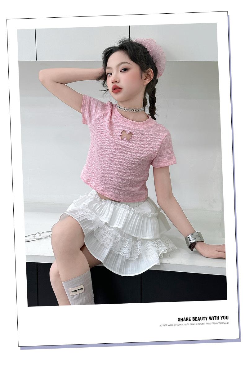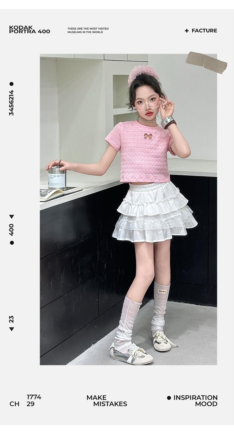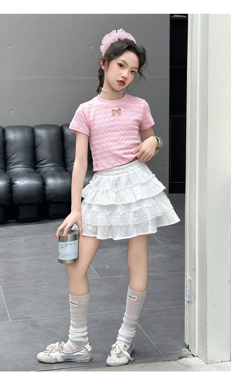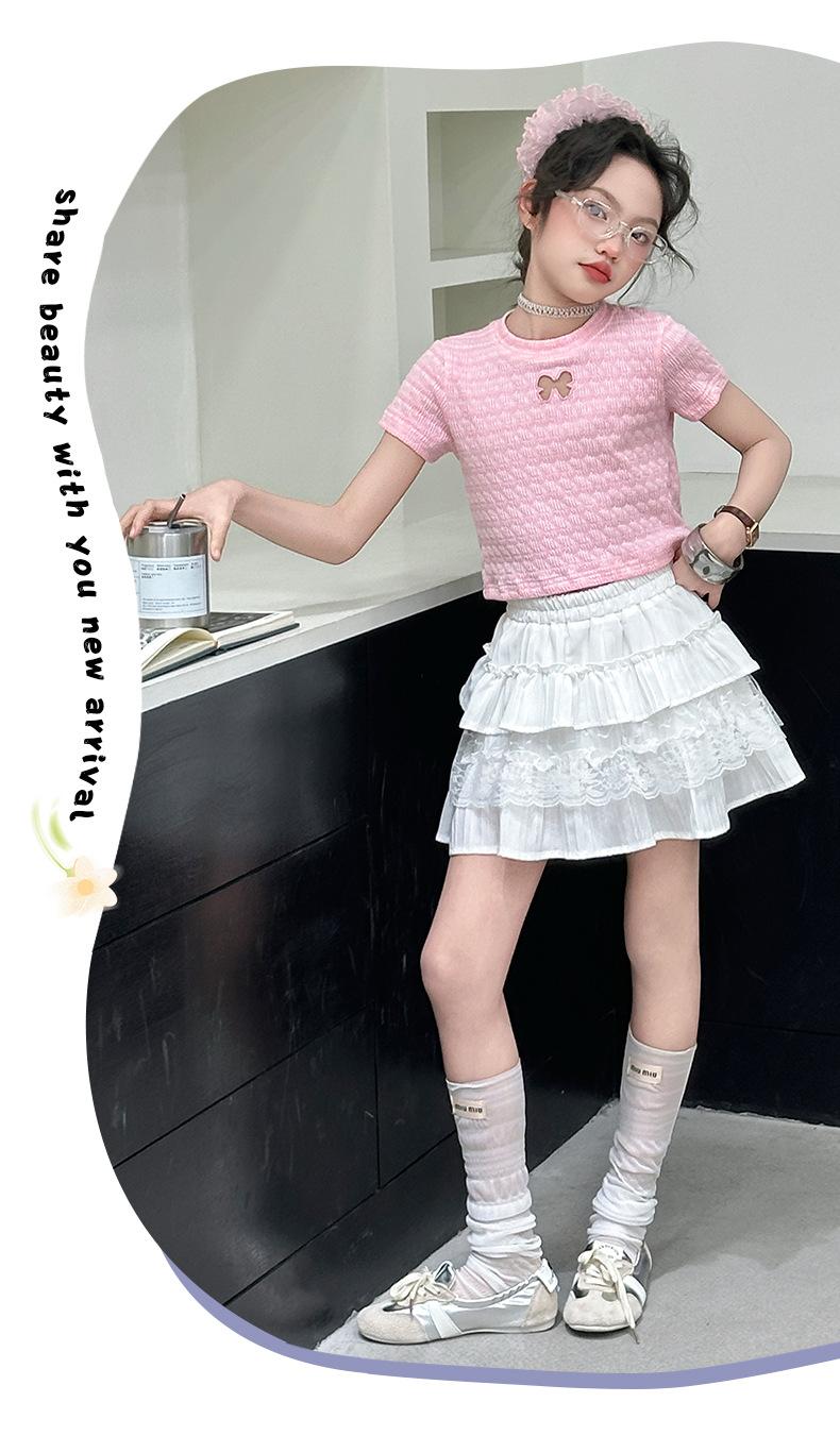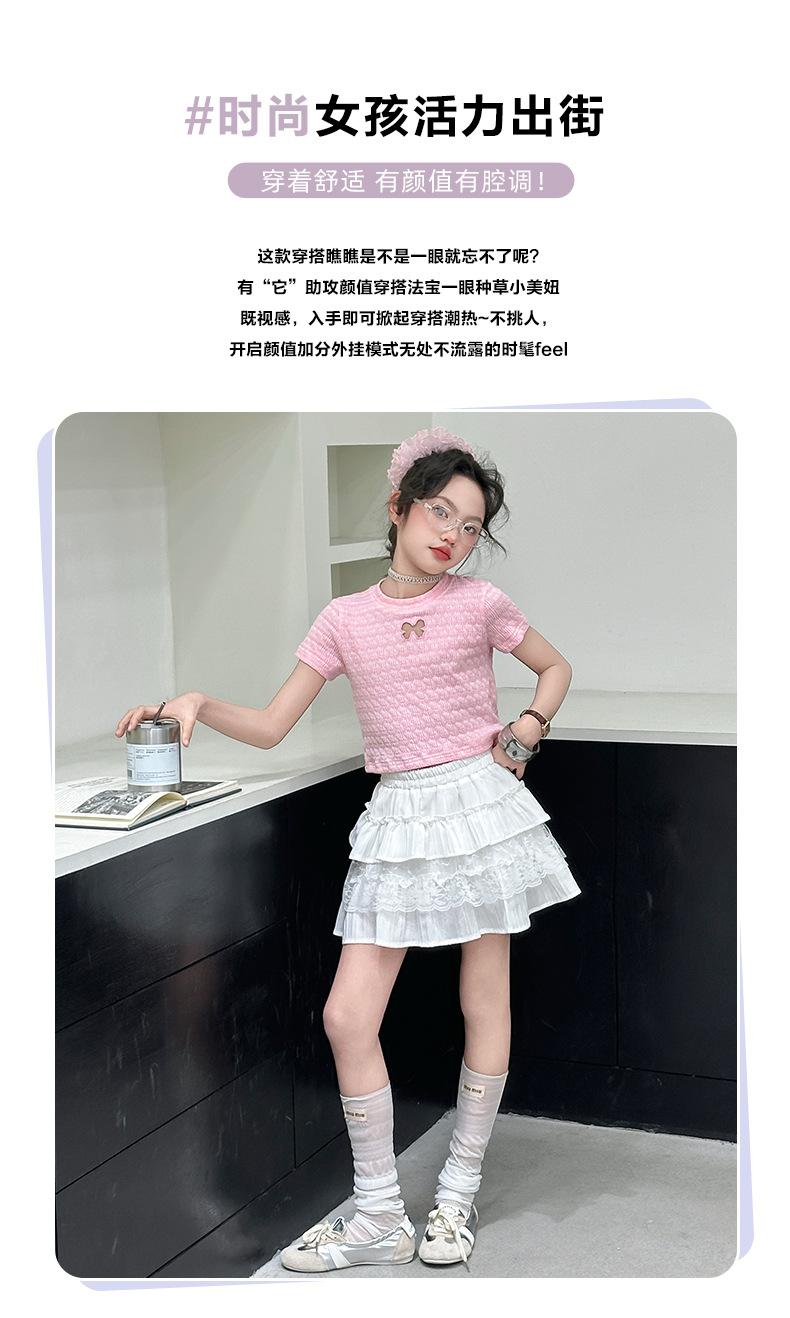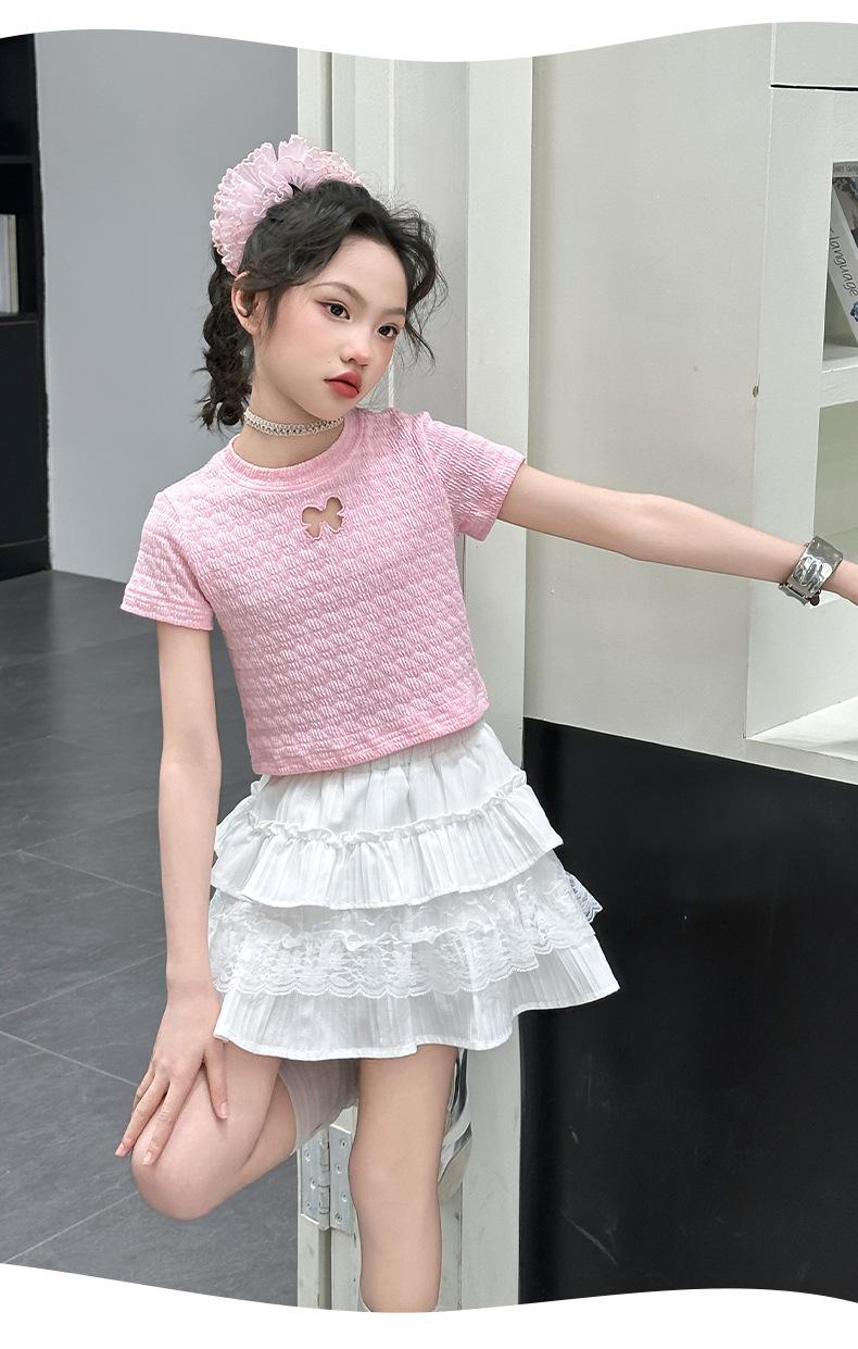 Traje de Verano para Niñas 2025 Nueva Moda Niña Estilo Coreano Estilo Infantil Mediano y Grande Traje de Falda de Encaje Tendencia Transfronteriza