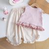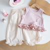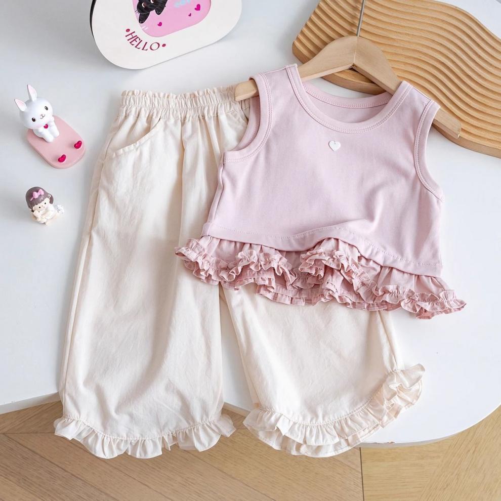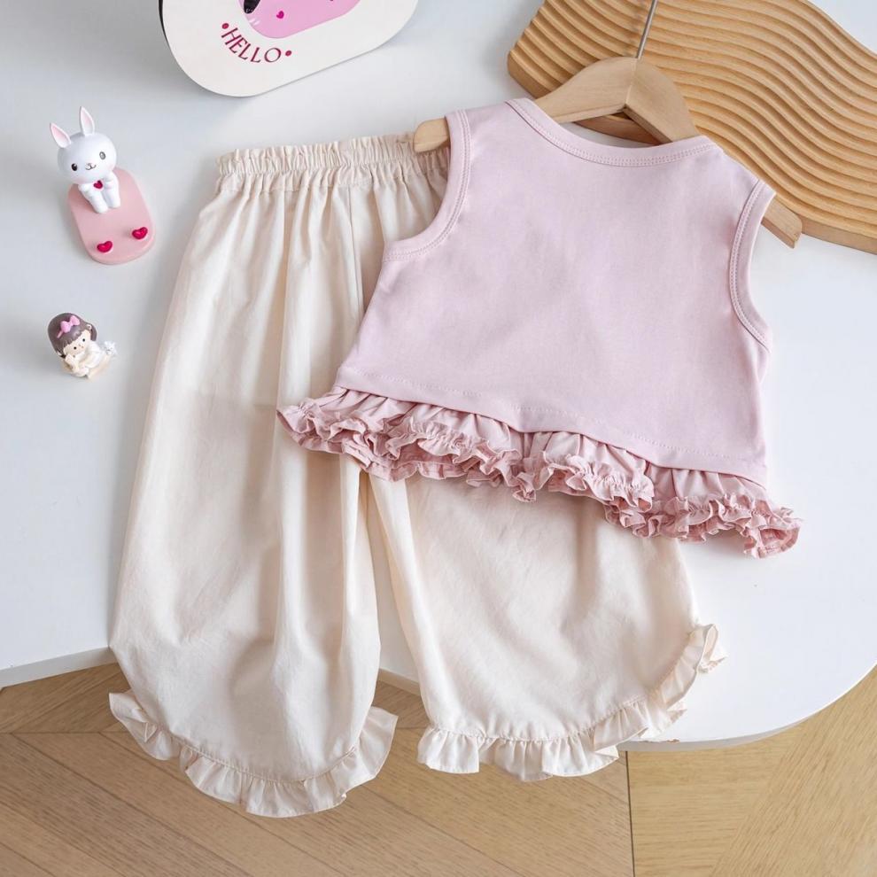 Traje de Verano para Niñas 2025 Estilo Occidental Moderno Conjunto de Dos Piezas Bebé Niña Estilo Coreano Nuevo Traje de Verano con Chaleco Traje Infantil