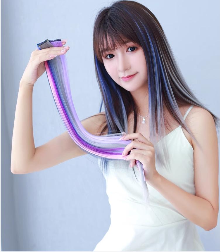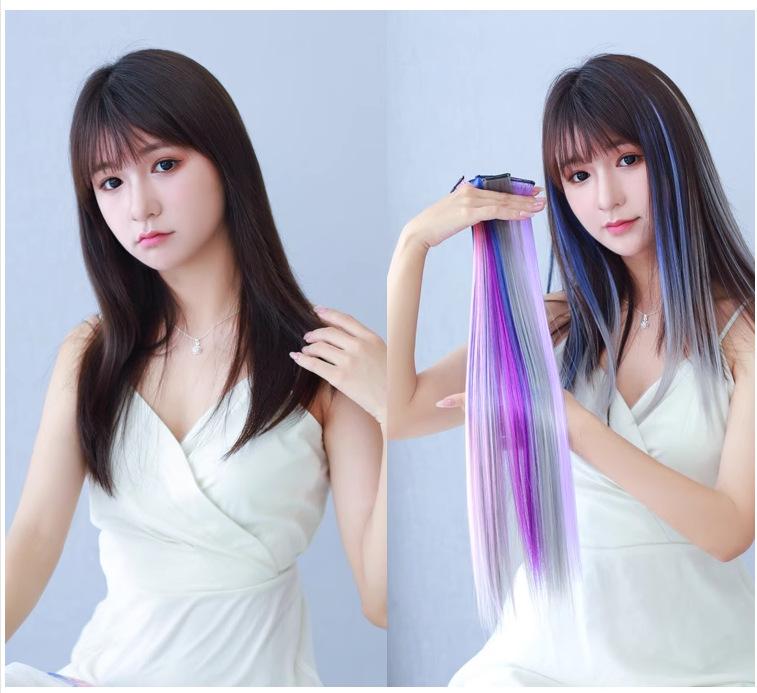 Compra Peluca de color cabello lacio clip único para colgar de la oreja teñido pieza de cabello largo lacio extensión de cabello sin cabello simulación en casa al por mayor en Joom.pro