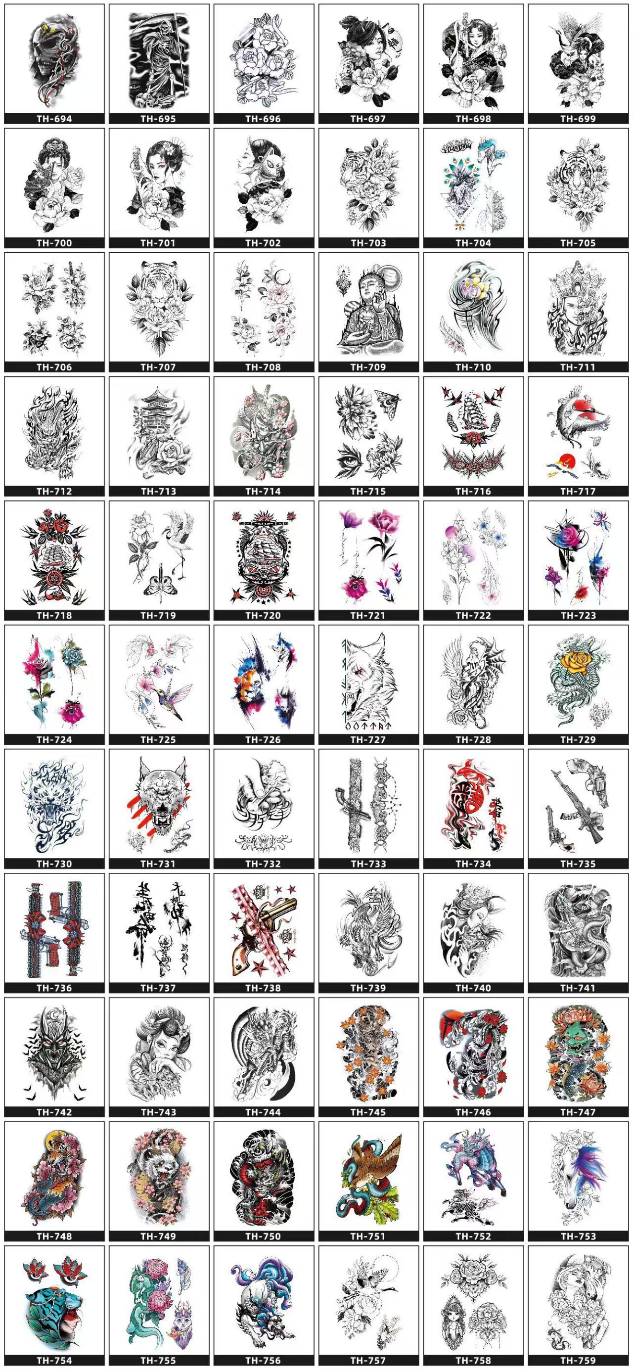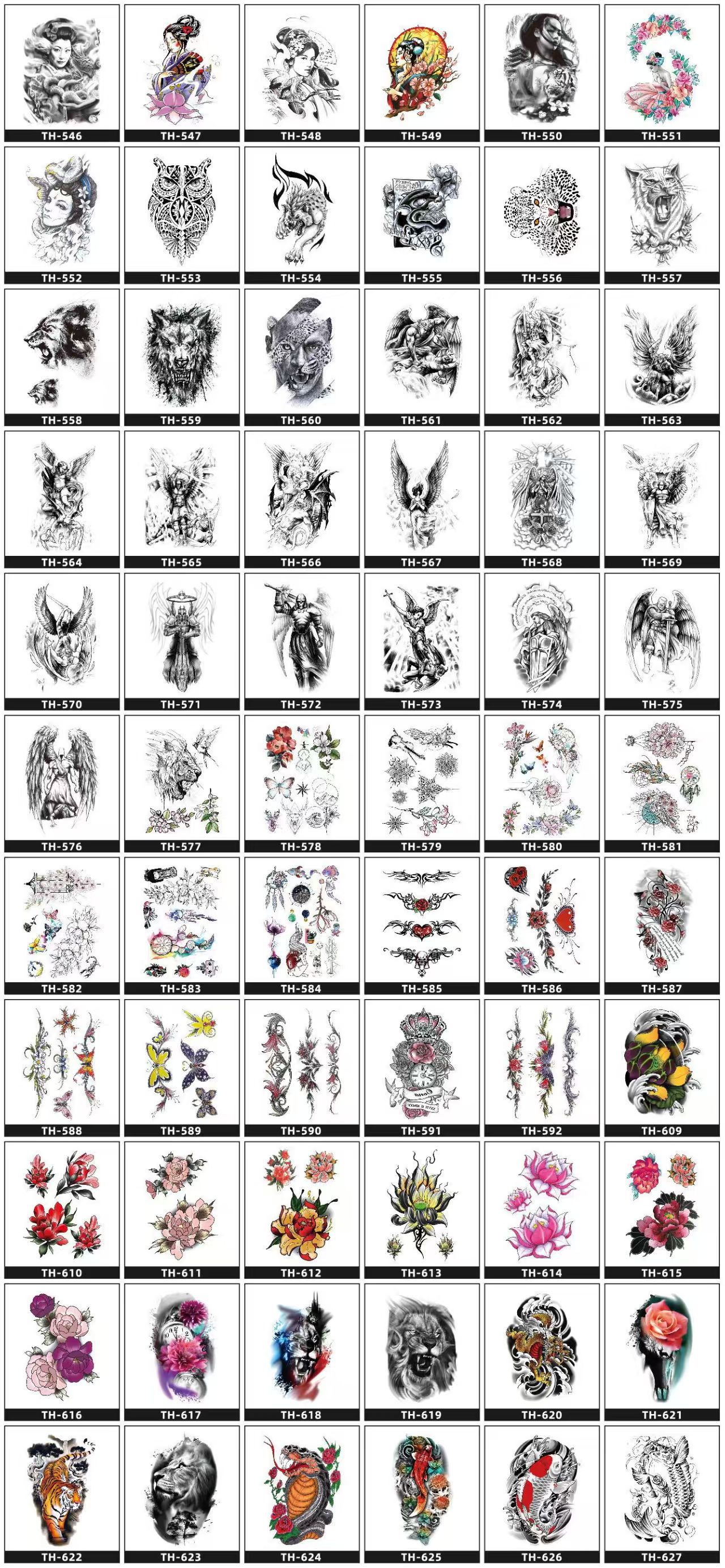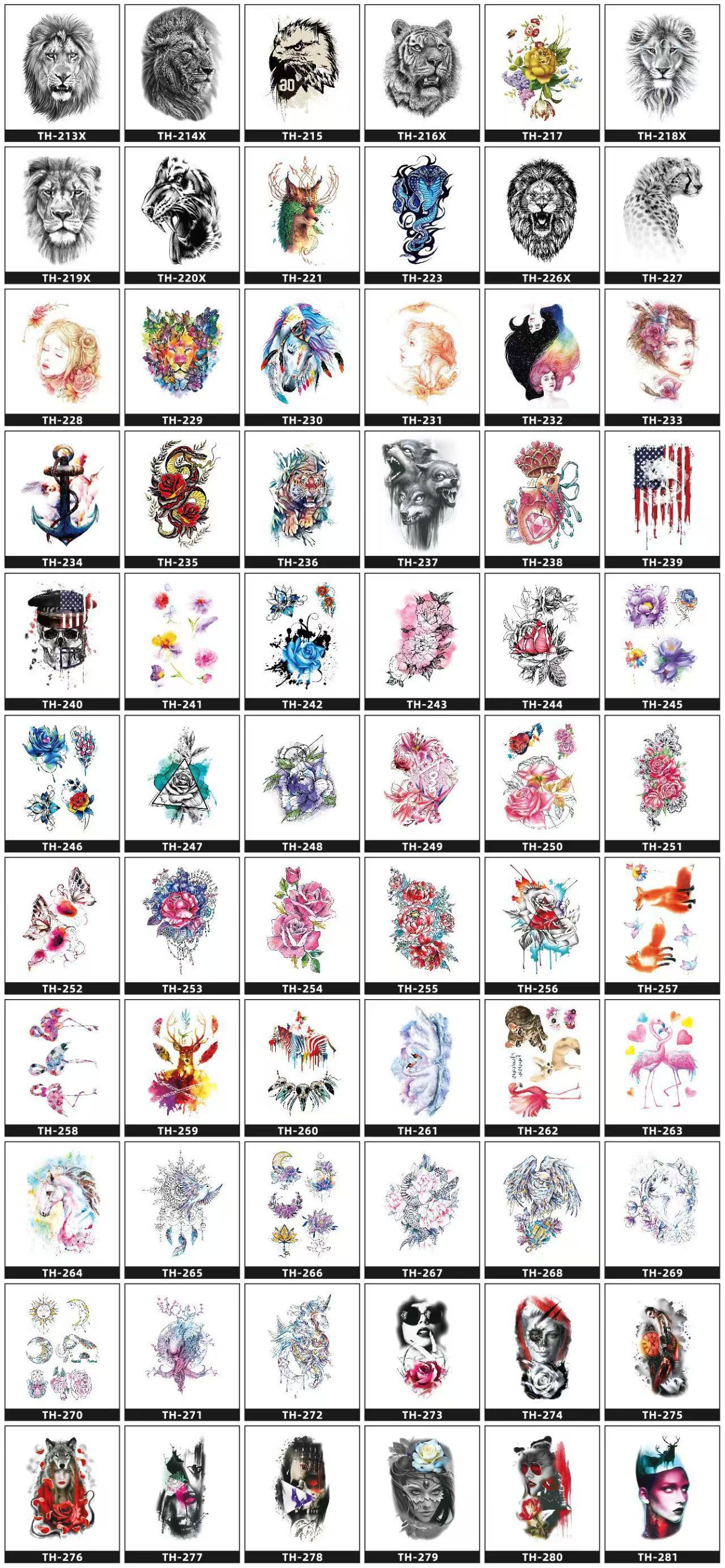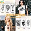 Nuevo Animal Tigre Flor Brazo Tatuaje Pegatina Impermeable Media Manga Simulación Color Blanco y Negro Pegatina de Tatuaje Exclusivo Transfronterizo