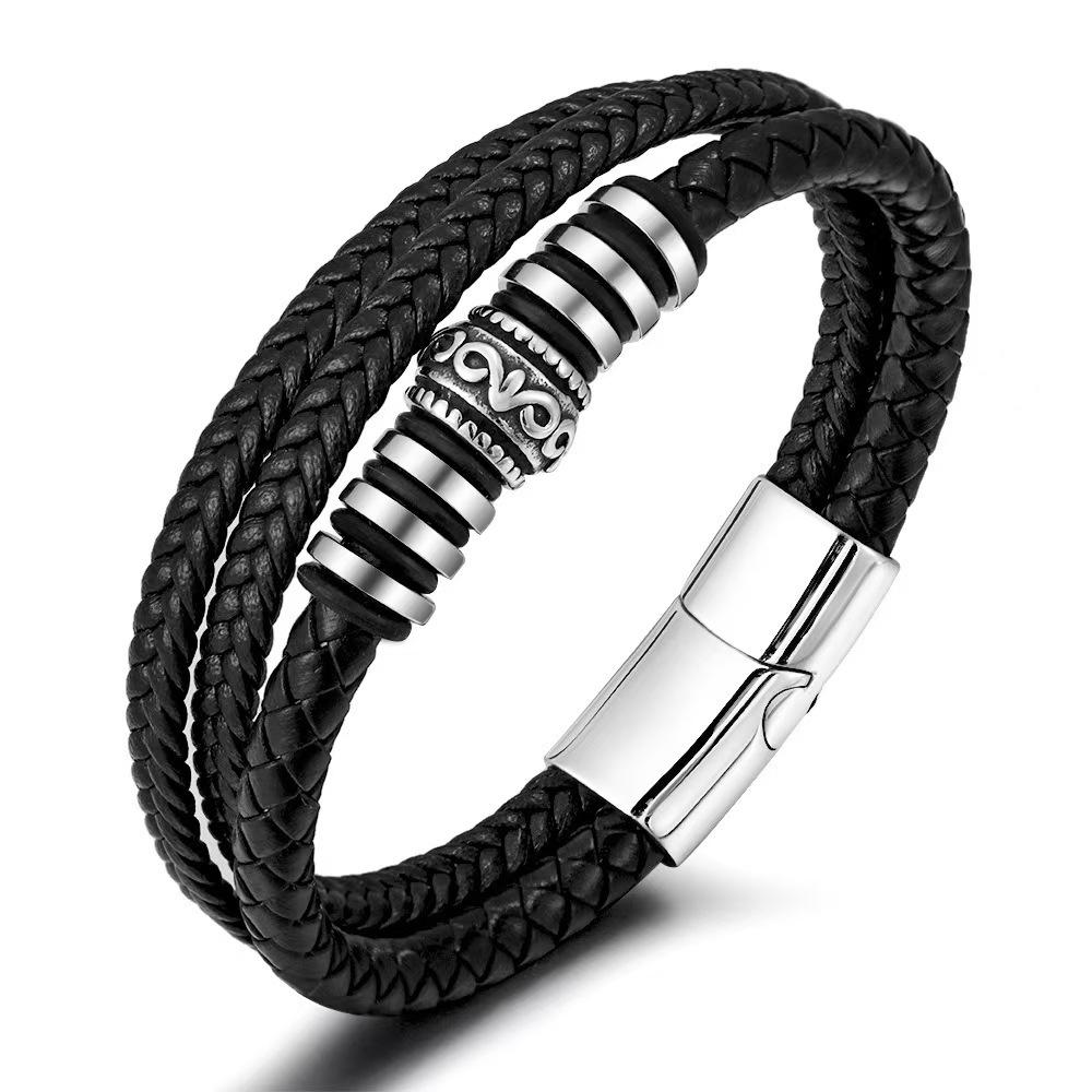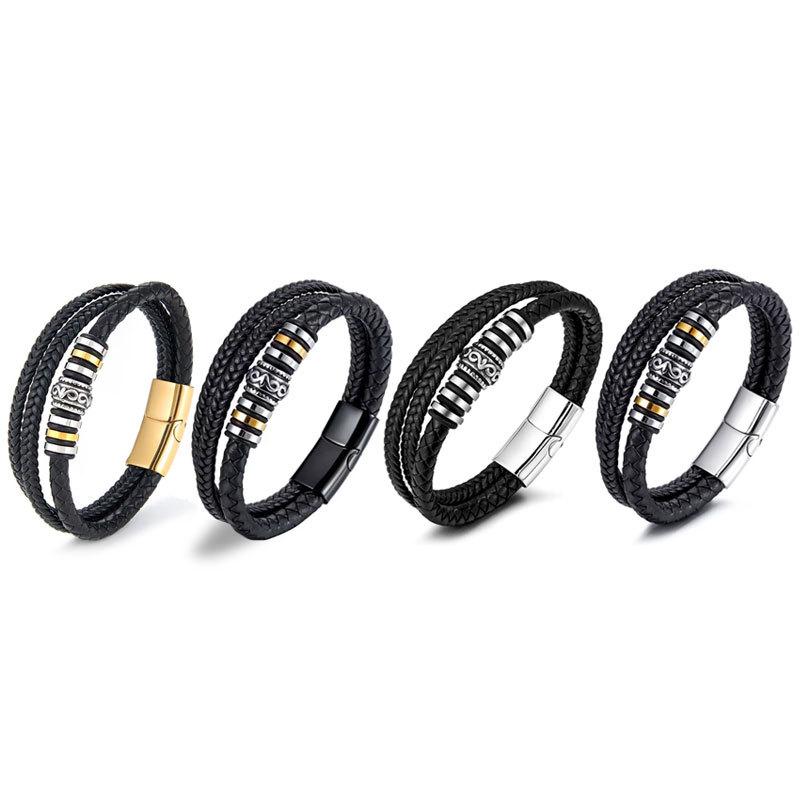 Pulsera Europea y Americana Transfronteriza de Cuero Trenzado para Hombre Estilo Hip Hop Punk Brazalete Trendy Cool PersonalidadSuministro al por mayor de joyas