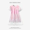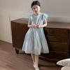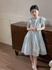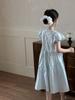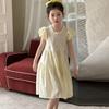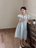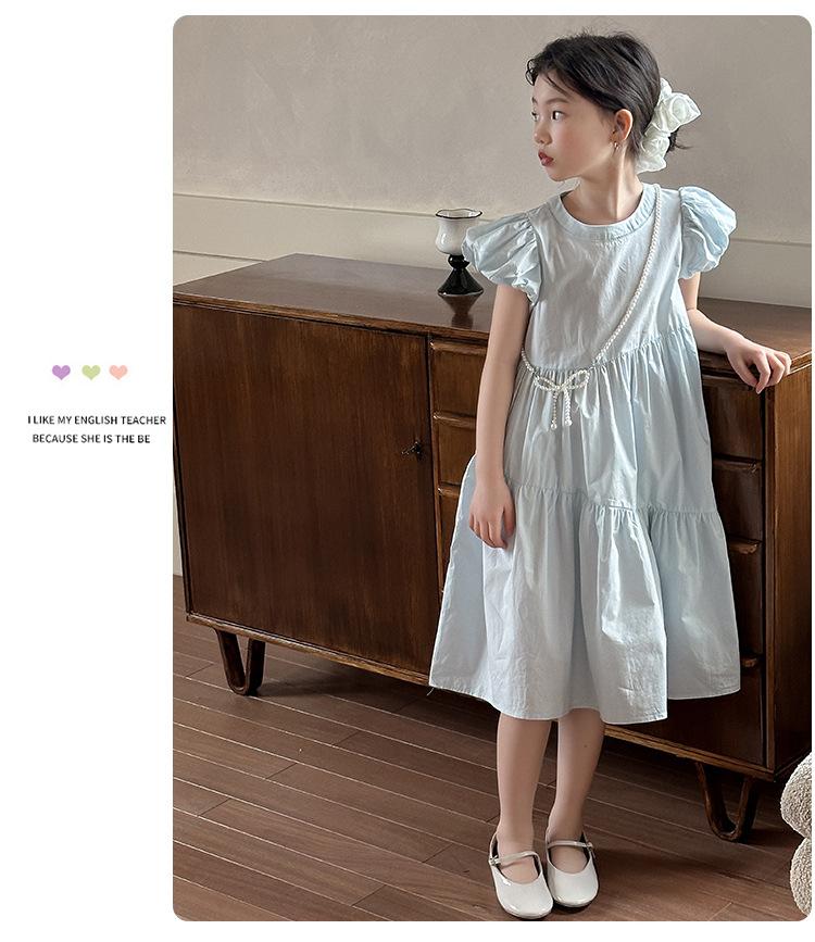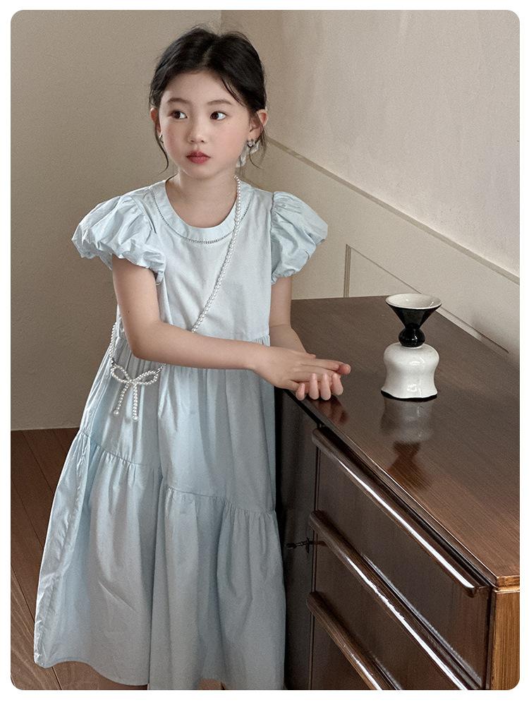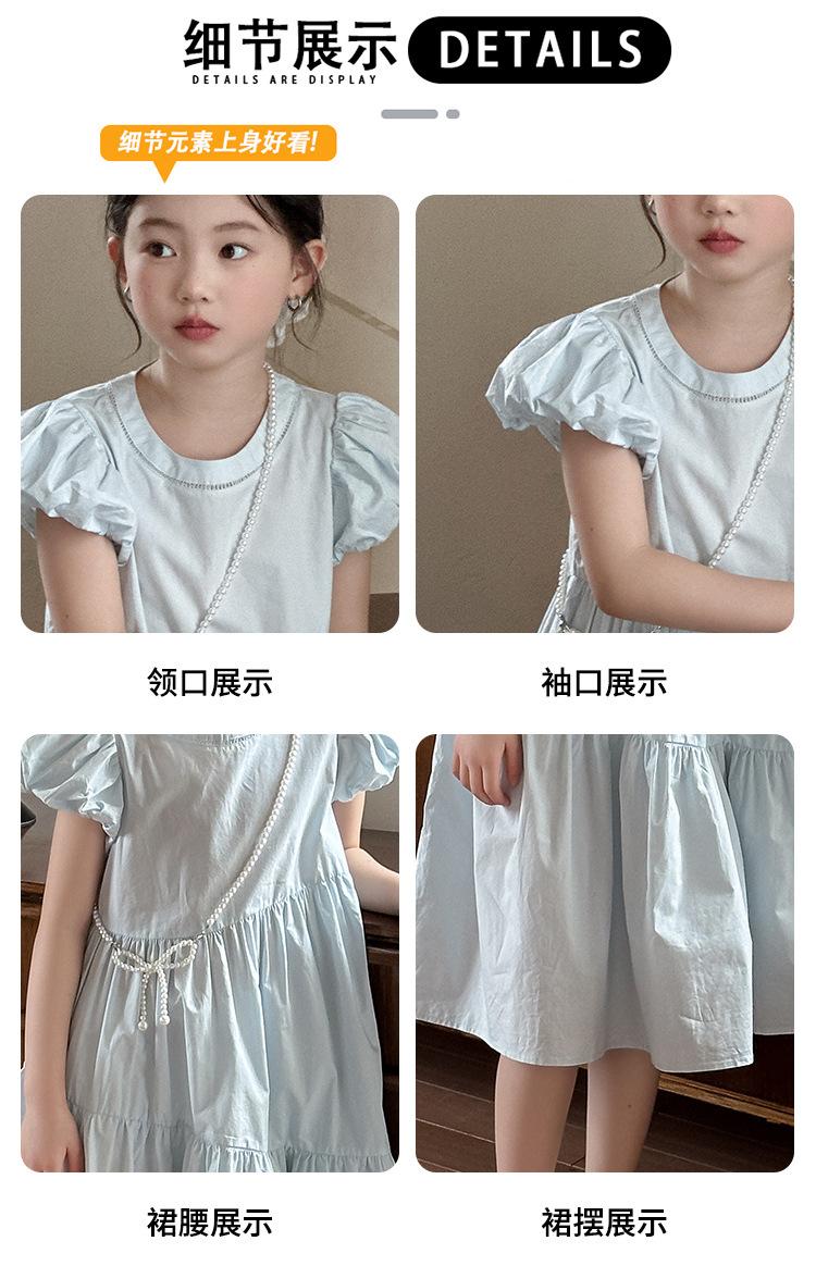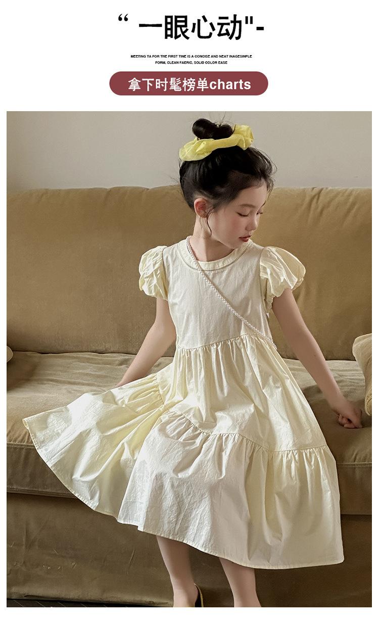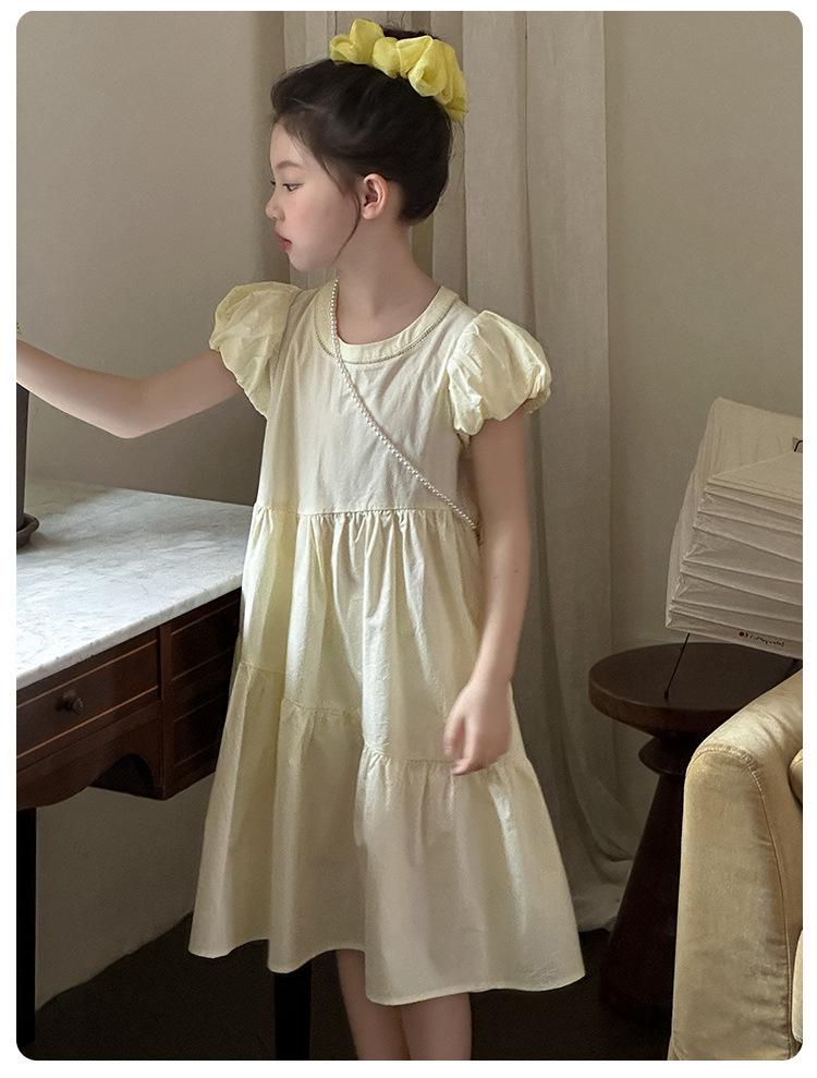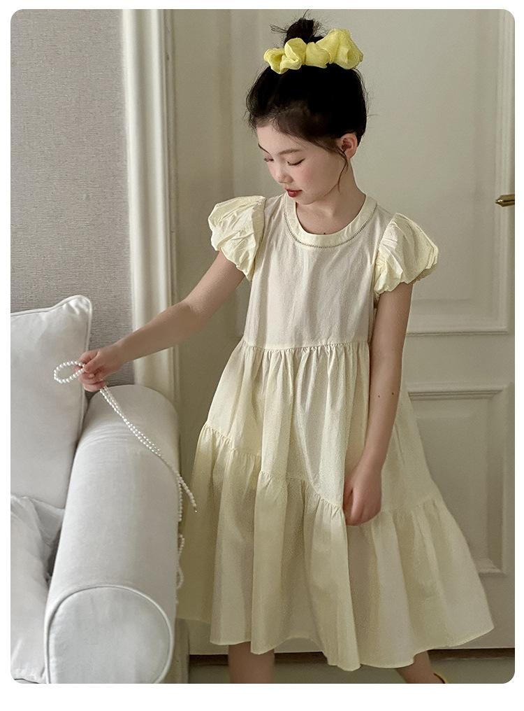 Vestido de Niña 2025 Verano Nuevo Estilo de Moda Falda de Manga Abullonada Falda de Algodón Niños Medianos y Grandes Vestido de Princesa para Niñas