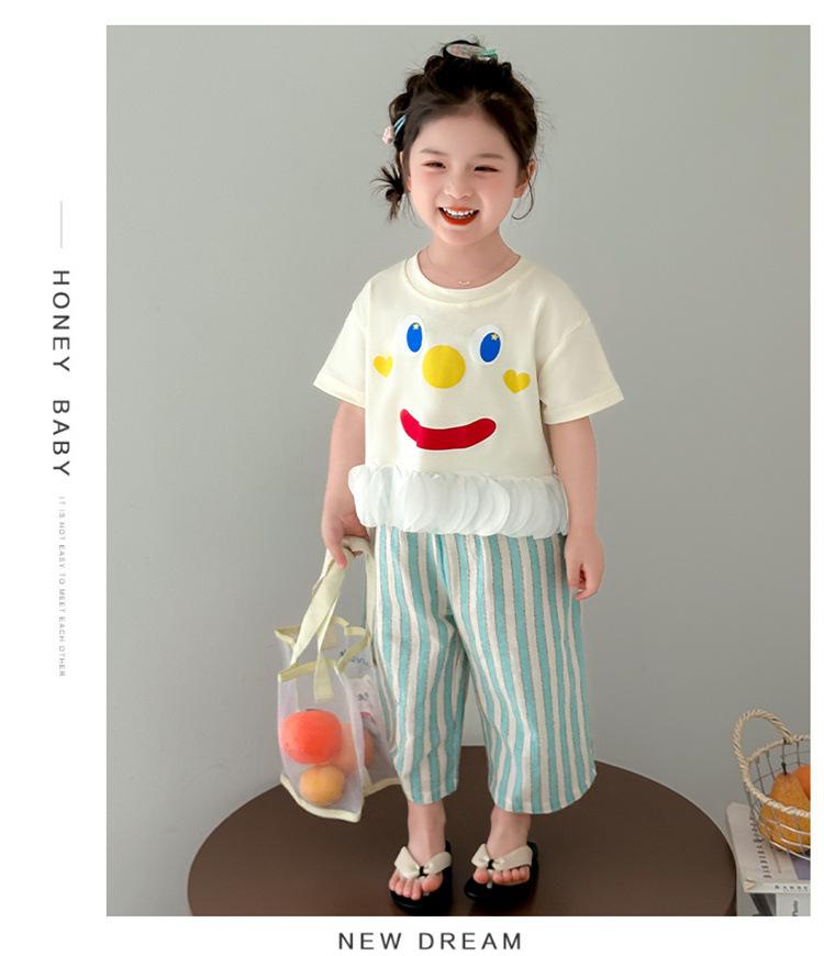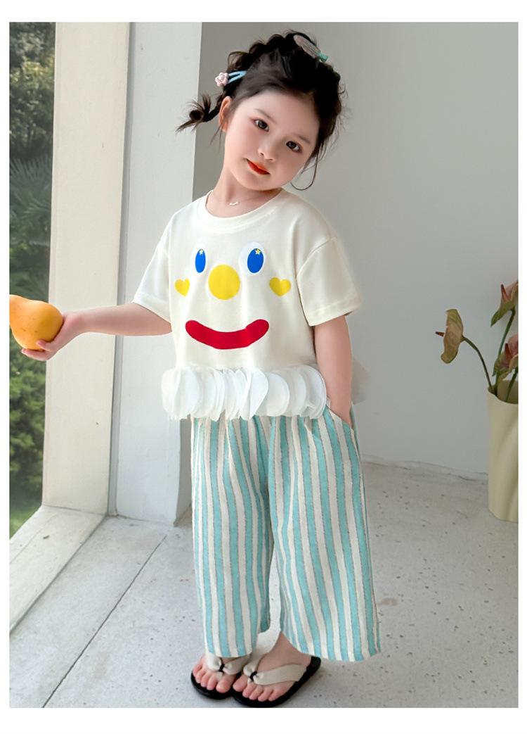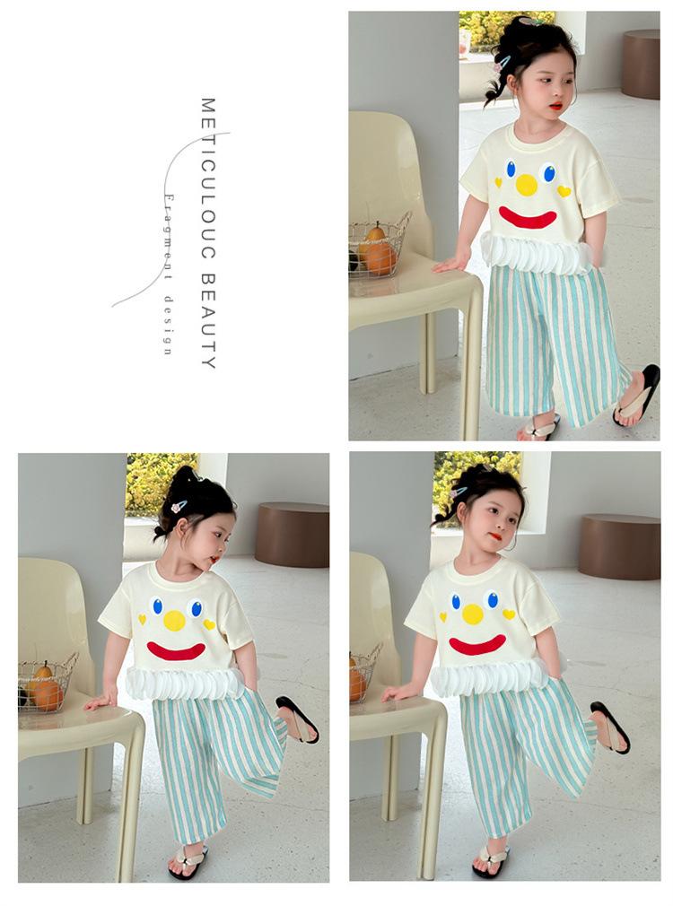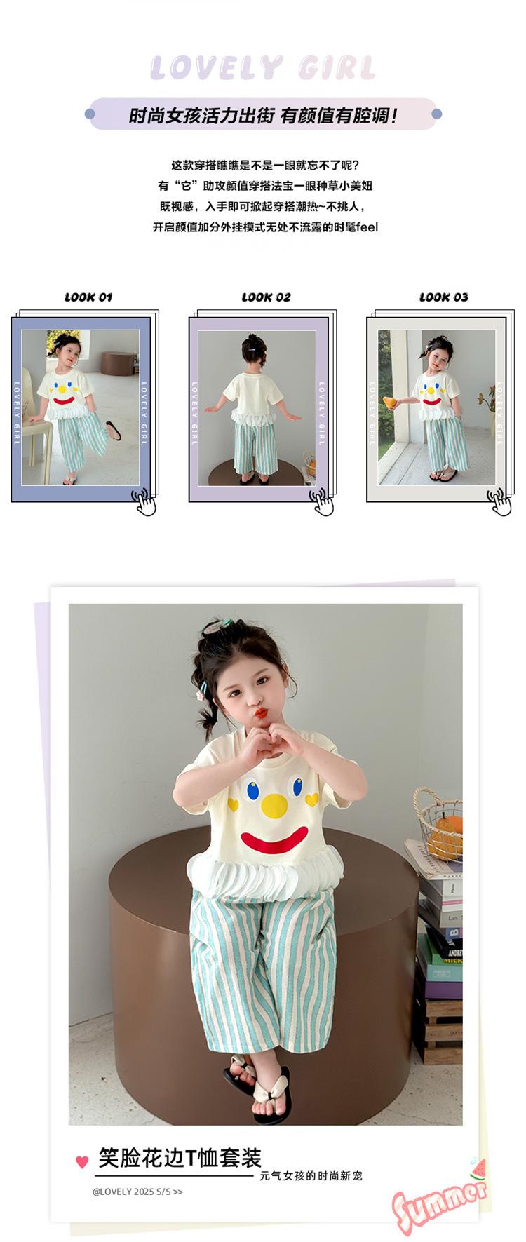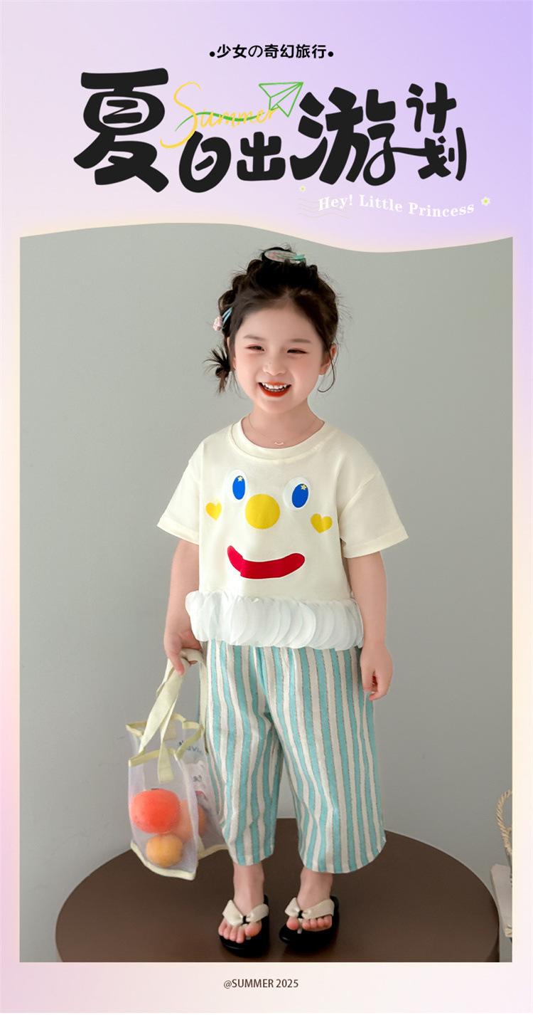 Traje de Verano para Niñas 2025 Nuevo Estilo Camiseta de Manga Corta a la Moda para Niños Pantalones de Verano para Bebé Conjunto de Dos Piezas t