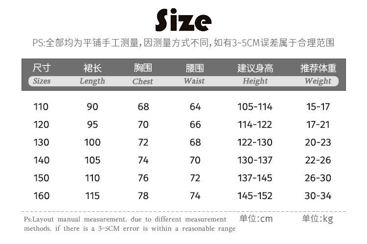 110cm, 120cm, 130cm, 140cm, 150cm, 160cm