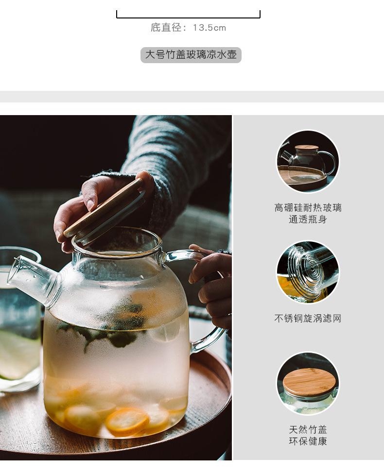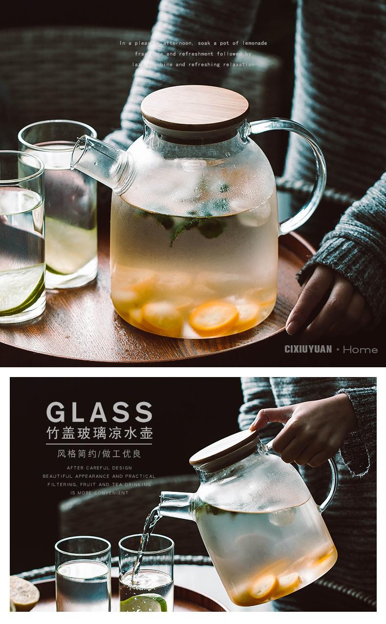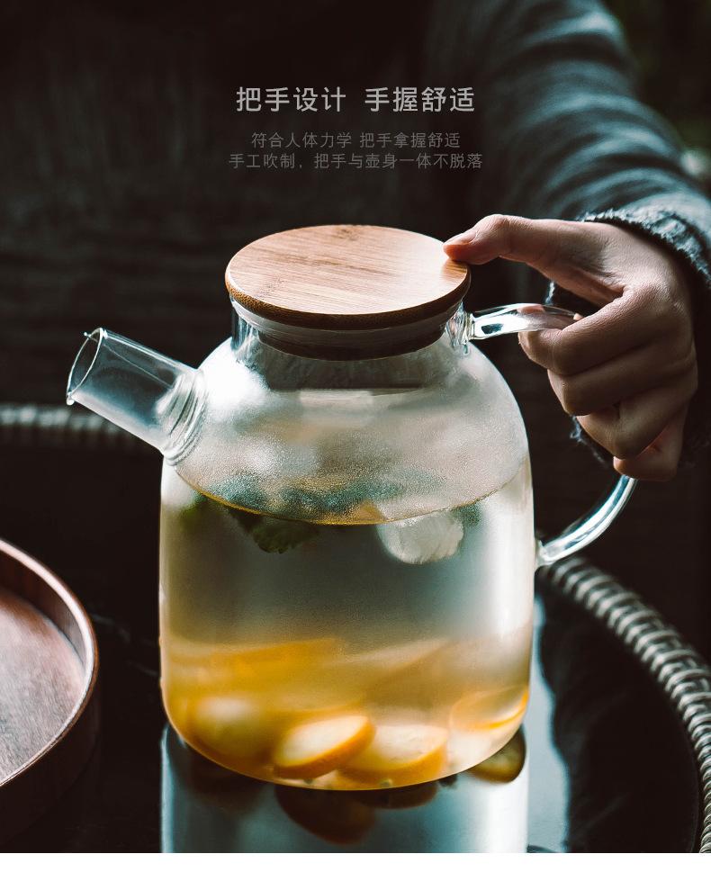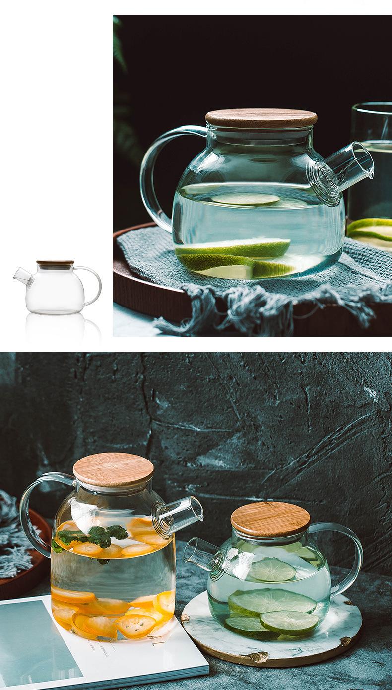 Compra Hogar Jarra de Agua Fría de Vidrio de Gran Capacidad Resistente a Altas Temperaturas Vidrio de Alto Borosilicato Calentamiento a Llama Abierta Té Aromático Tapa de Bambú Tetera al por mayor en Joom.pro