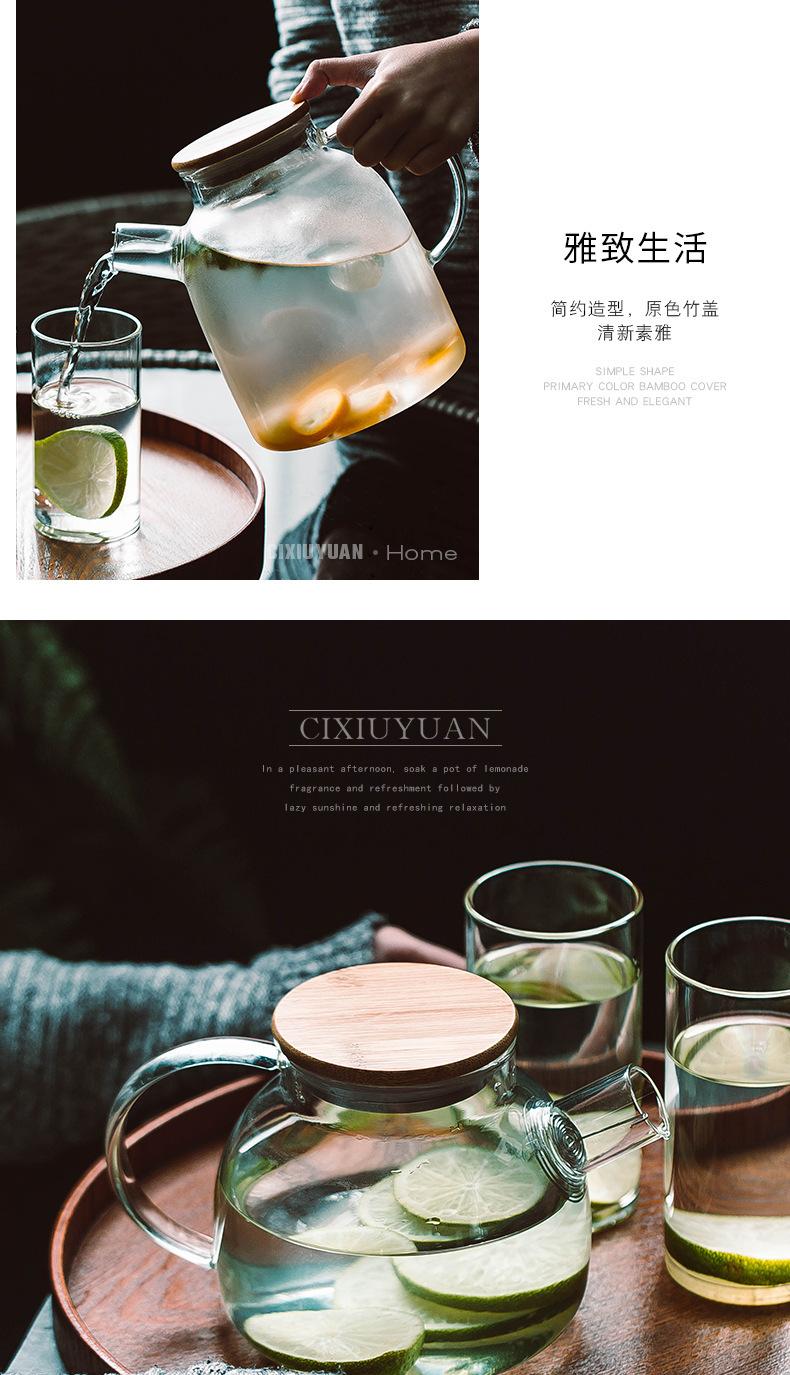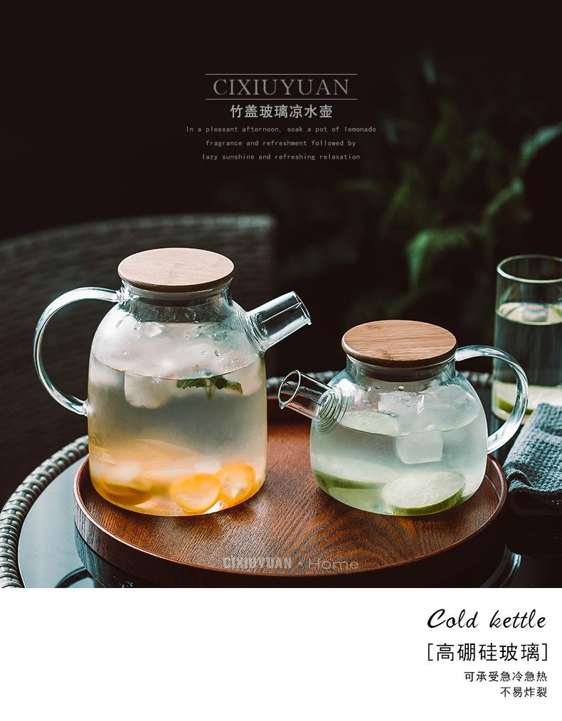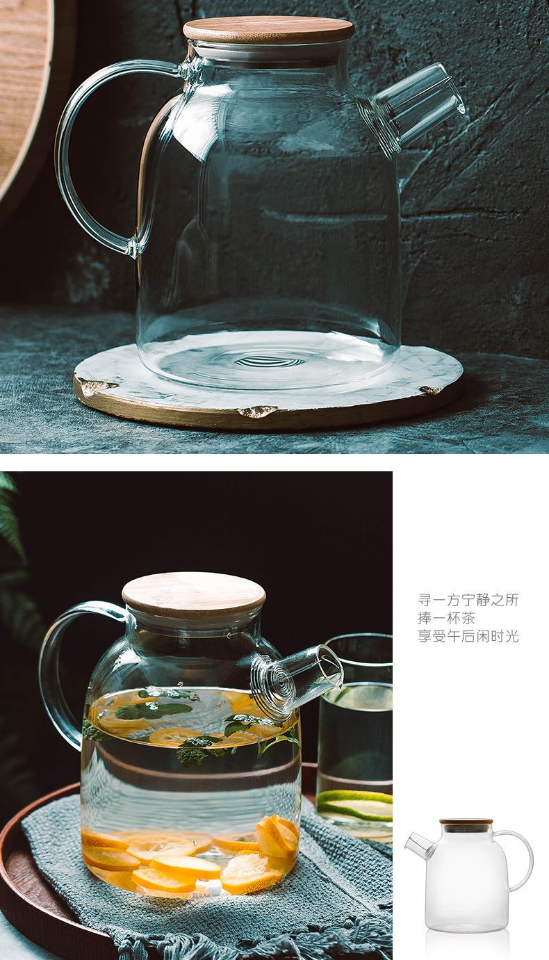 Compra Hogar Jarra de Agua Fría de Vidrio de Gran Capacidad Resistente a Altas Temperaturas Vidrio de Alto Borosilicato Calentamiento a Llama Abierta Té Aromático Tapa de Bambú Tetera al por mayor en Joom.pro