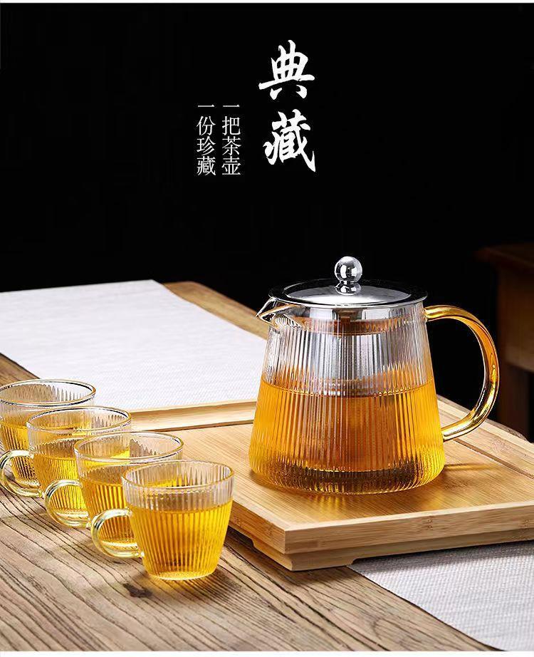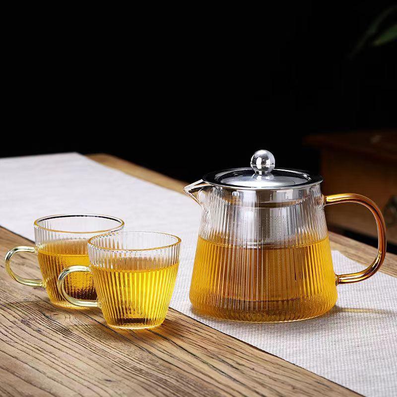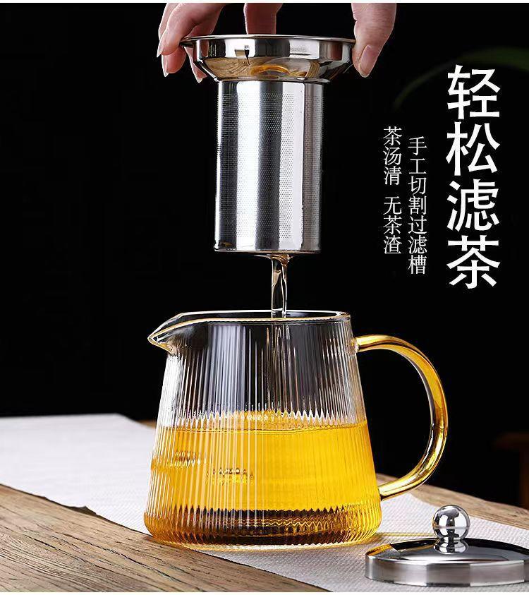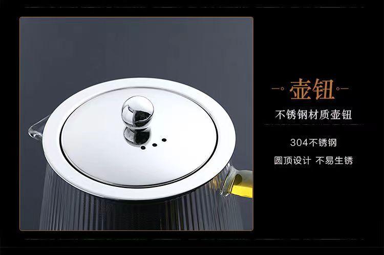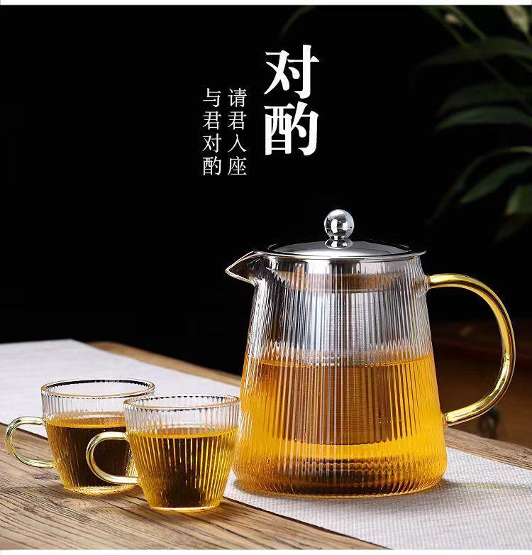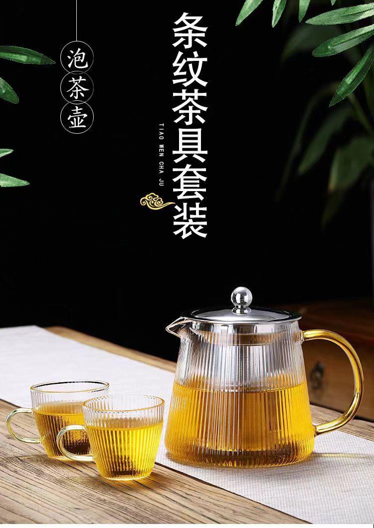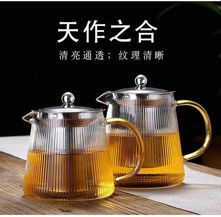 Tetera de vidrio de borosilicato grueso de alta resistencia a altas temperaturas, tetera de acero con fugas, tetera rayada con filtro, juego de té para el hogar