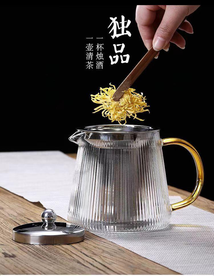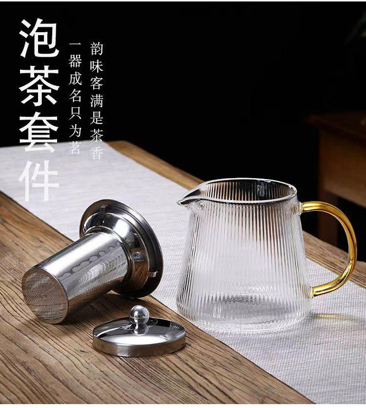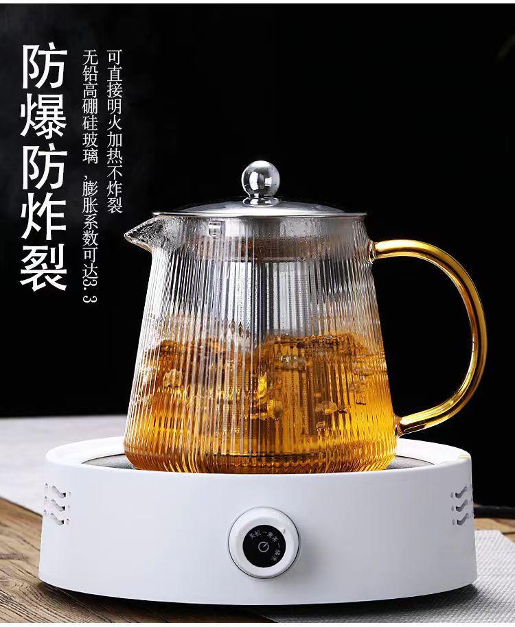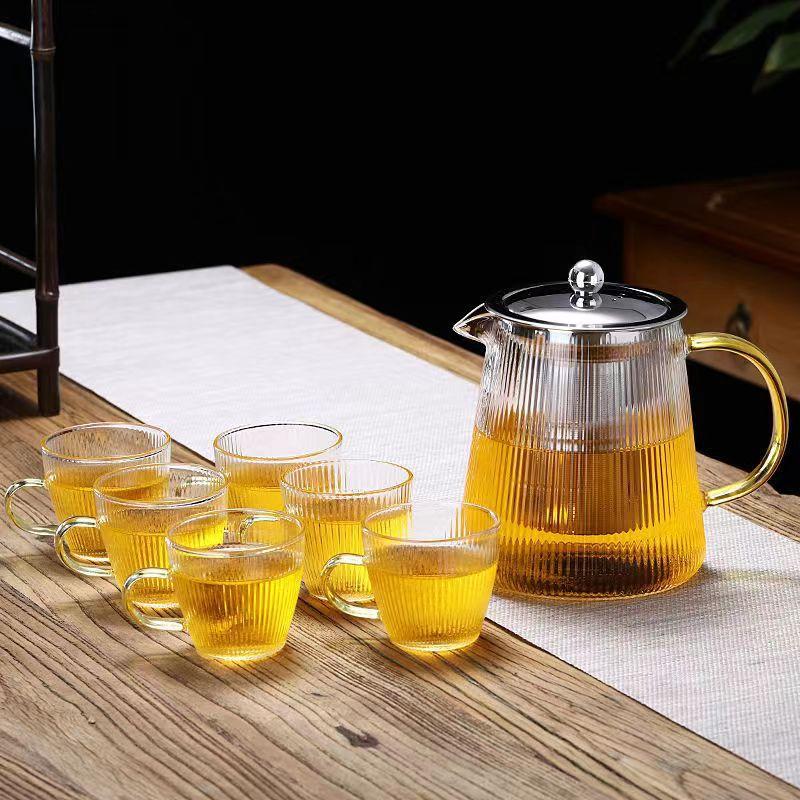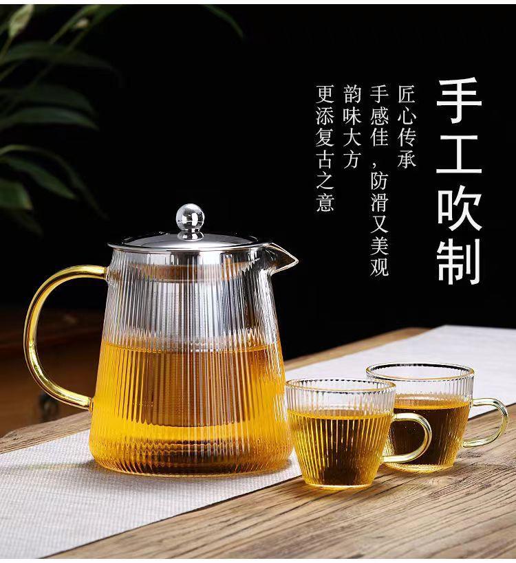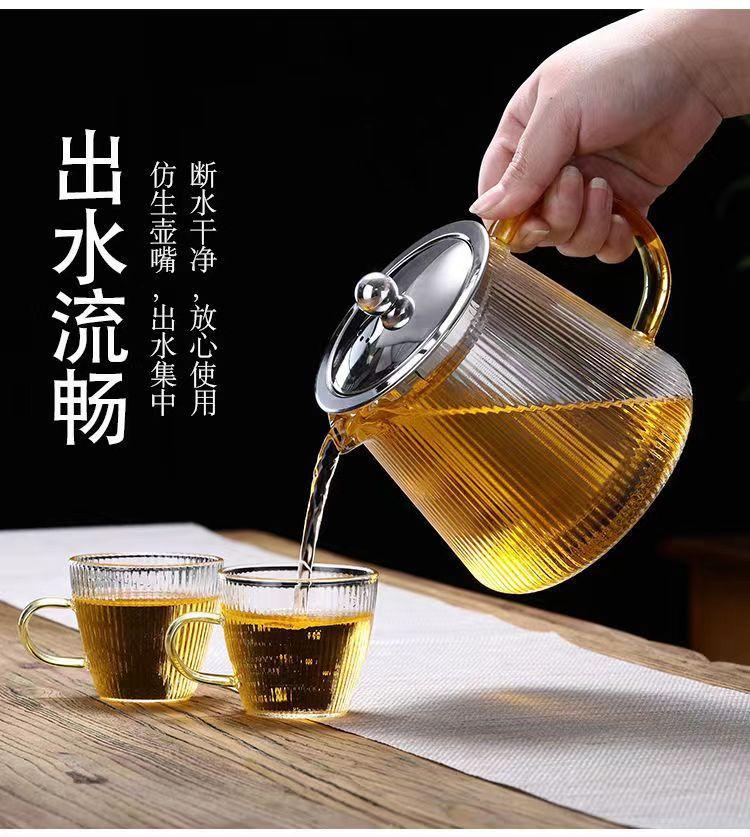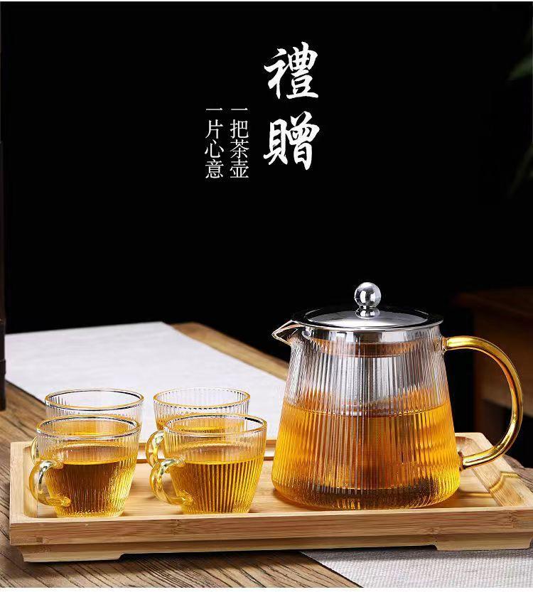Tetera de vidrio de borosilicato grueso de alta resistencia a altas temperaturas, tetera de acero con fugas, tetera rayada con filtro, juego de té para el hogar