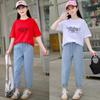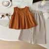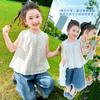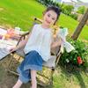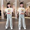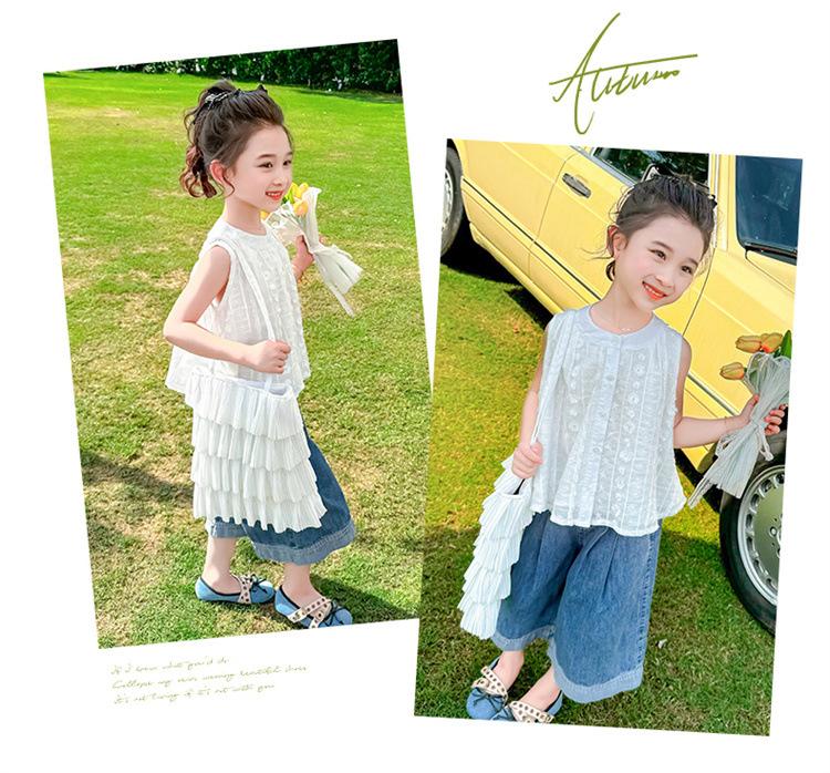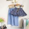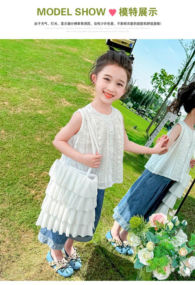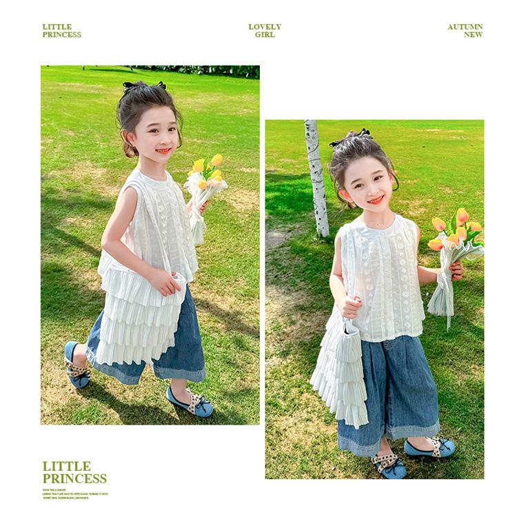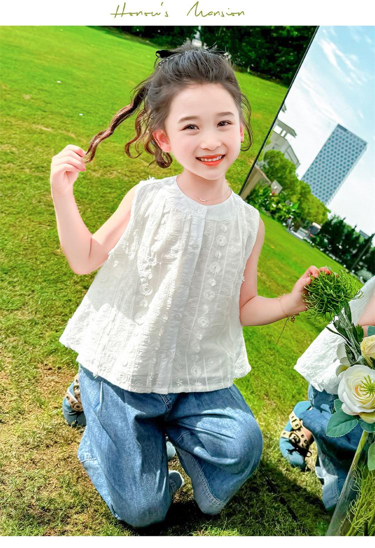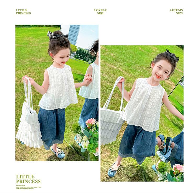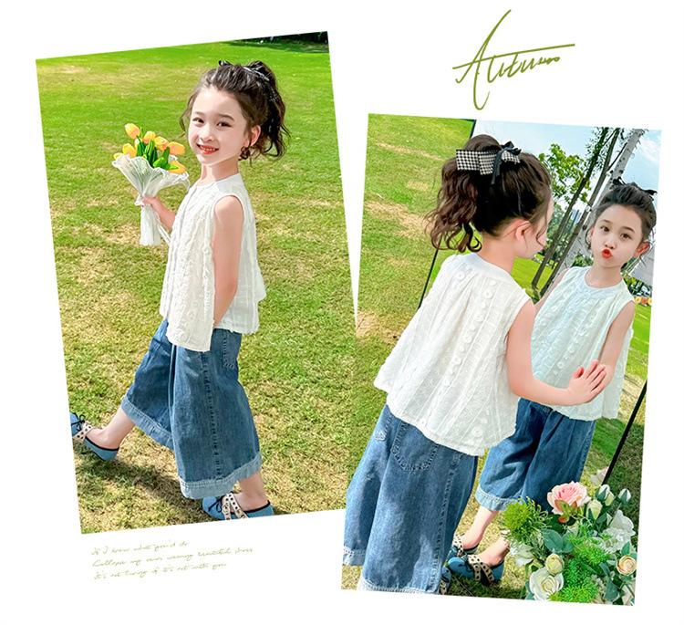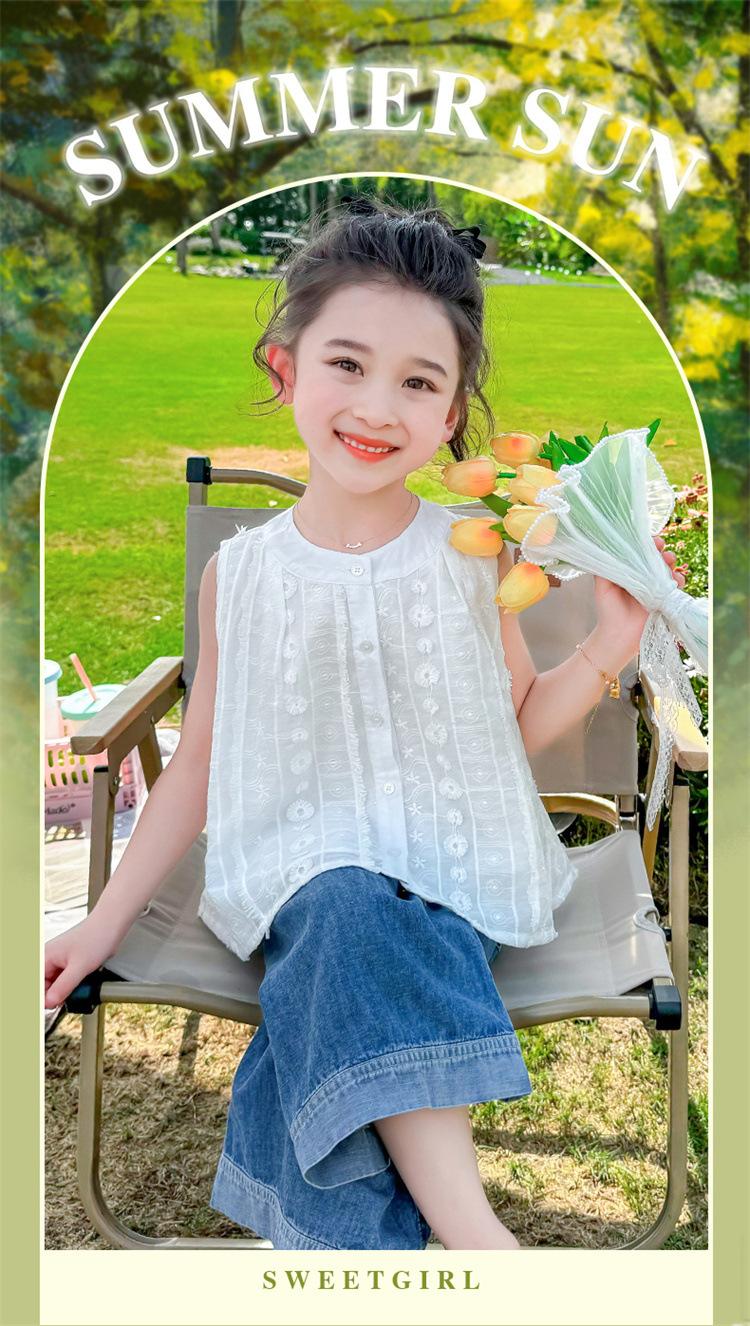 Traje de Mezclilla Jacquard sin Mangas de Pierna Ancha para Niñas 2025 Verano Nueva Moda Conjunto Elegante de Dos Piezas para Niña