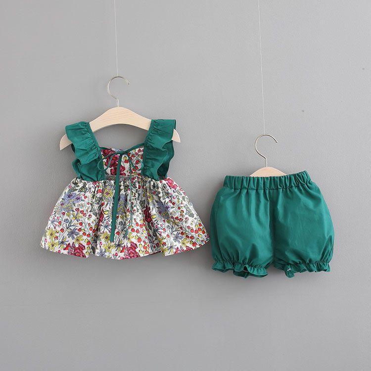 Ropa para Niños Traje de Moda para Bebé Niña Verano Nuevo Estilo Falda Corta para Niña Shorts con Tirantes para Bebé Espalda