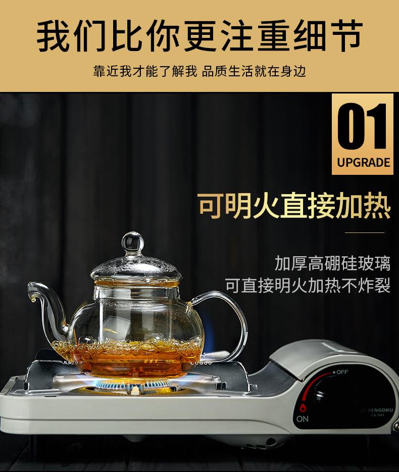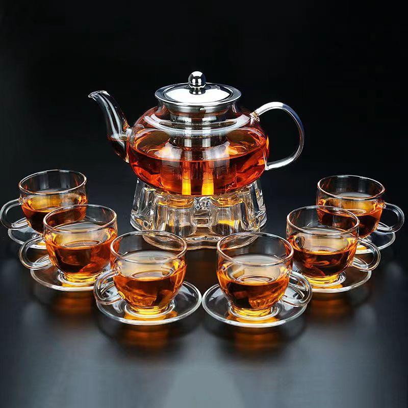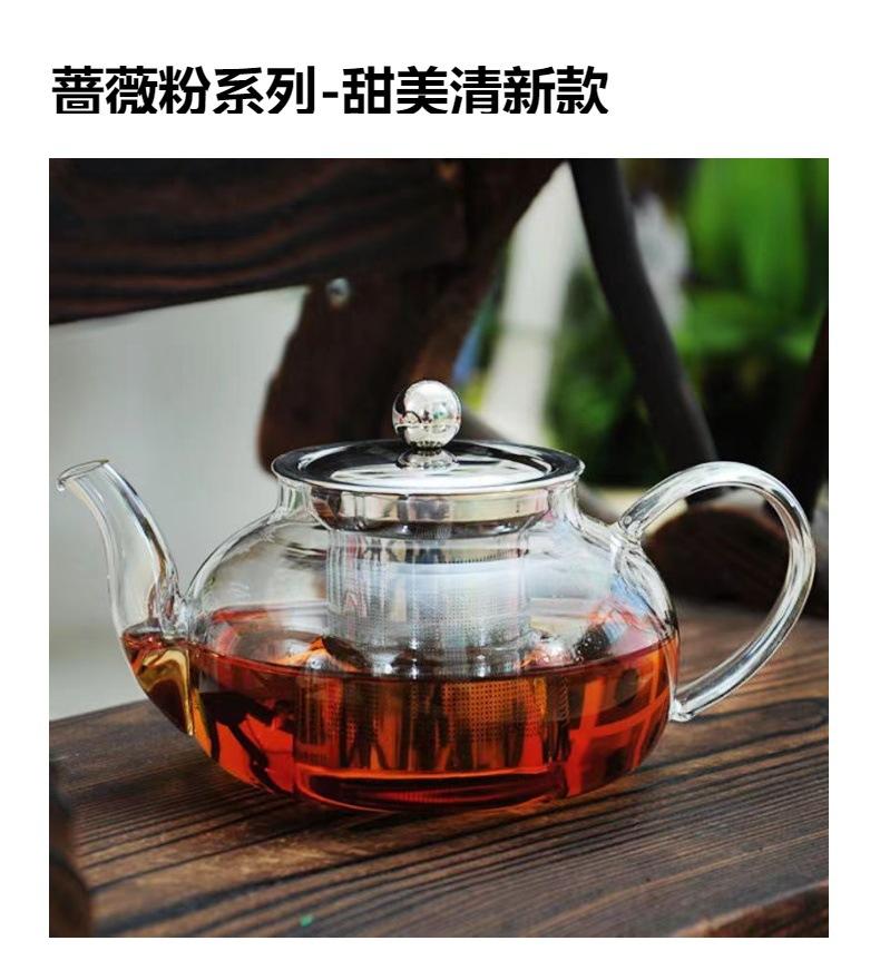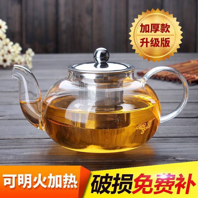 Tetera gruesa de vidrio resistente al calor para el hogar, tetera roja con filtro de acero inoxidable, juego de té kung fu de flores y hierbas