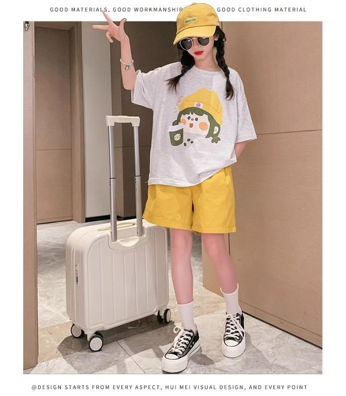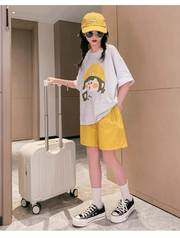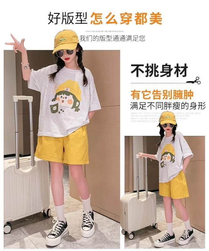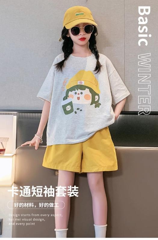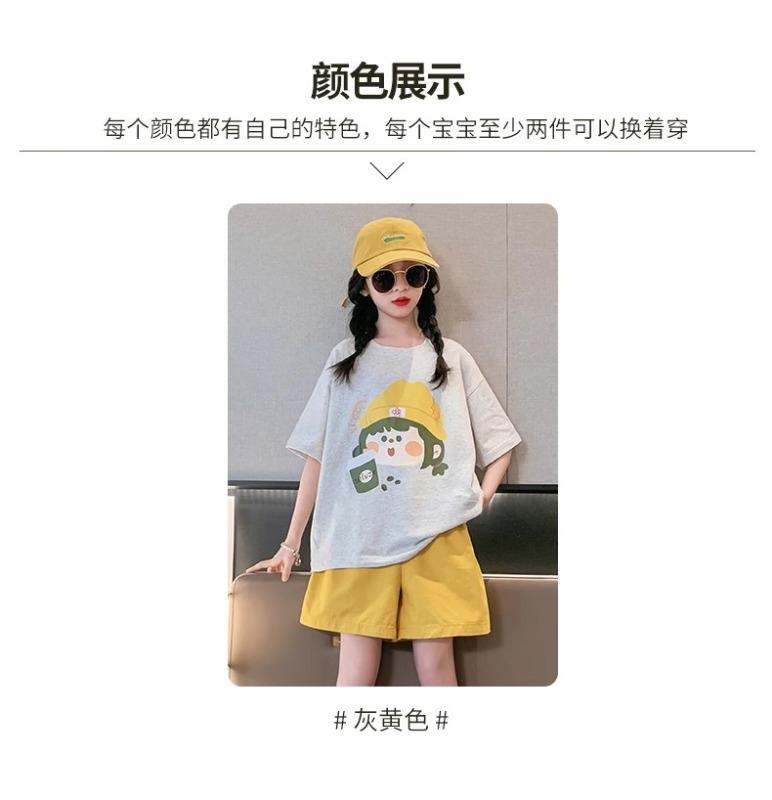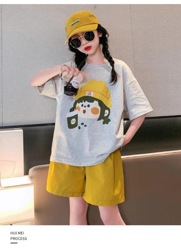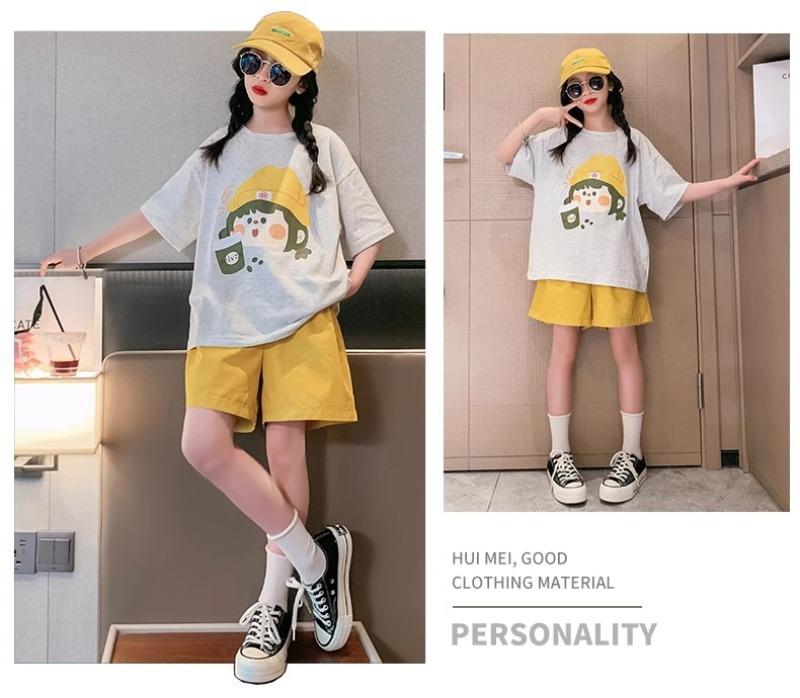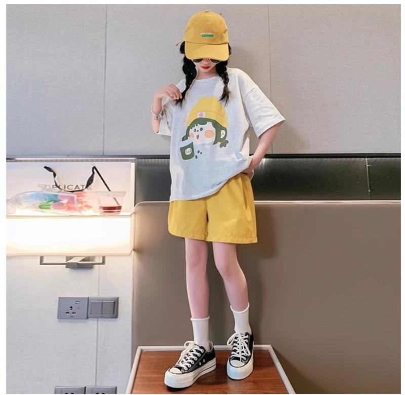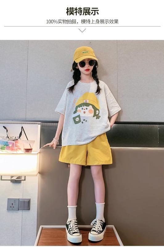 Traje de verano para niñas 2025 Nuevo Estilo Moda Manga Corta Ropa Infantil Verano Conjunto de Dos Piezas para Niños Grandes
