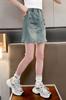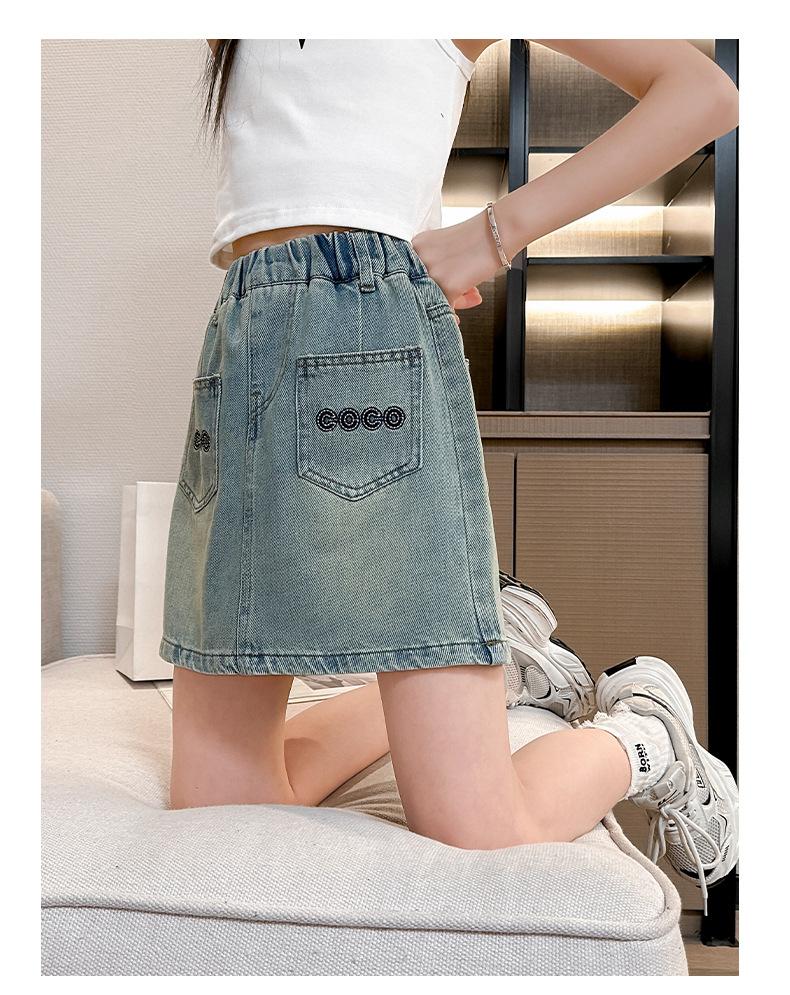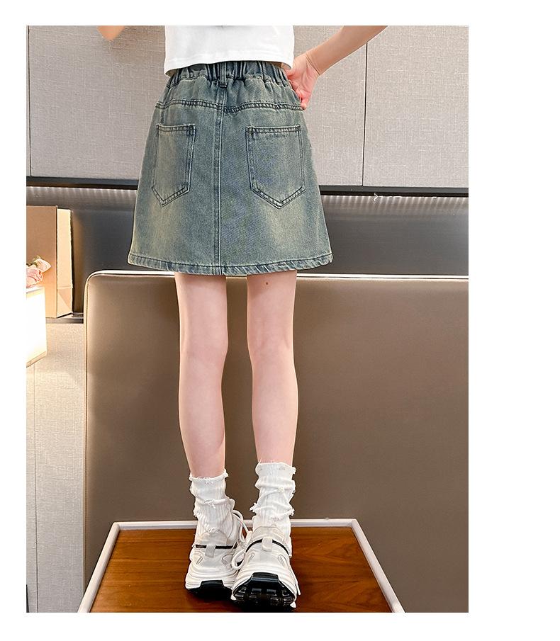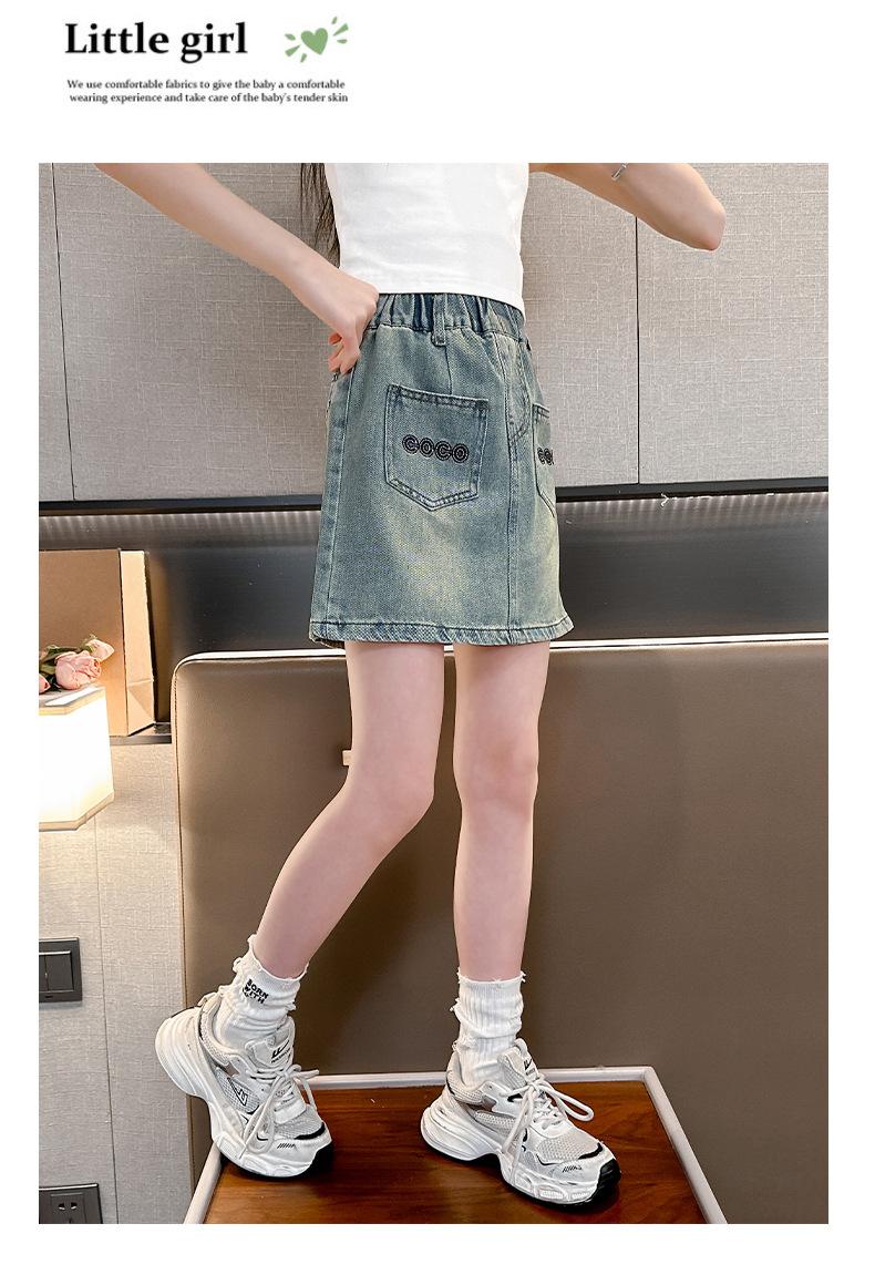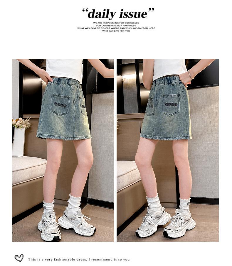 Falda de Verano para Niñas 2024 Nueva Moda Niñas Estilo Coreano Elegante Amor Bordado Falda de Mezclilla