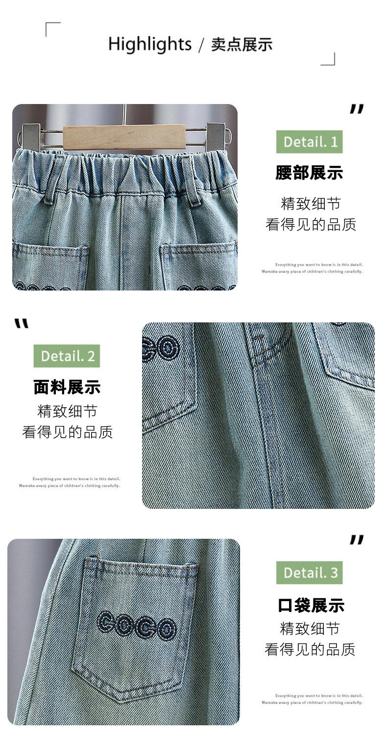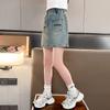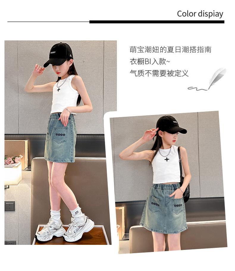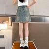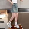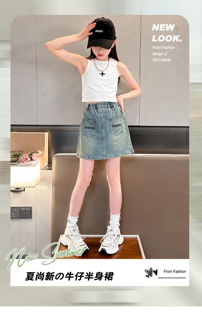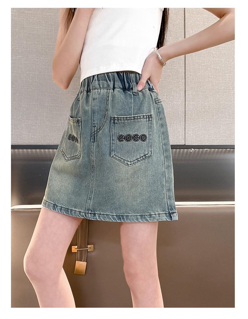 Falda de Verano para Niñas 2024 Nueva Moda Niñas Estilo Coreano Elegante Amor Bordado Falda de Mezclilla