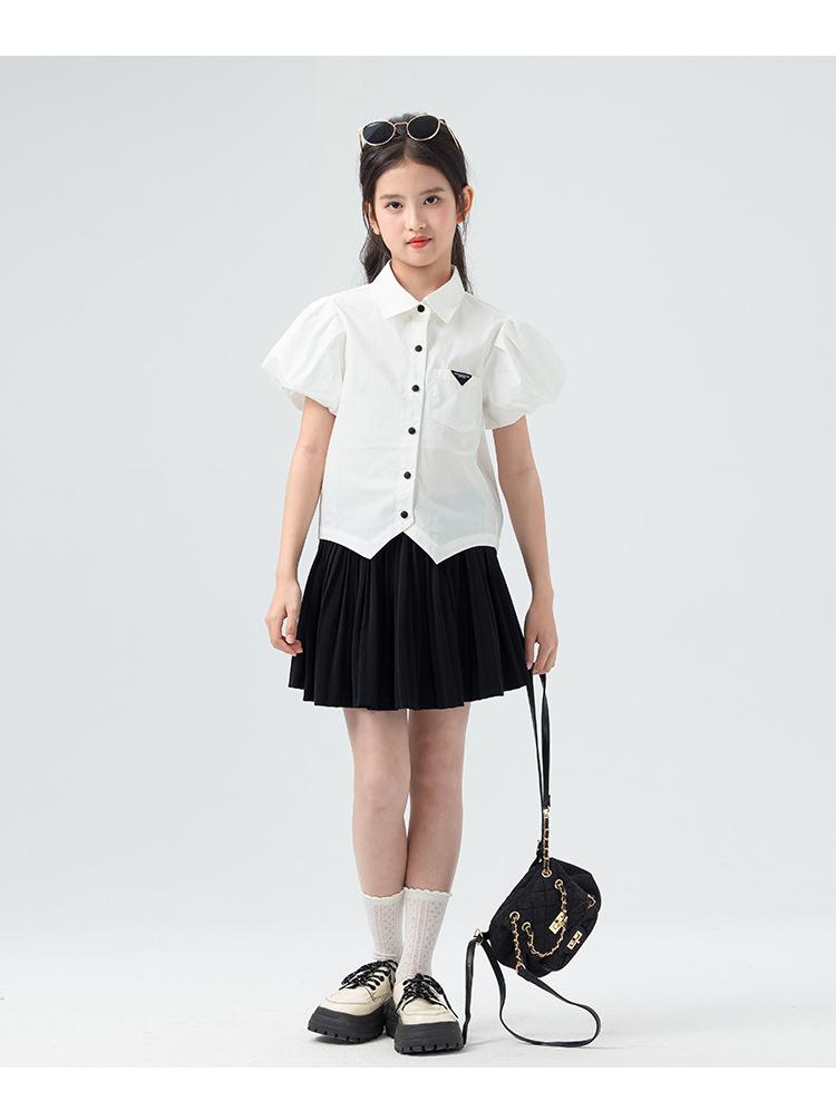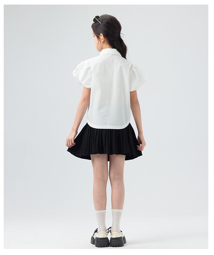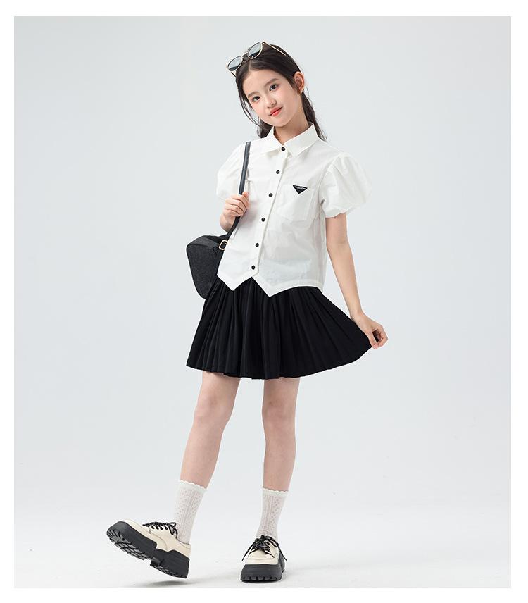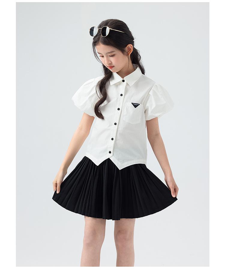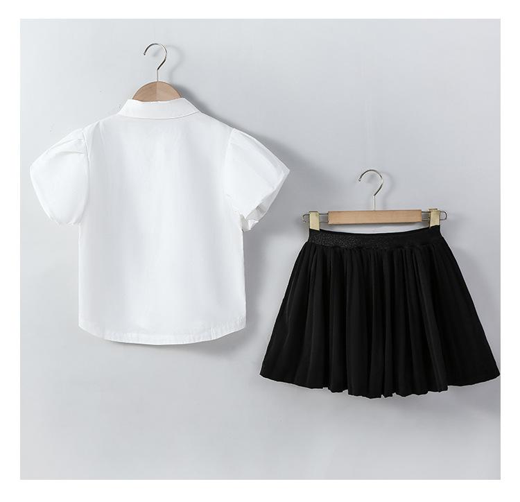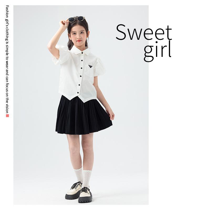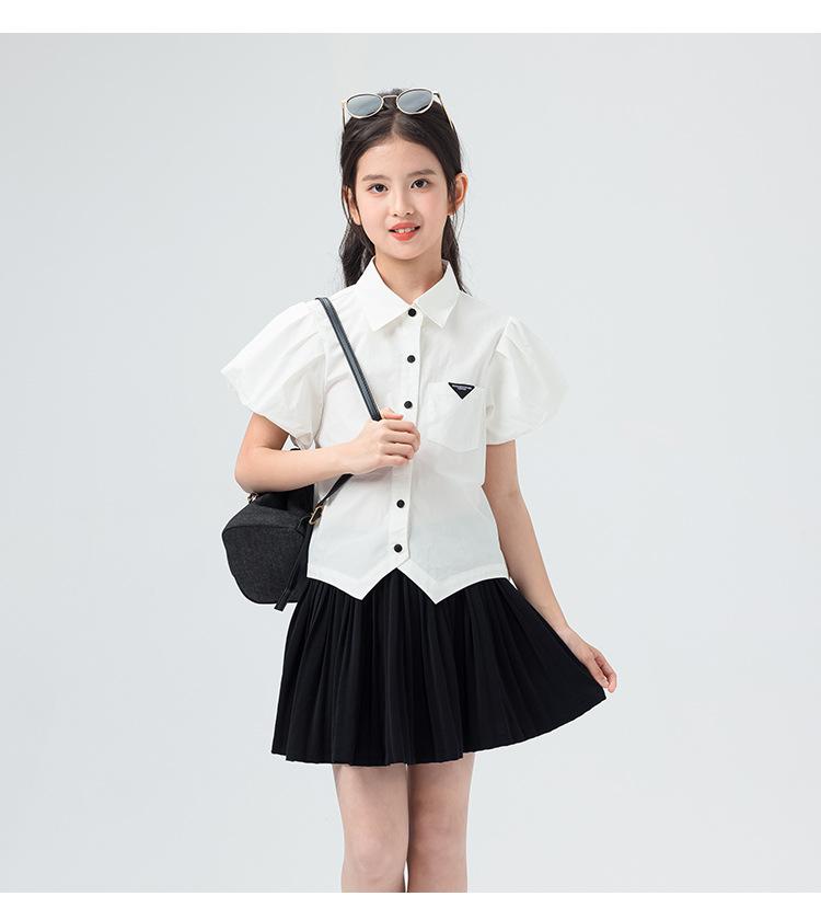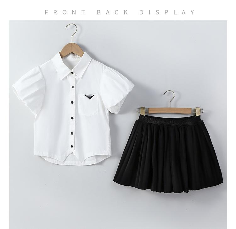 Traje Casual para Niñas Verano 2025 Niños Grandes Camisa Irregular Falda Dos Piezas Estilo Universitario Ropa para Niñas
