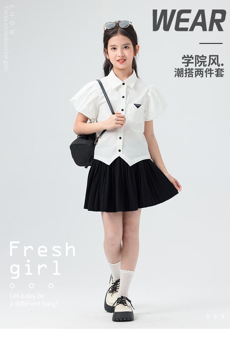 Compra Traje Casual para Niñas Verano 2025 Niños Grandes Camisa Irregular Falda Dos Piezas Estilo Universitario Ropa para Niñas al por mayor en Joom.pro