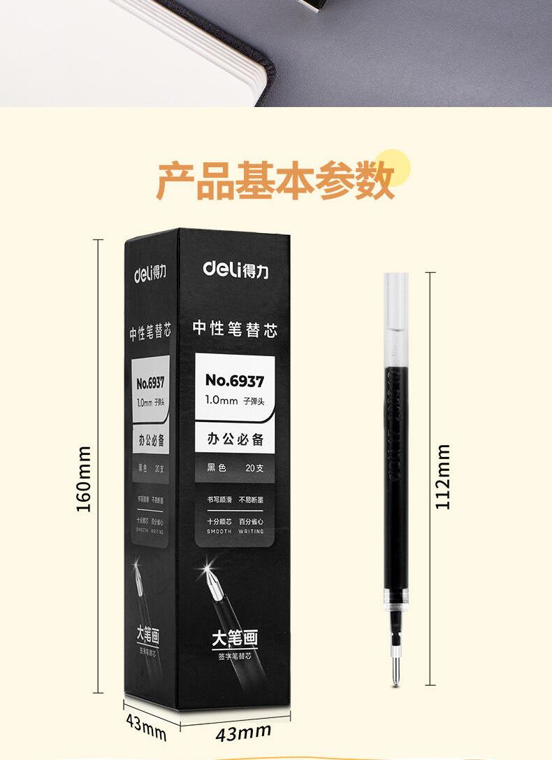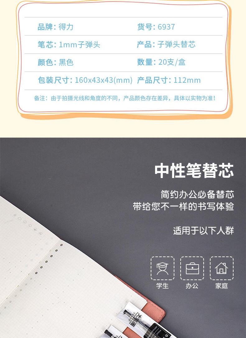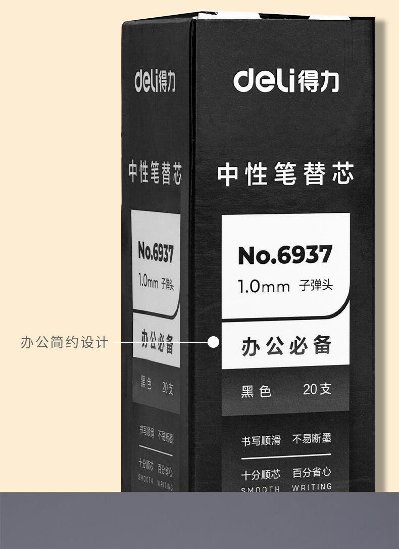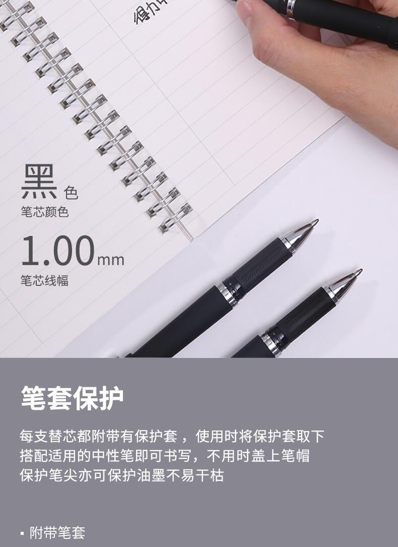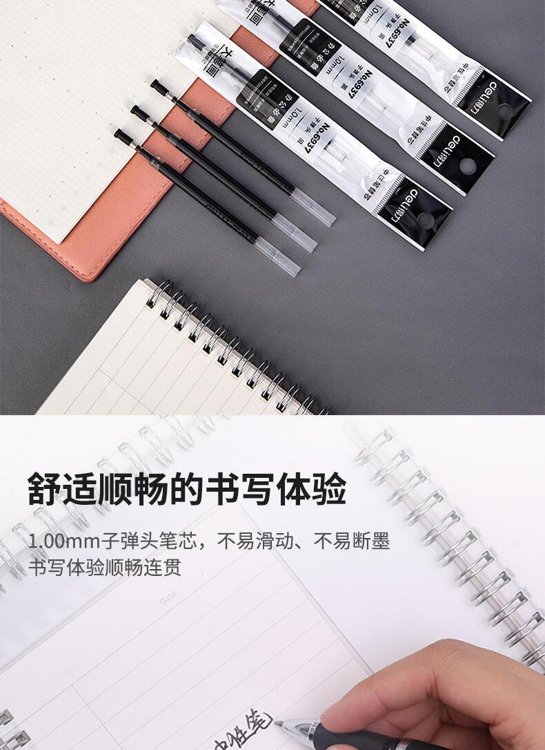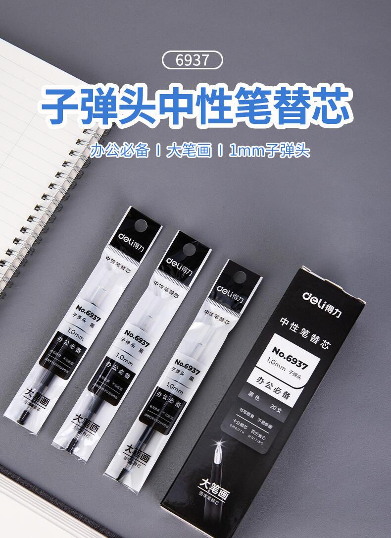 Deli 6937 Recarga de Pluma de Gel Retráctil para Trazo Grueso S107 Caligrafía Negro Recarga de Pluma para Firma Punta Bala 1.0mm