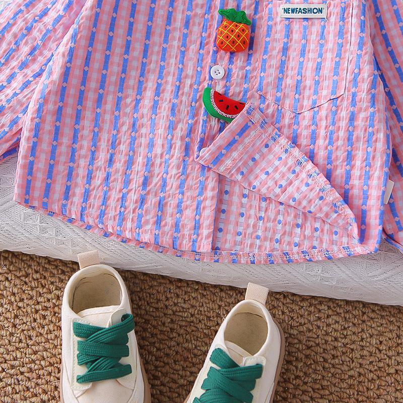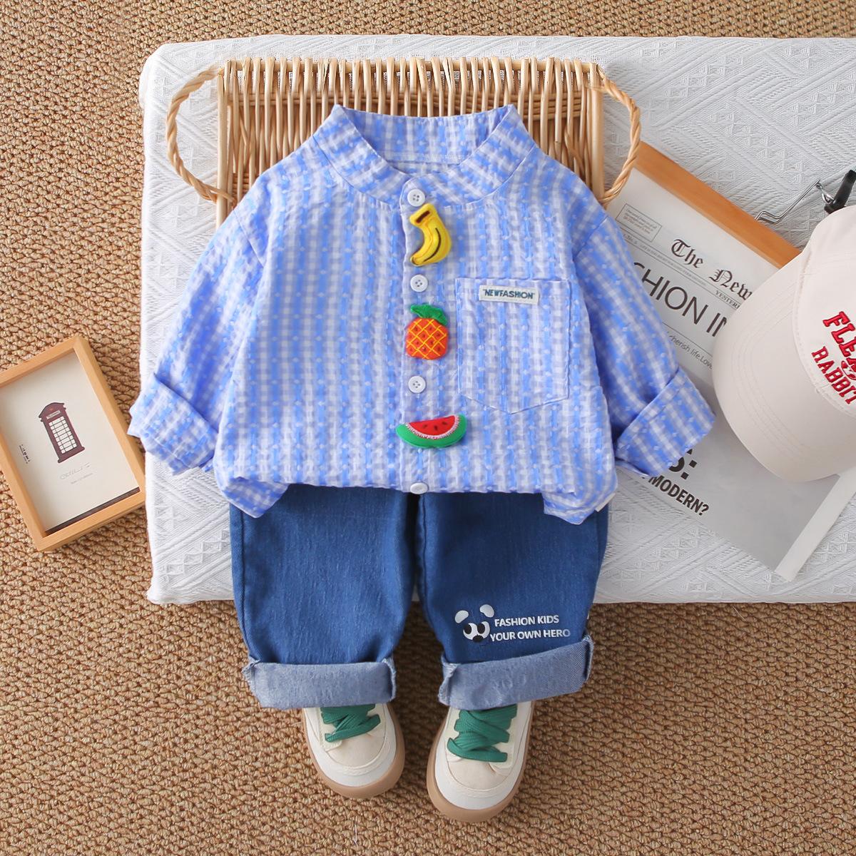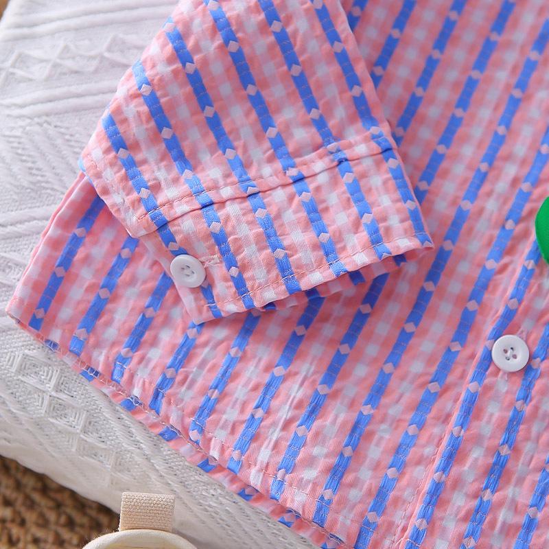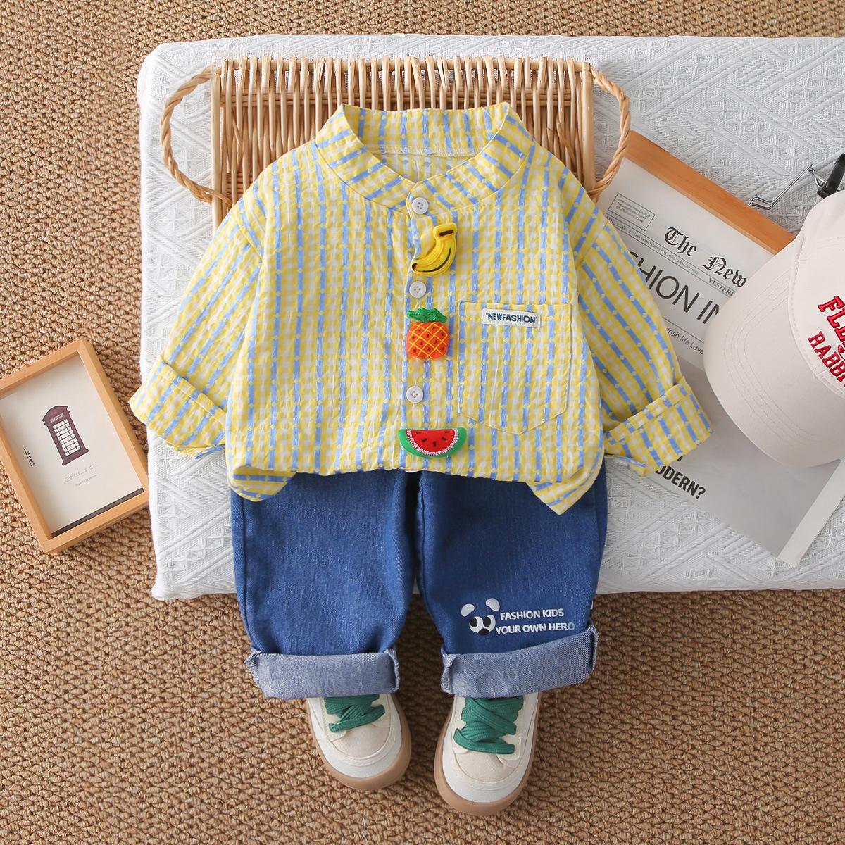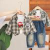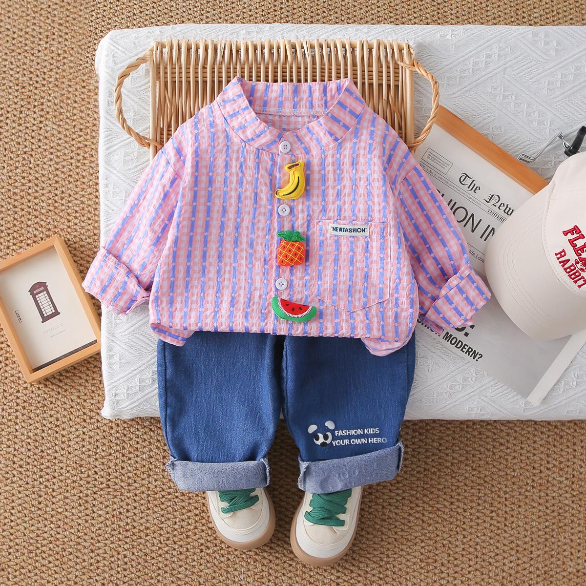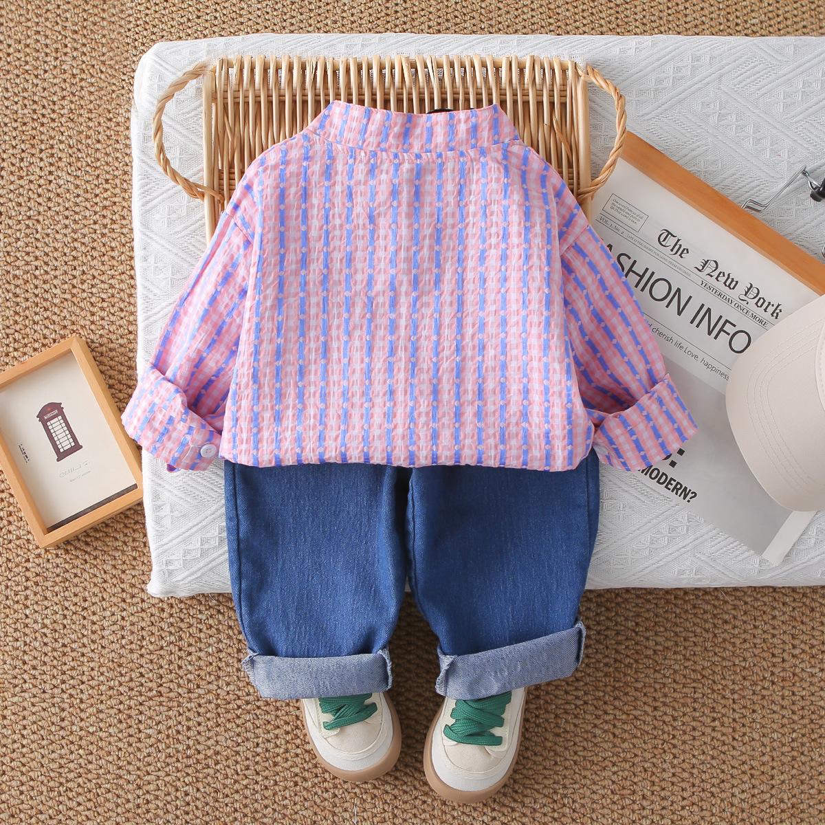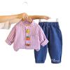 Conjunto Elegante de Otoño para Niño 2025 Primavera y Otoño Nueva Camisa de Rayas para Niños de Moda Conjunto de Dos Piezas Ropa de Bebé